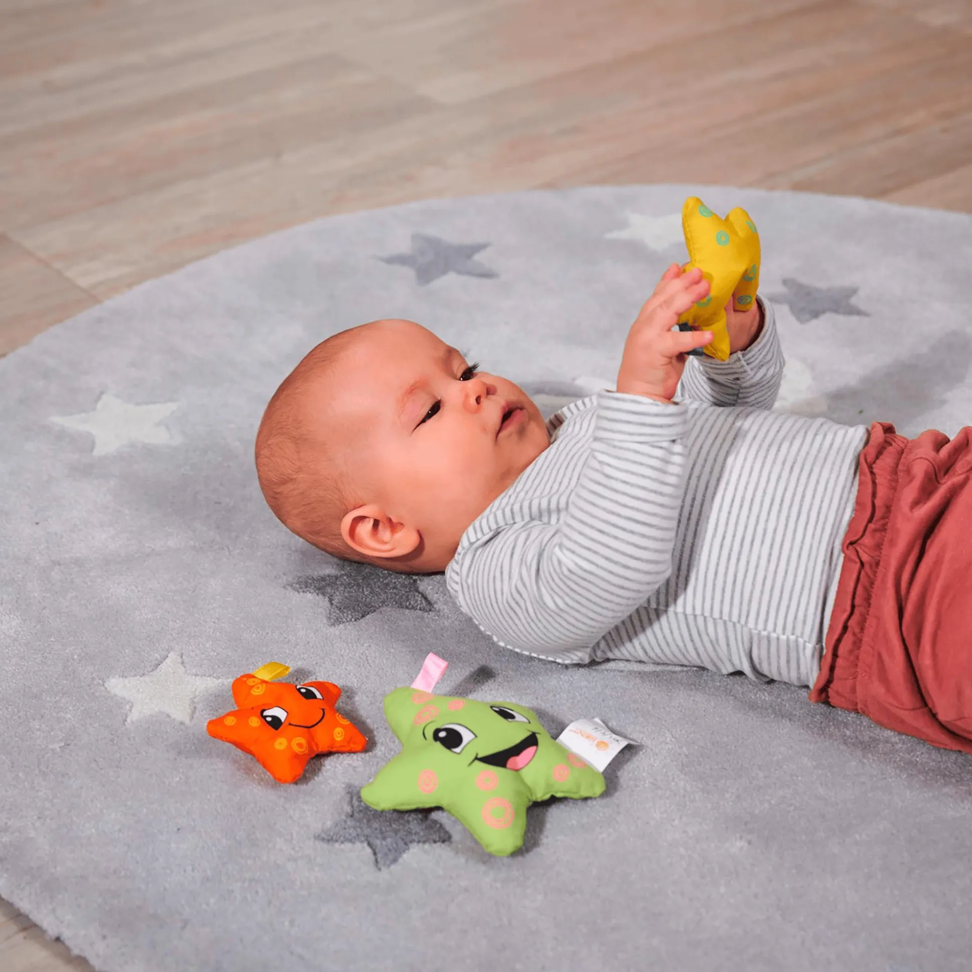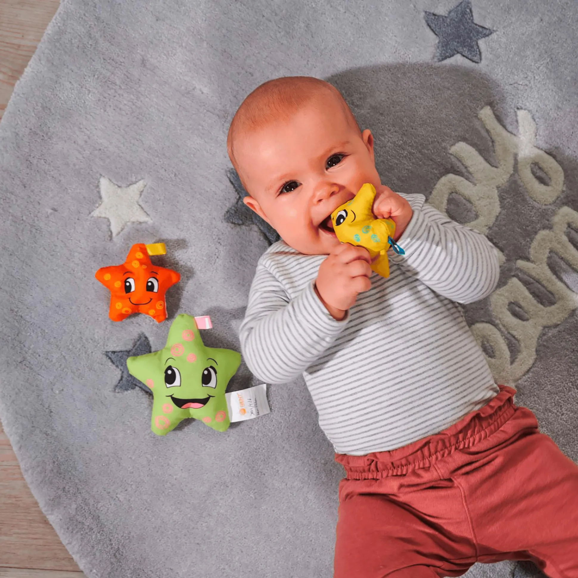 Mit ABC spielerisch die Welt entdecken! ABC weckt mit altersgerechten Produkten die Neugierde von Babys und Kleinkindern von 0-36 Monaten und unterstützt dabei die Entwicklung in den ersten Lebensjahren. Spielerisch werden erste Lernziele erreicht, Formen und Strukturen entdeckt sowie Koordinationsmuster geschult. Mit den weichen Seesternen haben die Kleinen nicht nur Spaß in der Badewanne. Die unterschiedlich großen und bunten Seesterne in den Farben Gelb, Grün und Orange sind mit Styropor gefüllt und können mit in die Badewanne zum Spielen genommen werden, wo sie sich mit Wasser vollsaugen, sie sind aber auch ein toller Begleiter für unterwegs. Die weichen ABC Seesterne sind für Kinder ab ca. 6 Monaten geeignet.