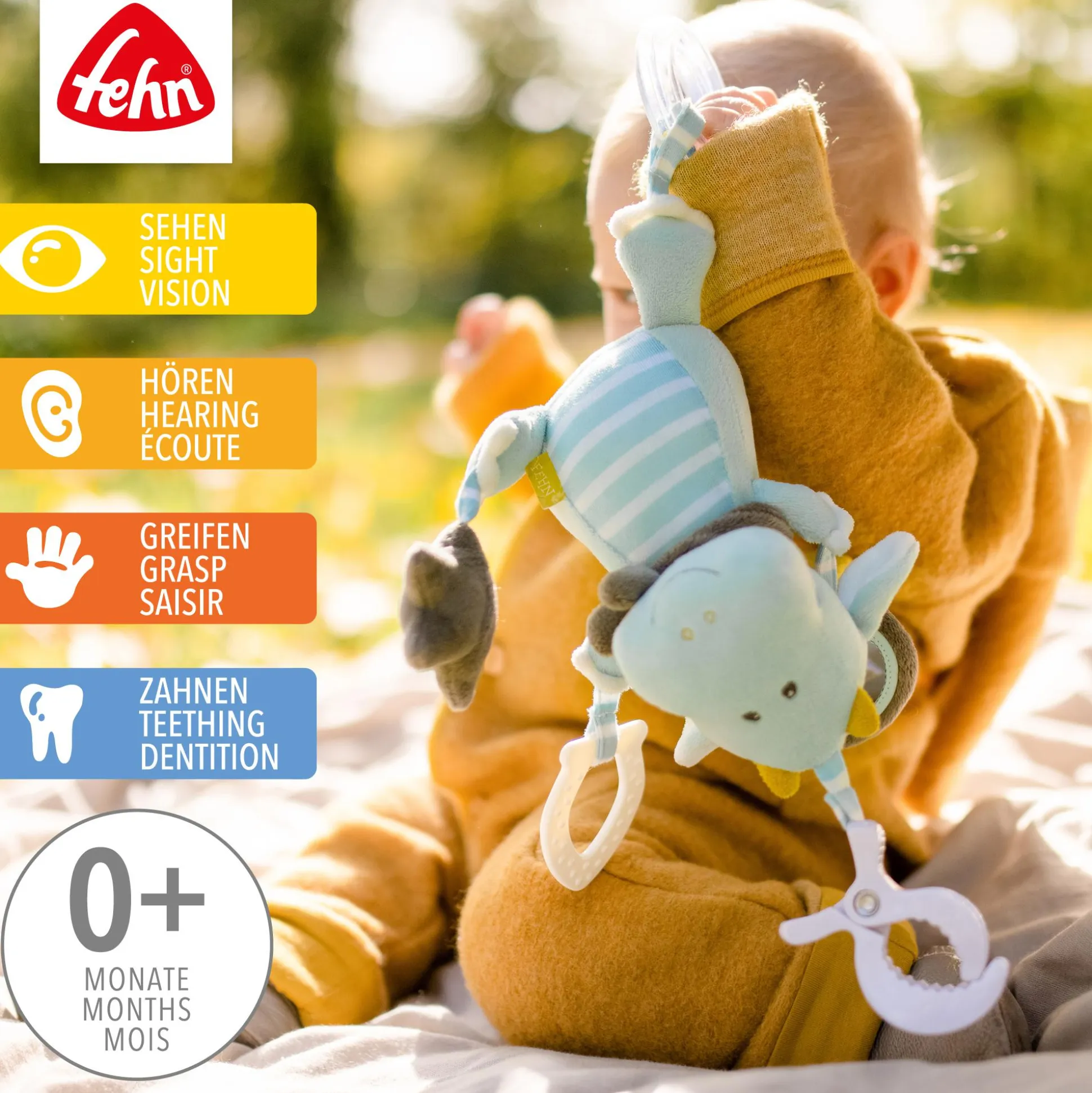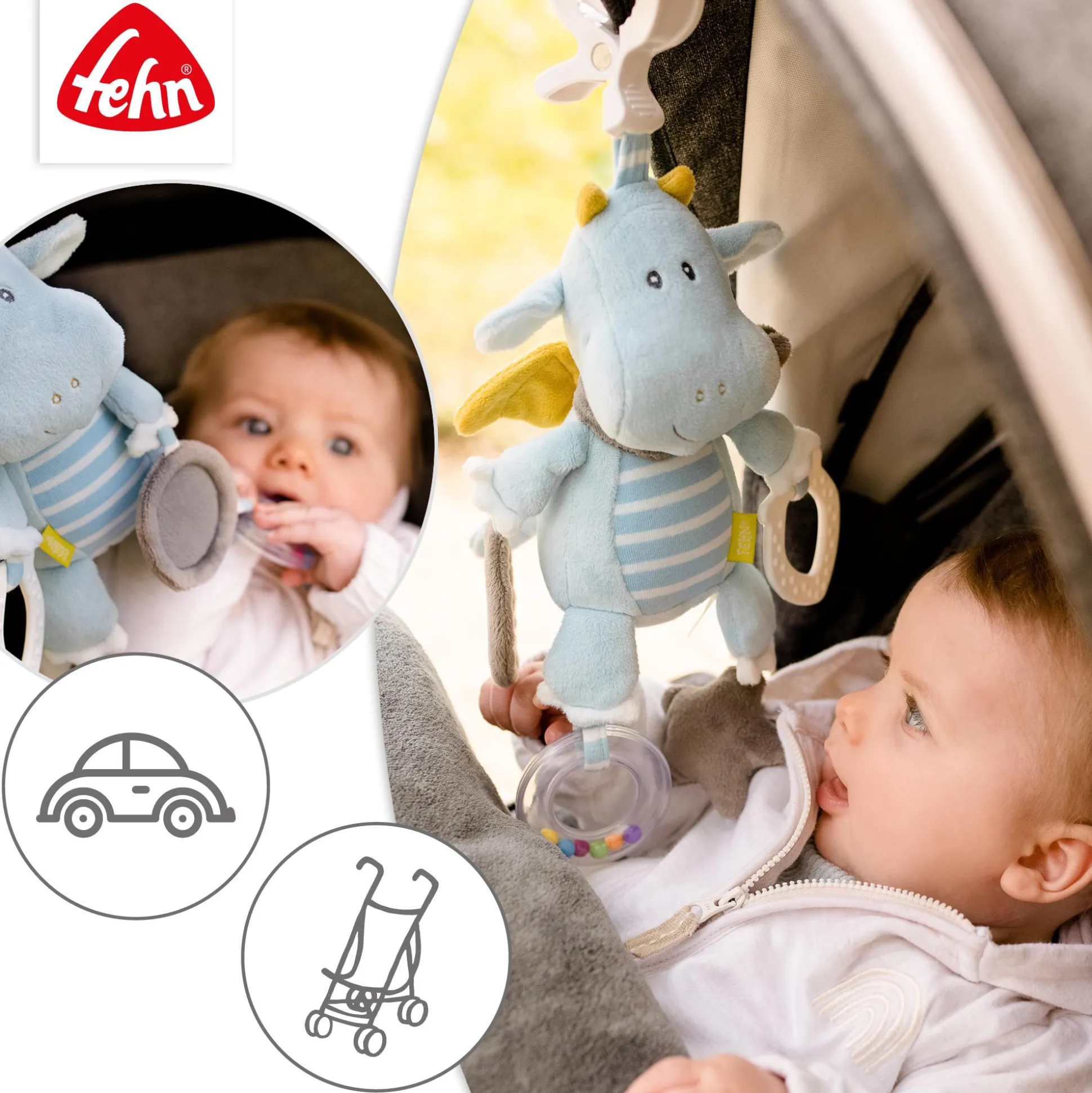 Mit der praktischen Klemme ist der Activity-Drache einfach und sicher an Babyschale, Kinderwagen, und Bettchen befestigt und wird so zum treuen Begleiter und absoluten Lieblingsspielzeug des Babys.