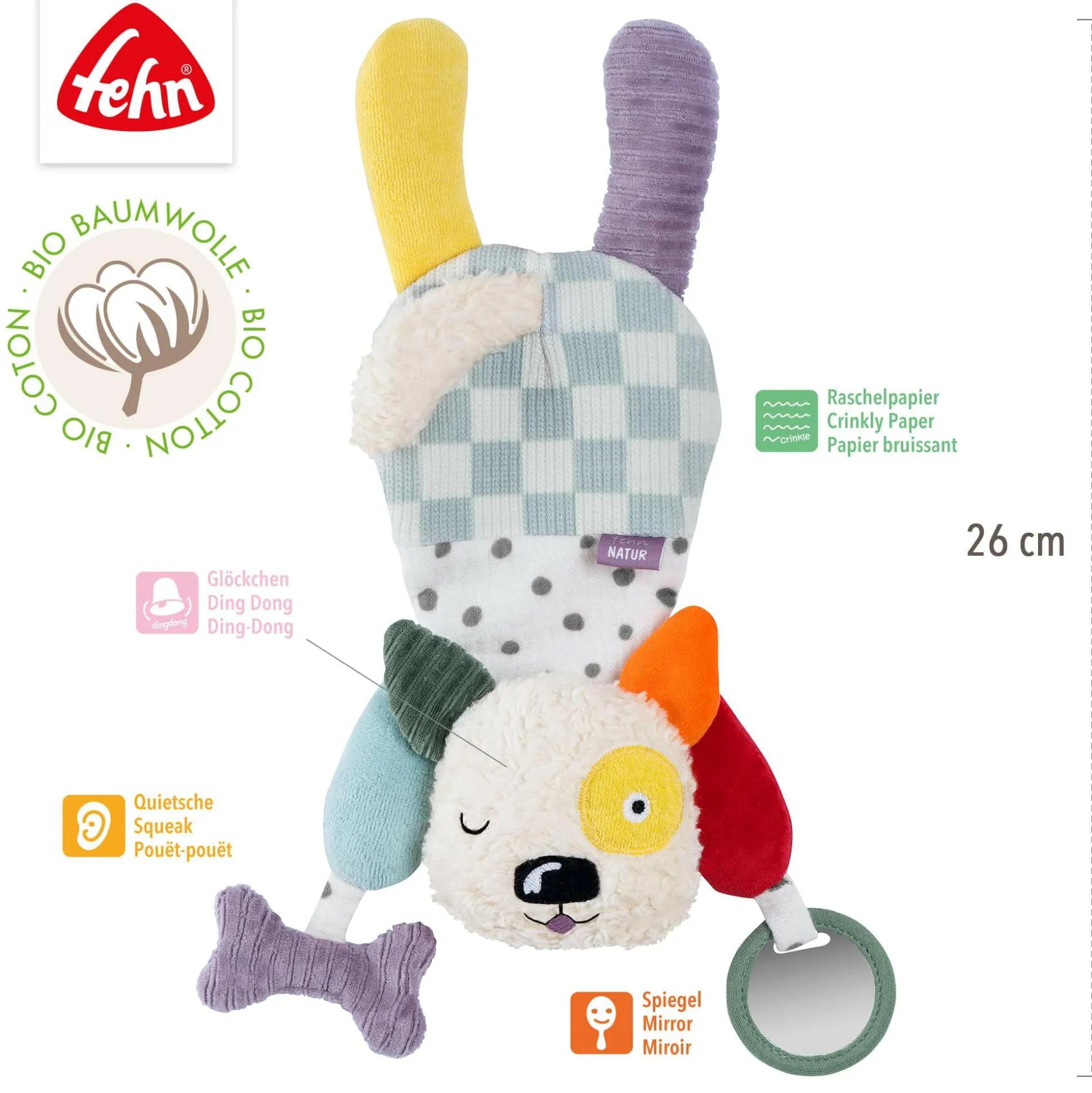 - mit Glöckchen, Spiegel, Quietsche und Raschelpapier