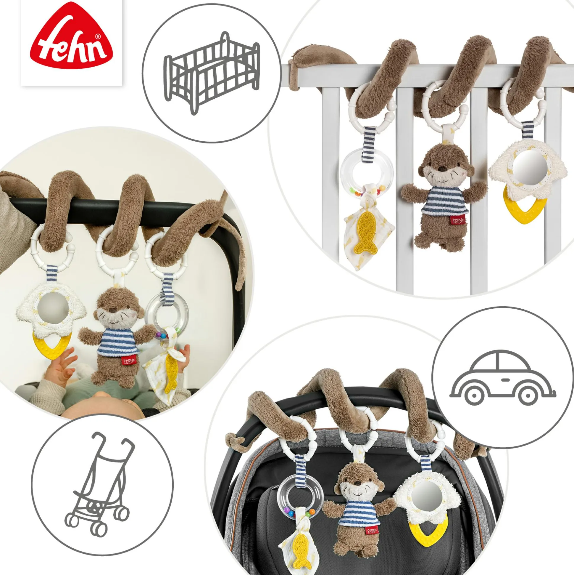 Die Activity-Spirale Otter Theo von fehn ist ein vielseitiges Babyspielzeug, das die Sinne fördert. Mit Rasselring, Spiegel, Tierstimme und Softbeiß-Element bietet sie zahlreiche Spielmöglichkeiten und trainiert die Hand- und Augen-Koordination sowie den Hör- und Tastsinn. Dabei kann die Spirale leicht am Kinderwagen, am Bett oder an der Babyschale befestigt werden.