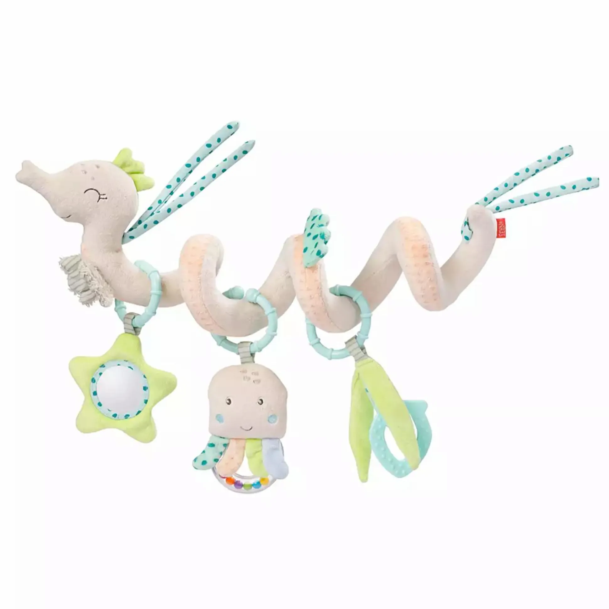 Mit zwei Bändern ist das niedliche Seepferd schnell und flexibel an der Babyschale, am Kinderwagen, am Bettchen oder am Laufgitter befestigt – damit wird jedes Abenteuer zum spannenden Erlebnis und keine Fahrt mehr langweilig!