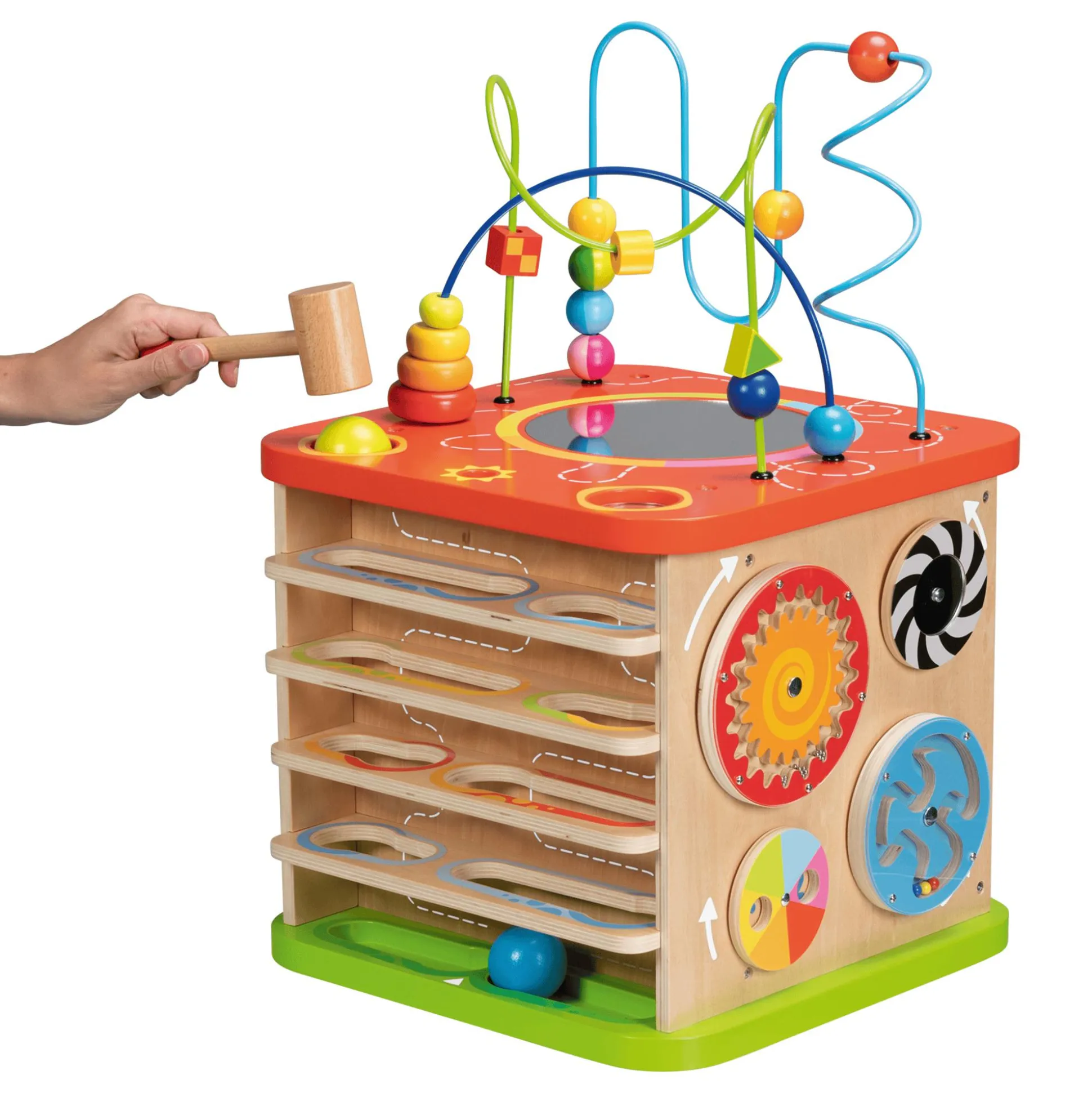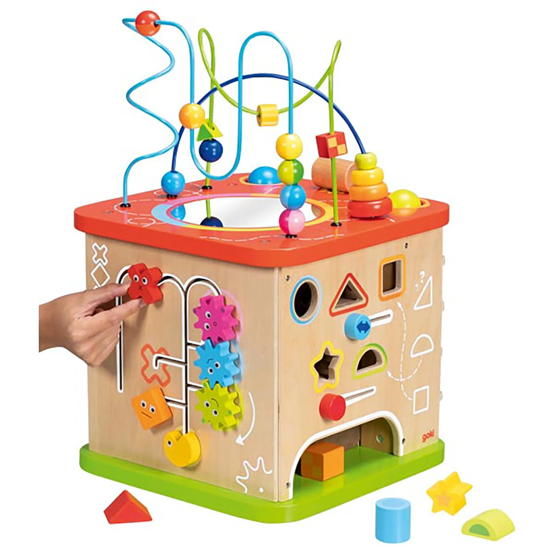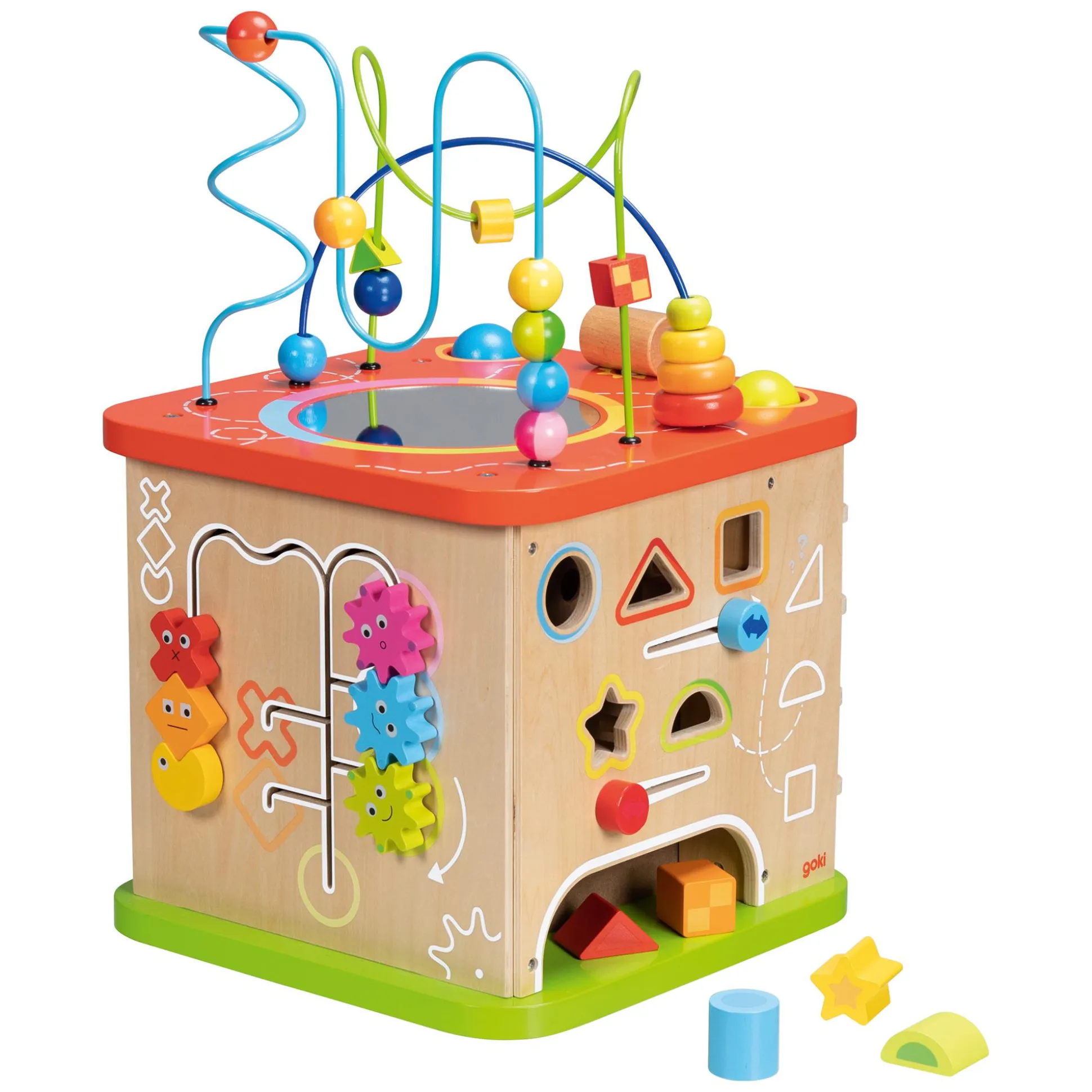 Mit dem Goki Activity- und Motorikwürfel erlebt dein kleiner Liebling eine wahre Schatztruhe voller spannender Entdeckungen. Dieser beeindruckende XXL-Würfel hält stets neue Überraschungen bereit, die die Neugier und Feinmotorik deines Kindes fördern. Auf jeder seiner Seiten verbergen sich faszinierende Aktivitäten – von kniffligen Formensortierern über kunstvolle Motorikschleifen bis hin zu zauberhaften Regenmachern und farbenfrohen Zahnrädern. Ein buntes Potpourri an Herausforderungen, um die geistigen Fähigkeiten deines Schatzes spielerisch zu trainieren. Dieser hochwertige Würfel aus robustem Holz sorgt für lang anhaltenden Spielspaß und ist ein perfektes Geschenk für Kids ab etwa einem Jahr. Mit seinen Maßen von ca. 35 x 35 x 54 cm eröffnet er eine Welt voller Abenteuer und Spielspaß.