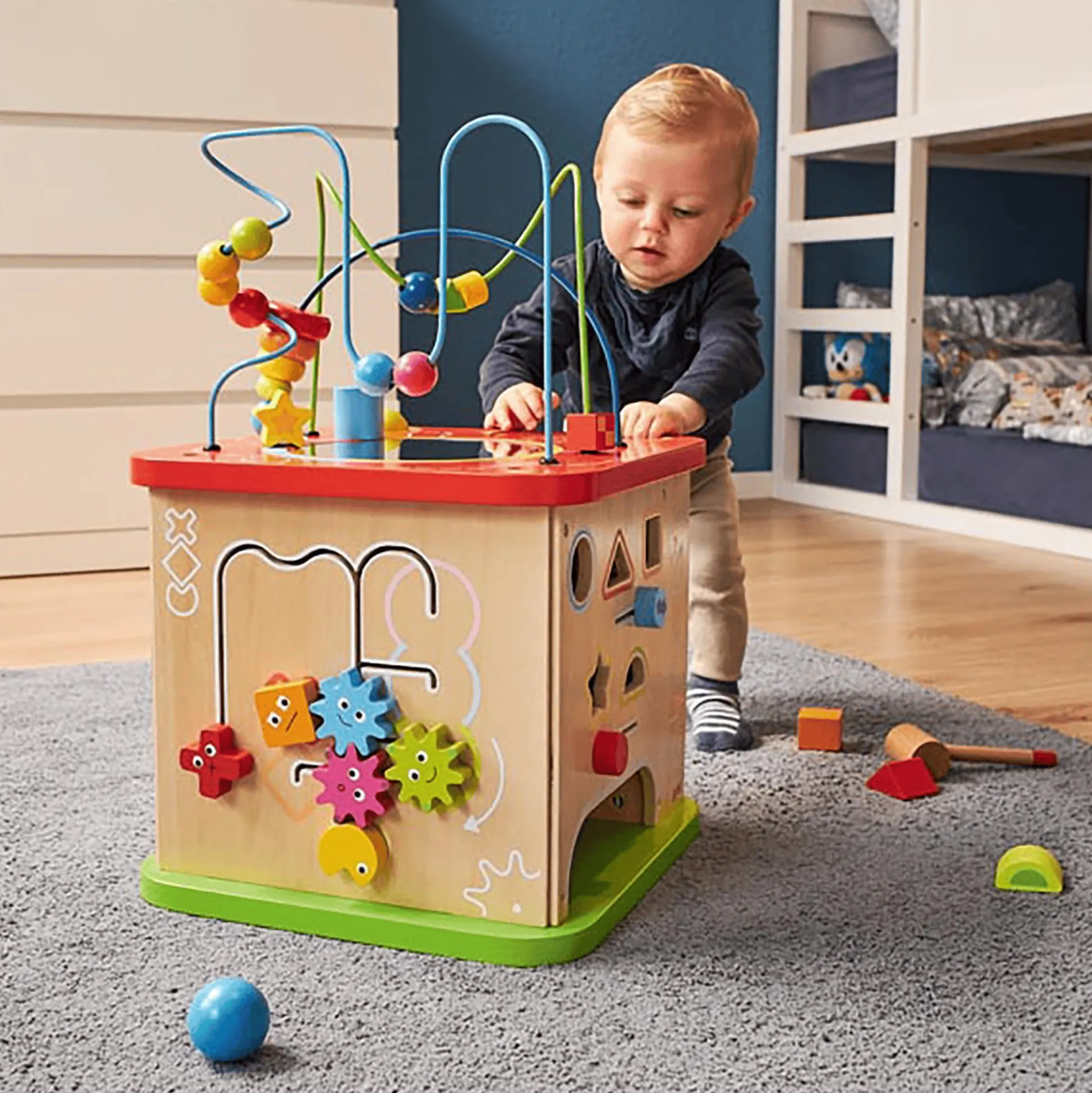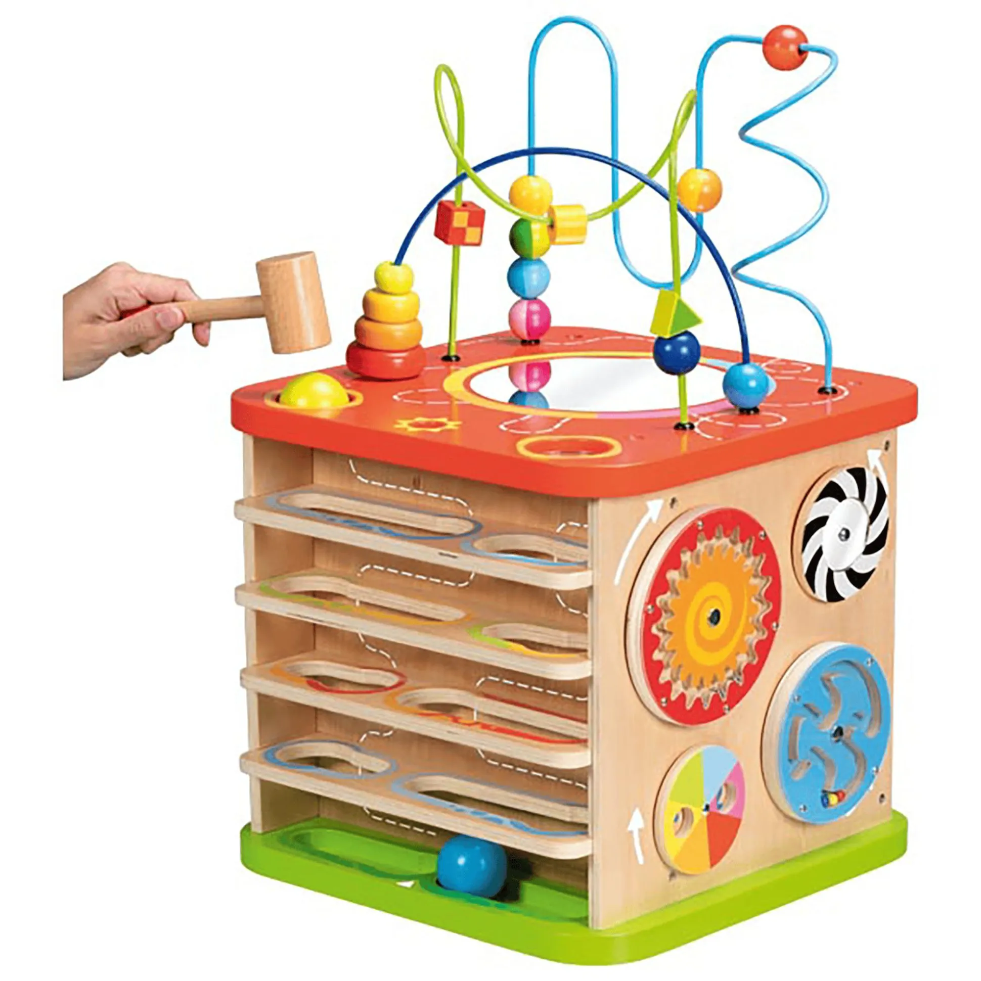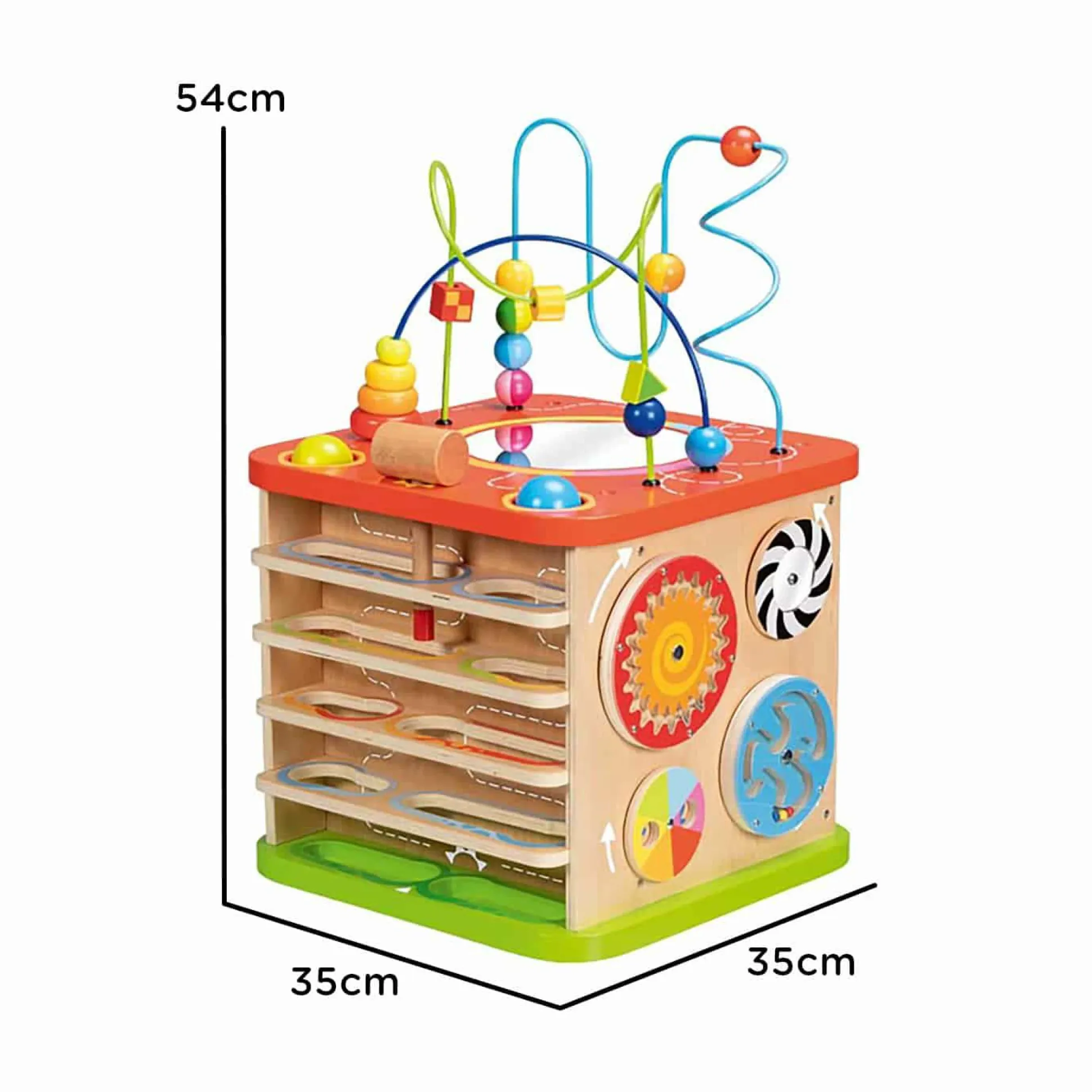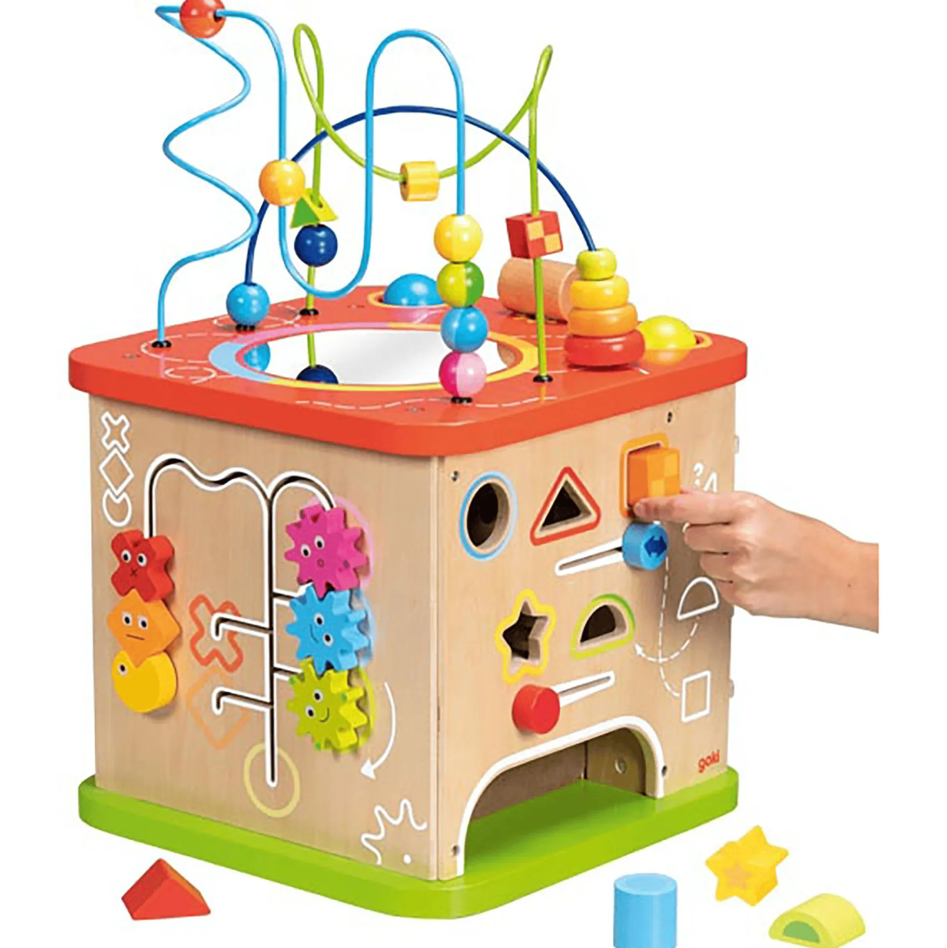 Mit dem Goki Activity- und Motorikwürfel erlebt dein kleiner Liebling eine wahre Schatztruhe voller spannender Entdeckungen. Dieser beeindruckende XXL-Würfel hält stets neue Überraschungen bereit, die die Neugier und Feinmotorik deines Kindes fördern. Auf jeder seiner Seiten verbergen sich faszinierende Aktivitäten – von kniffligen Formensortierern über kunstvolle Motorikschleifen bis hin zu zauberhaften Regenmachern und farbenfrohen Zahnrädern. Ein buntes Potpourri an Herausforderungen, um die geistigen Fähigkeiten deines Schatzes spielerisch zu trainieren. Dieser hochwertige Würfel aus robustem Holz sorgt für lang anhaltenden Spielspaß und ist ein perfektes Geschenk für Kids ab etwa einem Jahr. Mit seinen Maßen von ca. 35 x 35 x 54 cm eröffnet er eine Welt voller Abenteuer und Spielspaß.