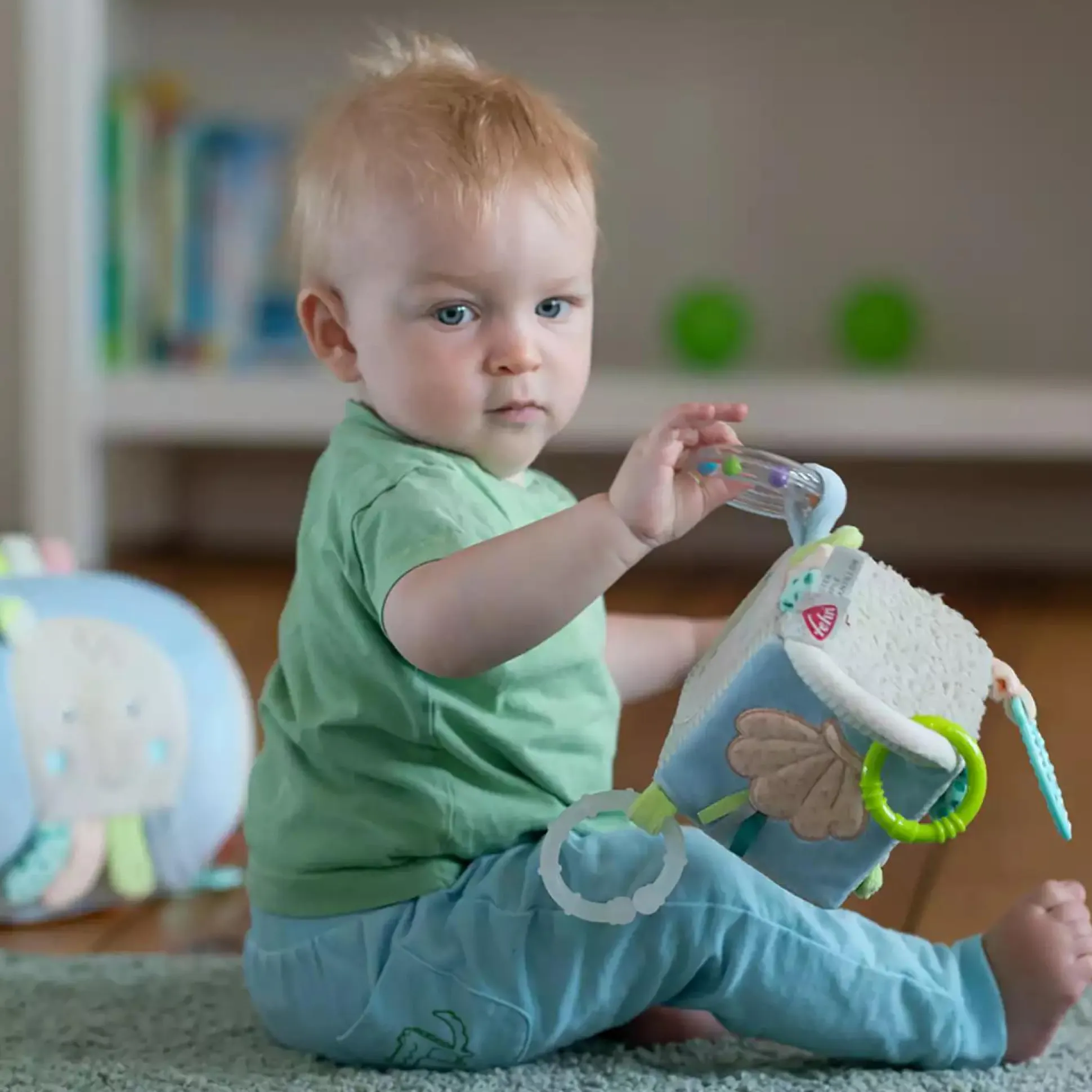 Ob zuhause im Bettchen oder unterwegs in der Babyschale oder im Kinderwagen – dank des praktischen C-Rings kann der vielseitige Stoff-Würfel mit Meerestieren ganz einfach überall befestigt werden, so wird der kleine Lernspiel-Würfel schnell zu Babys treuem Begleiter!