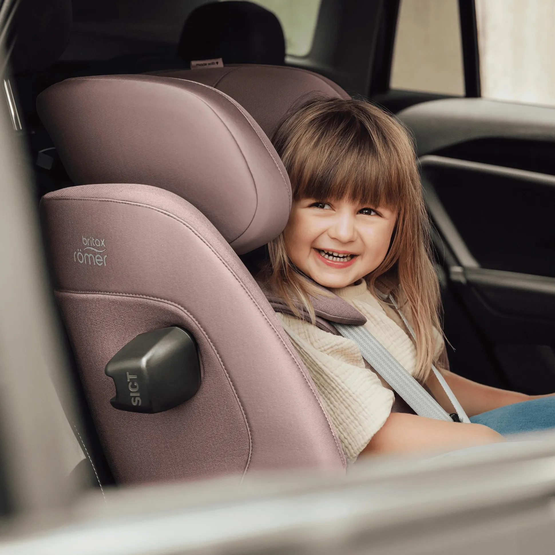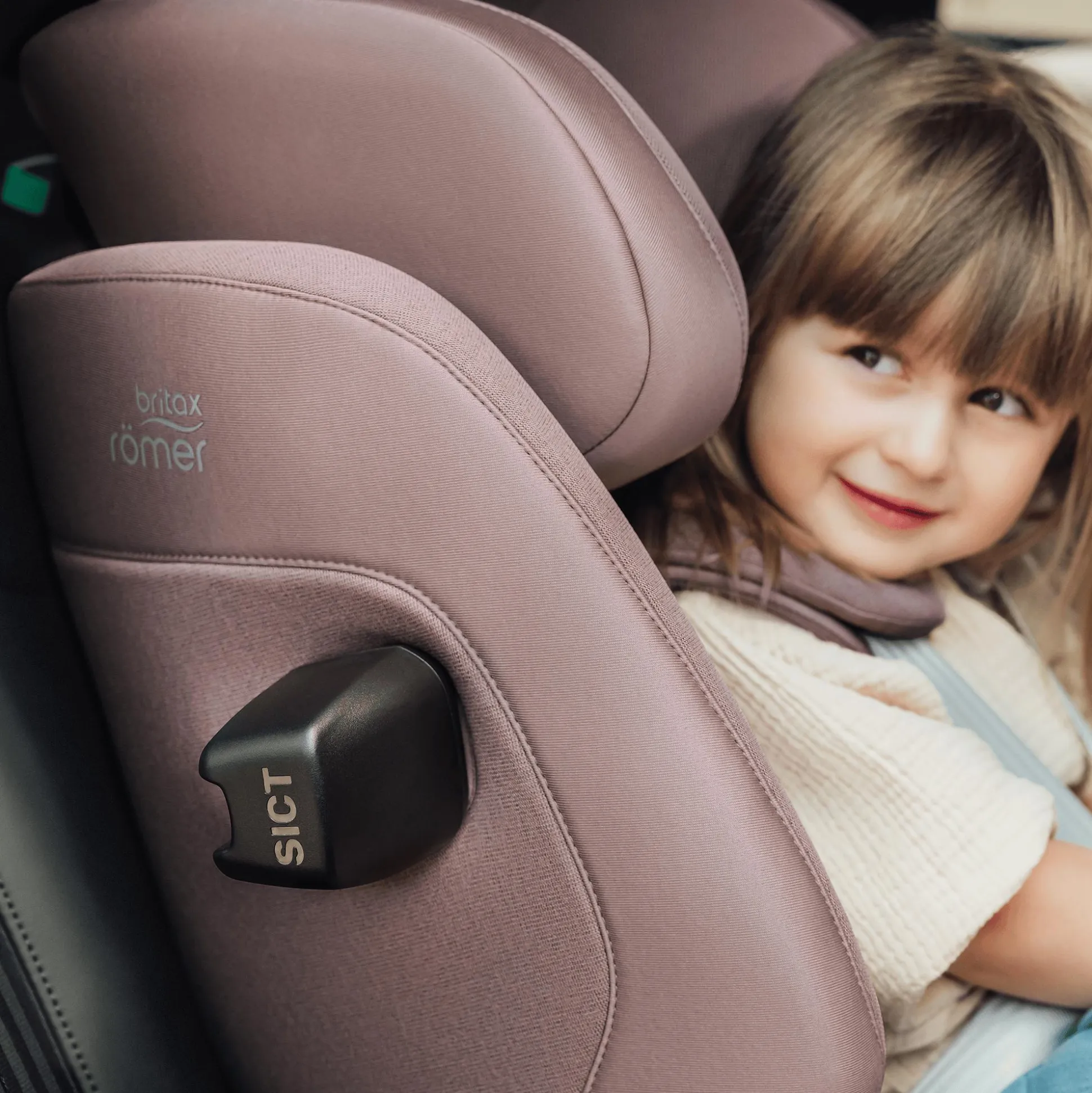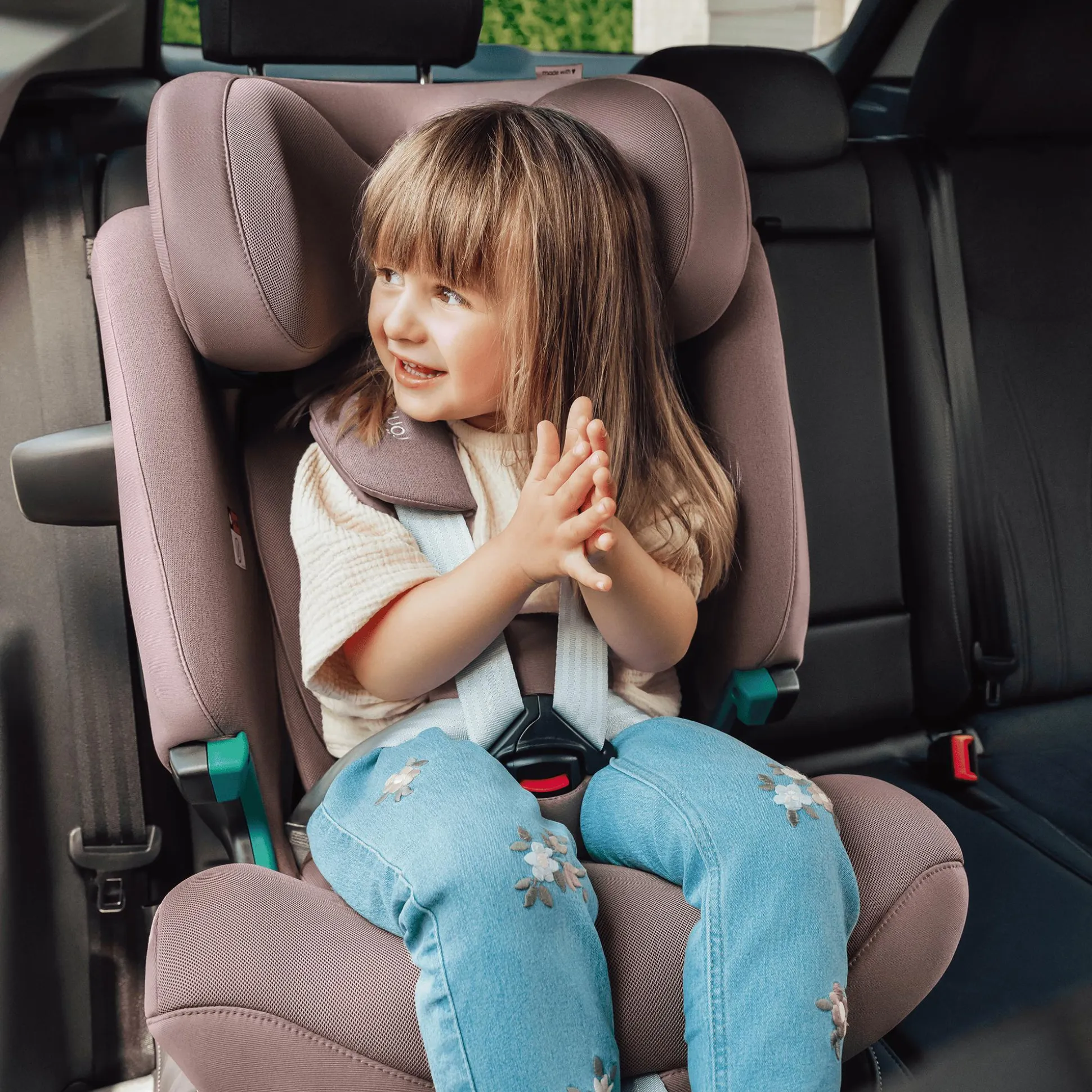 - FLIP&GROW-Funktion für den Umbau vom 5-Punkt-Gurtsystem auf 3-Punkt-Gurt des Fahrzeugs