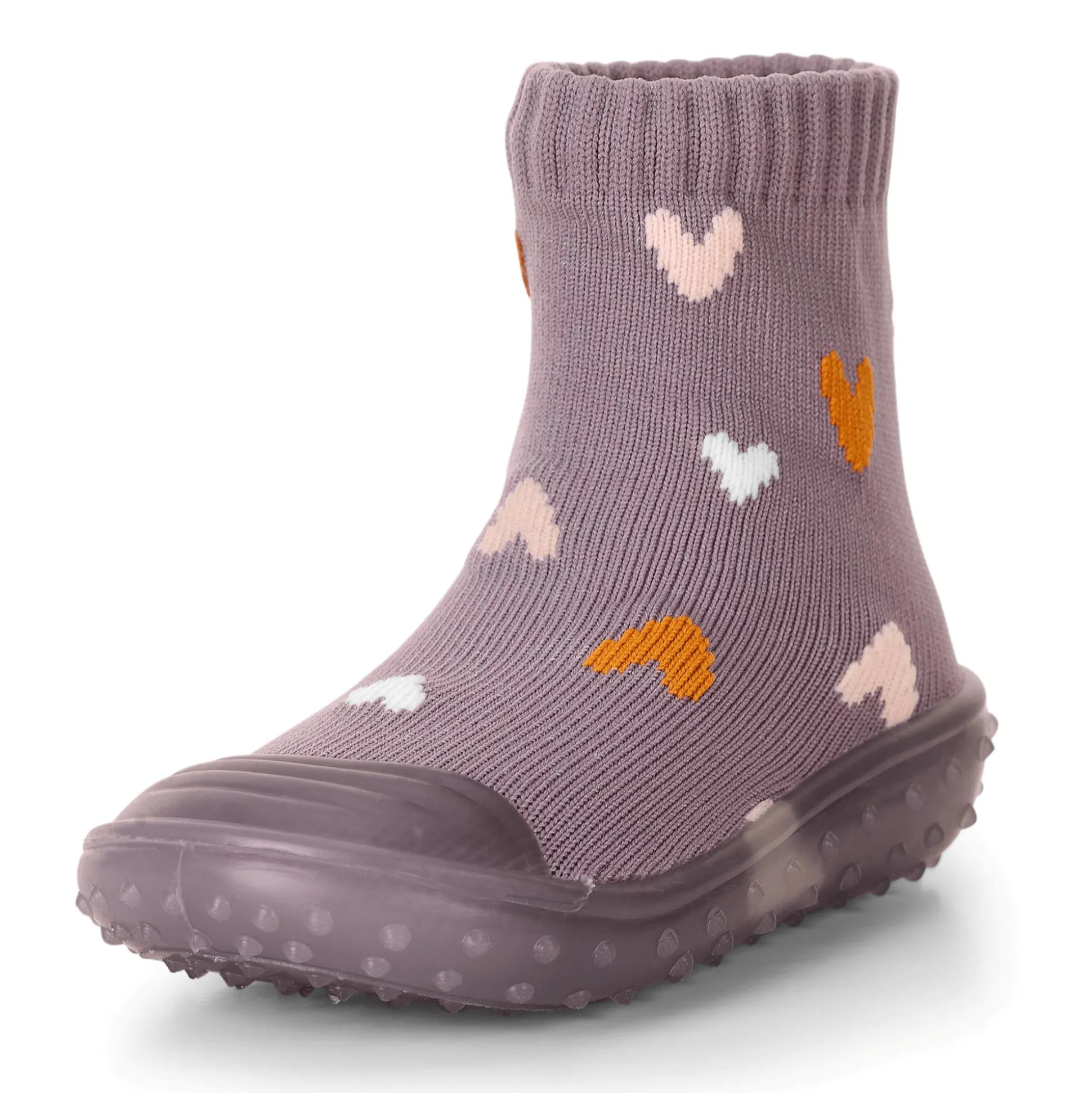 Der weiche Strumpf in Lila mit zuckersüßem Herzen-Allover-Print schmiegt sich super an den Fuß, ohne einzuschneiden oder das kleine Steinchen in die Socke geraten. Die auffällige Form der transparenten Sohle mit hochgezogener Zehenkappe bietet zusätzlich jede Menge Freiraum für die kleinen Zehen und schützt gleichzeitig beim Krabbeln. Die Füße deines Nachwuchses sind mit den Sterntaler Sockenschuhen rundum vor spitzen Kieselsteinen, heißen Gehwegen und Sand oder gar Insektenstichen geschützt.