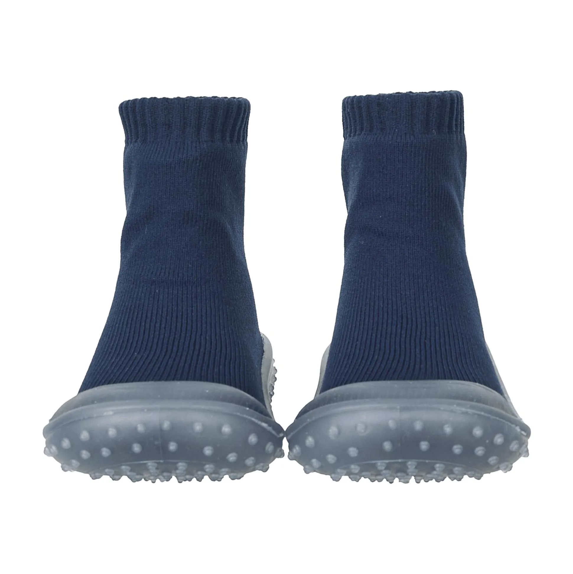 Mit diesen marineblauen Sterntaler Adventure-Socks kann dein kleiner Liebling viele Abenteuer durchlaufen. Die auffällige Form der transparenten Sohle mit hochgezogener Zehenkappe bietet jede Menge Freiraum für die kleinen Zehen und schützt zudem beim Krabbeln. Außerdem sind die kleinen Füße mit den Sockenschuhen rundum vor spitzen Kieselsteinen, heißen Gehwegen und Sand oder gar Bienen und Wespen geschützt. Die Innensohlen sind zur leichten Größenkontrolle herausnehmbar. Die unifarbenen Sterntaler Adventure Socks sind zusätzlich auch als Hausschuhe oder in der Kita ideal nutzbar.