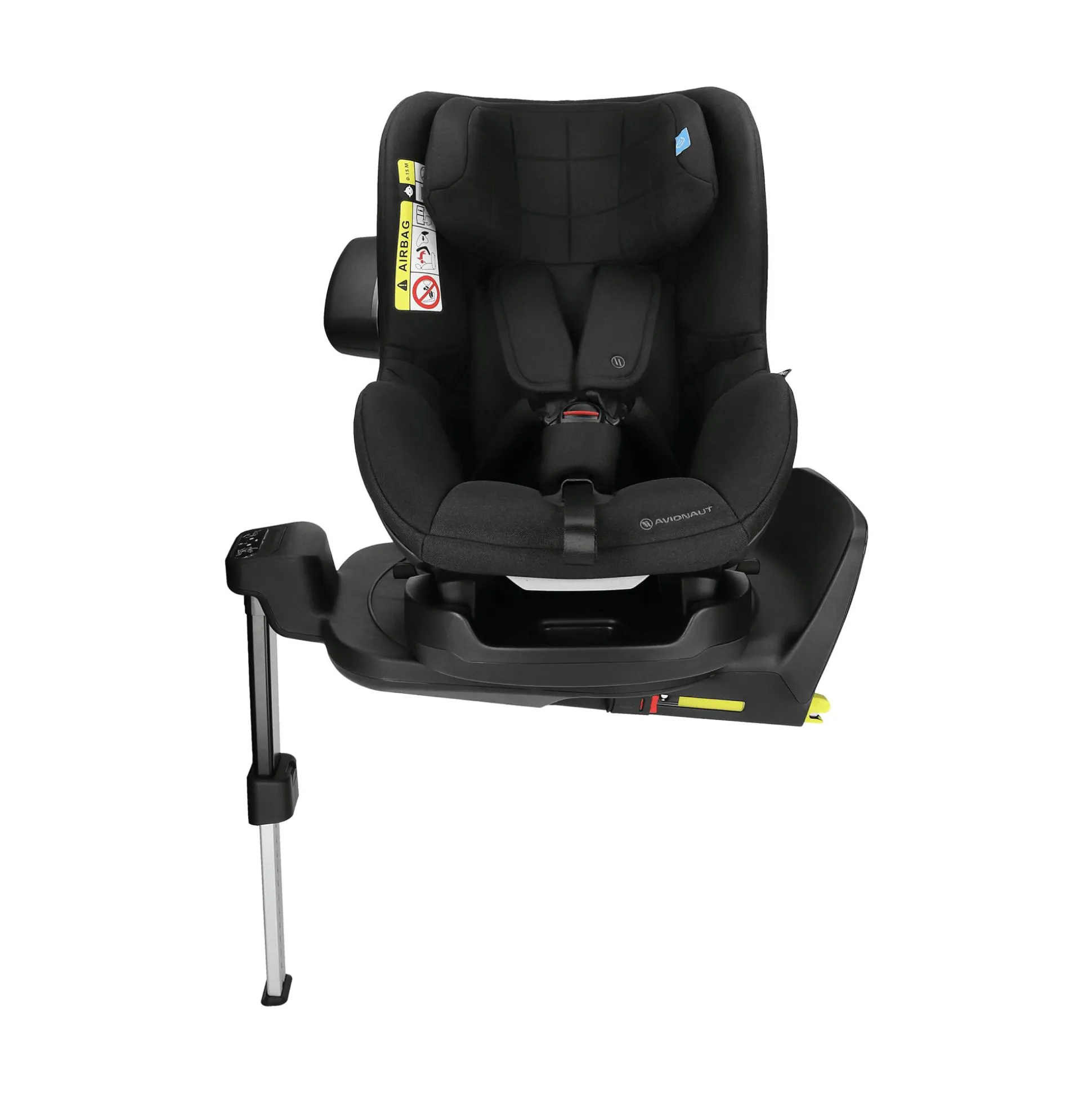 - Achtung: Befestigung im Fahrzeug nur per Basisstation (ISOFIX IQ Orbit oder IQ 2.0 C) mit Stützbein