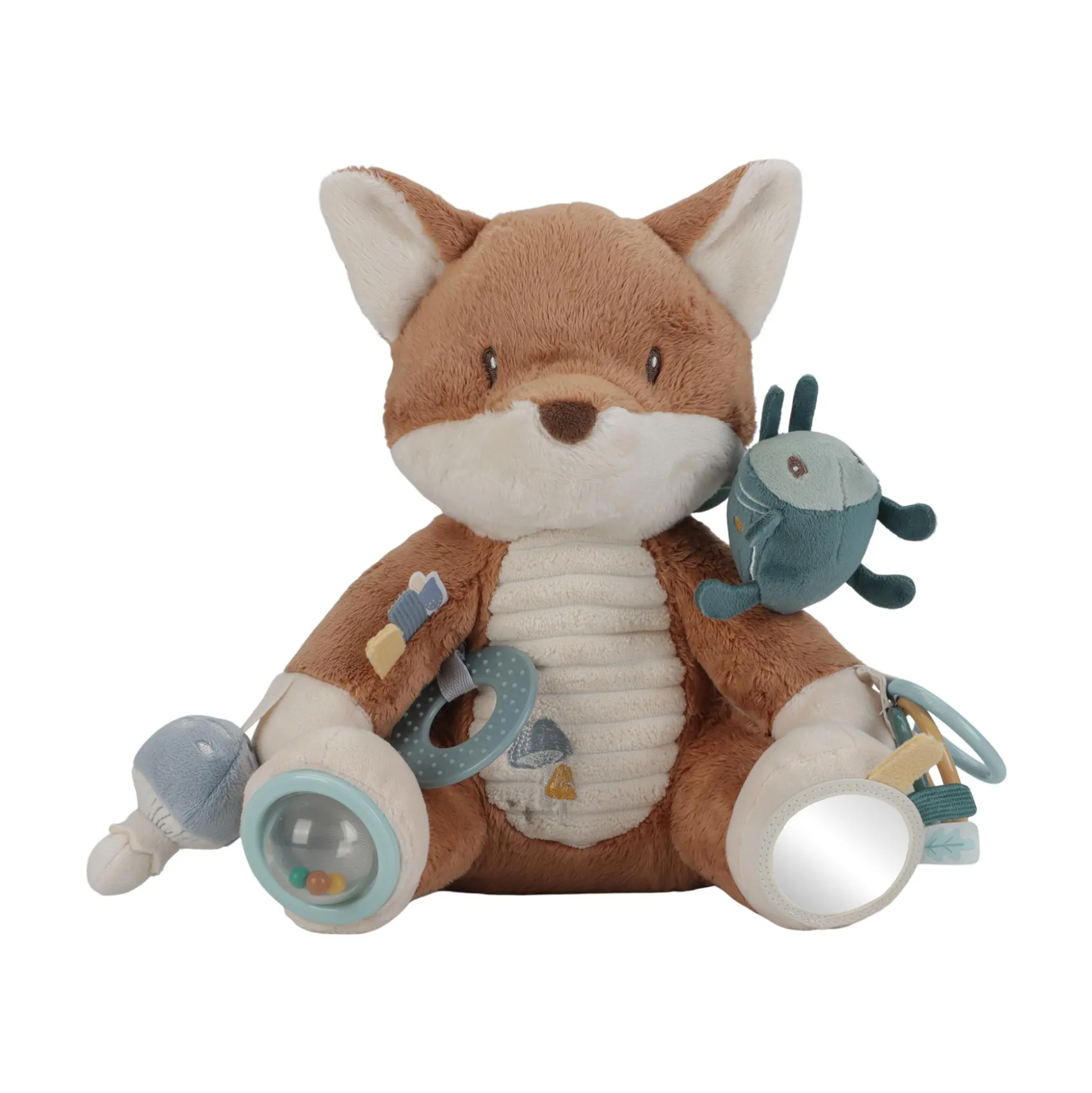 Der Aktivitäten Fuchs Forest Friends von Little Dutch ist ein bezaubernder Spielgefährte, der mit seinen zahlreichen Funktionen die Neugier deines kleinen Lieblings weckt. Es gibt viel zu entdecken: Einen krabbelnden Käfer auf der Schulter, verschiedene Etiketten und einen Pilz zum Anfassen und Fühlen.Zudem sorgt ein rasselndes Geräusch für akustische Abwechslung, während Ringe am Bein und ein Spiegel am Fuß spielerisch die Sinne anregen. Das Kuscheltier ist der perfekte Begleiter für deinen kleinen Abenteurer und sorgt für süße Träume von einem verzauberten Wald.