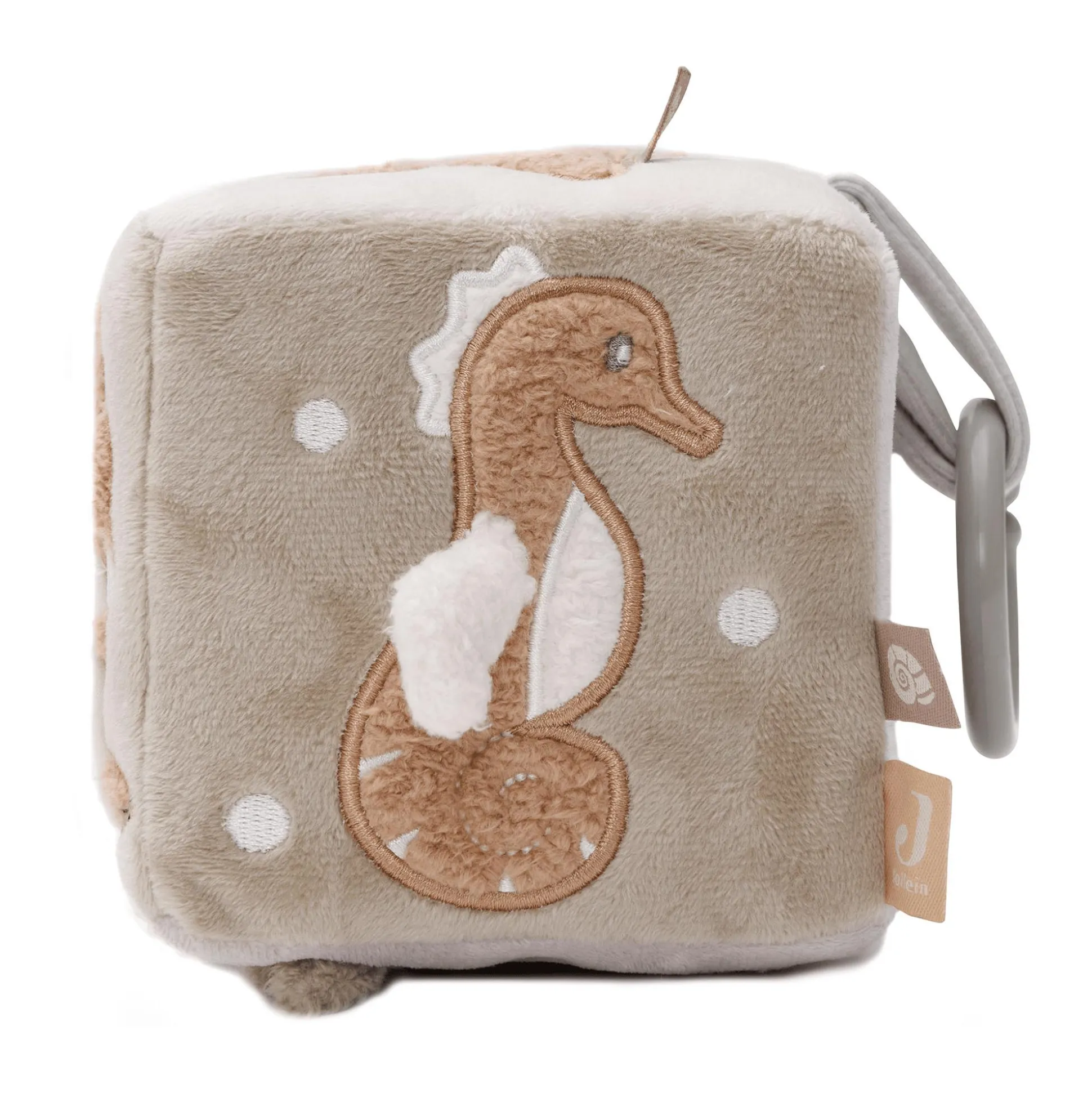 Entdecke die Welt des Ozeans! Mit dem vielseitigen Aktivitäten-Würfel Deepsea von Jollein wird dein kleiner Schatz spielerisch unterschiedliche Figuren kennenlernen und in die Unterwasserwelt eintauchen. Dabei garantieren knisternde Walflossen, ein glänzender Spiegel und viele Schnüre aufregende Abenteuer und wecken die Neugierde deines Babys.Dank seiner handlichen Größe von ca. 13 cm ist der Würfel leicht zu greifen und perfekt auf kleine Hände abgestimmt. Sein niedliches Design lädt zum Fühlen, Greifen und Erkunden ein, während er gleichzeitig die sensorische und motorische Entwicklung deines Babys unterstützt.