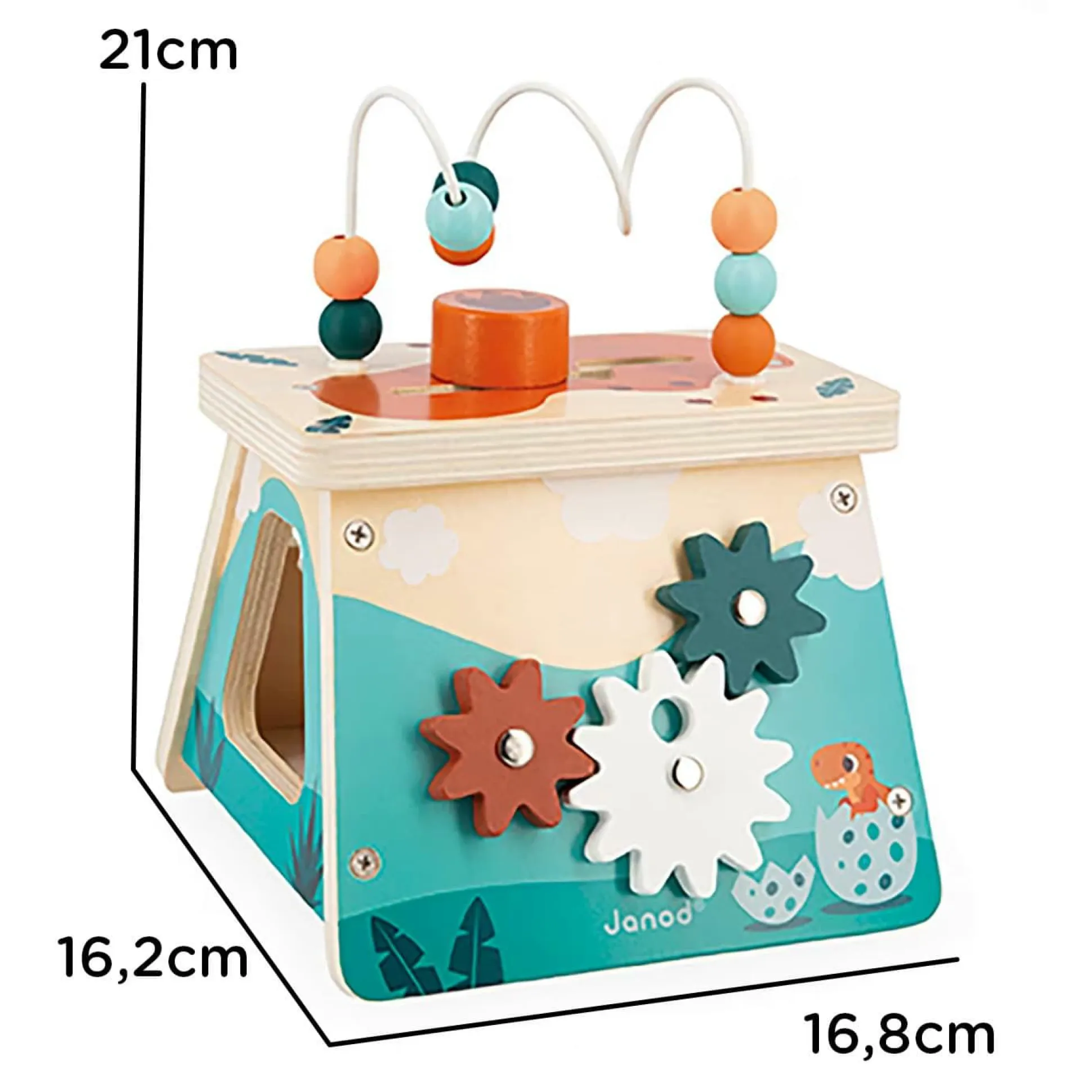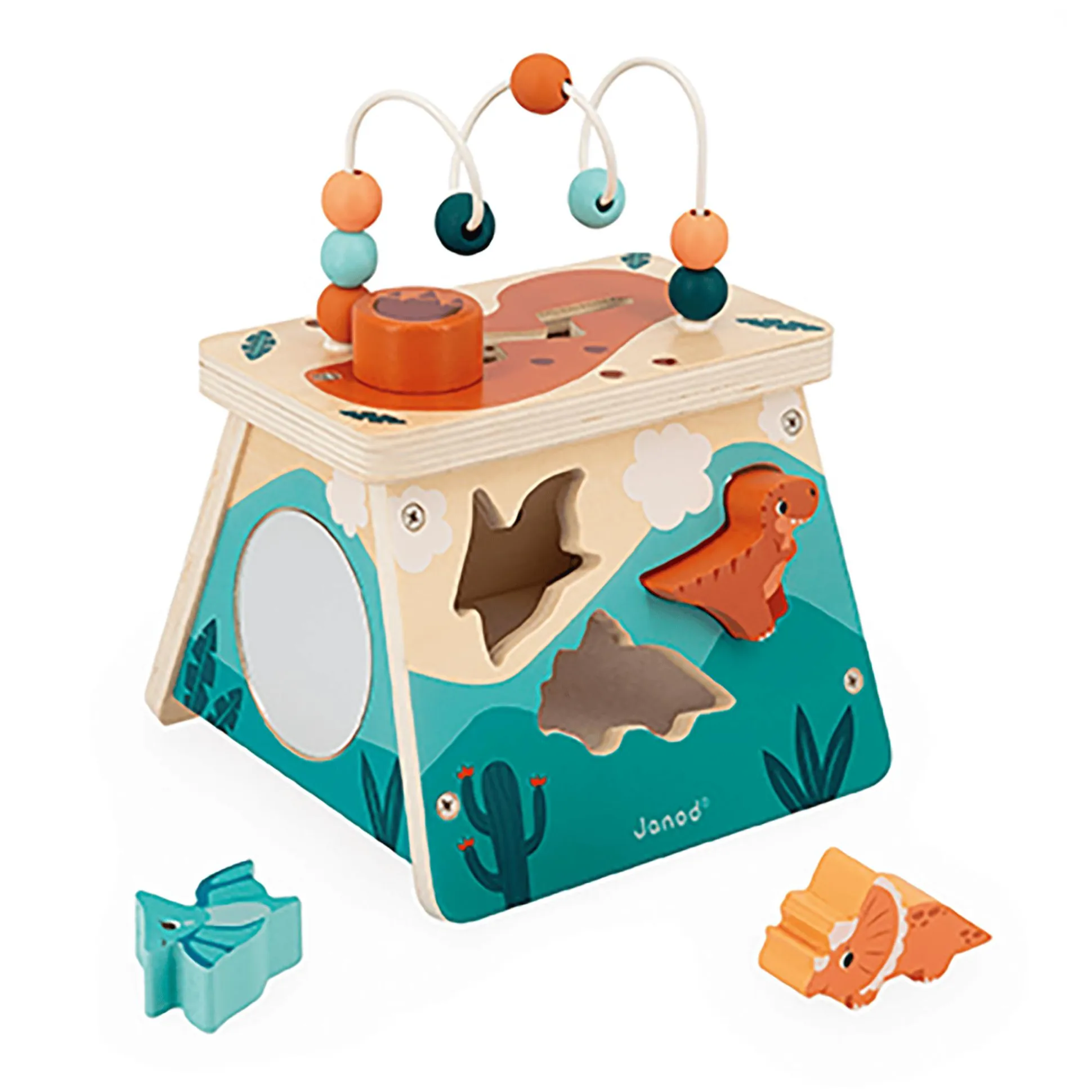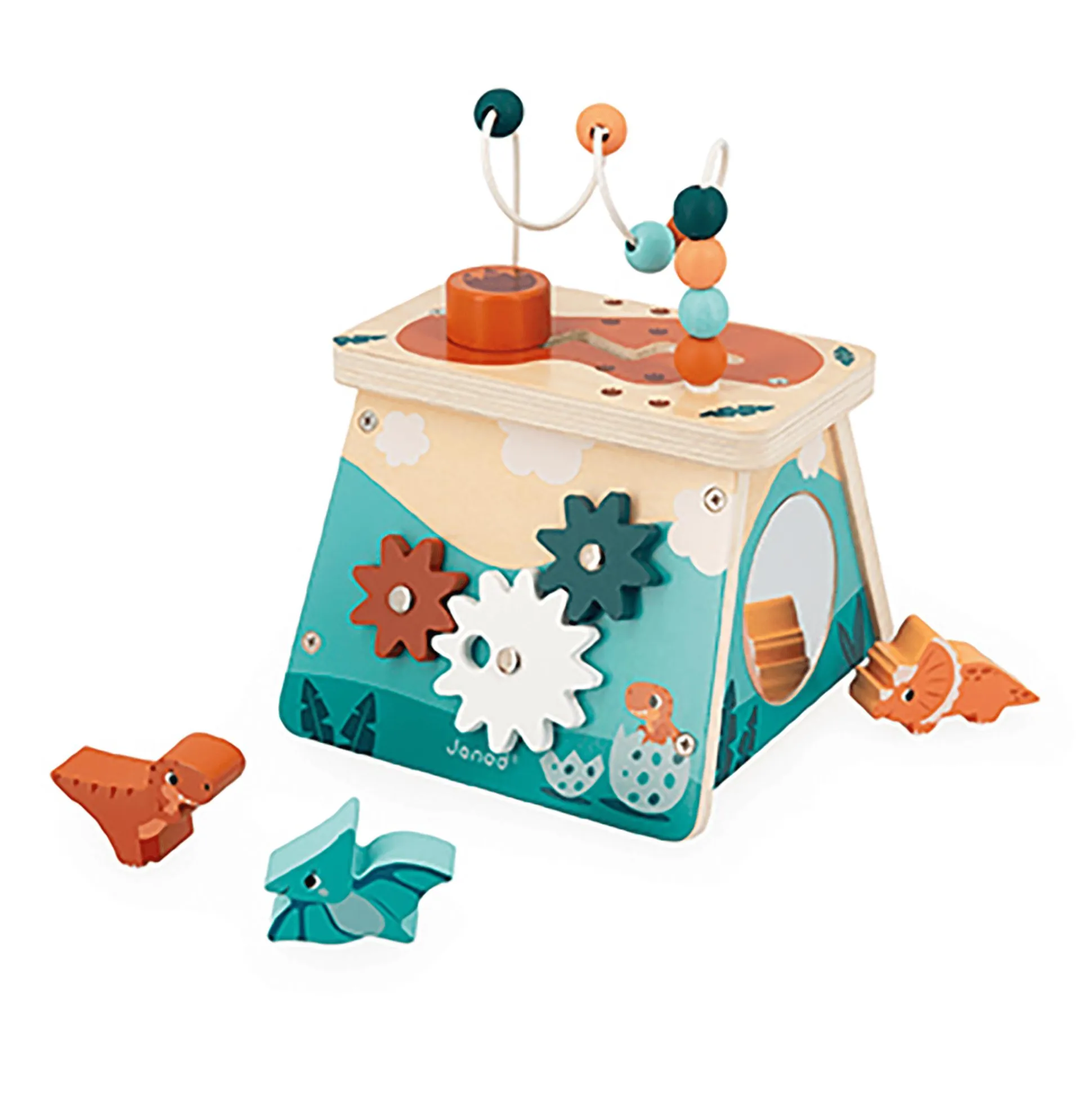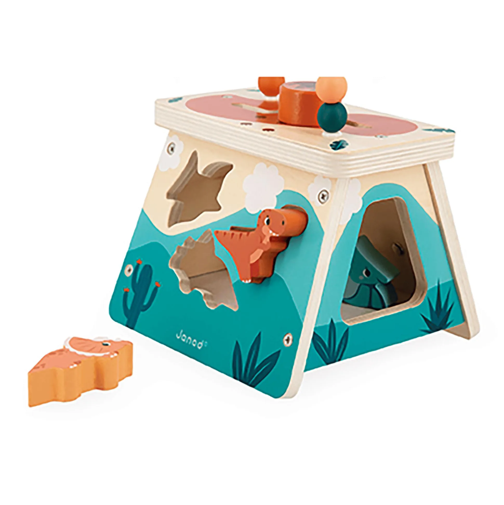 Mit diesem tollen Aktivitäten-Vulkan von Janod kommt so schnell keine Langeweile auf! Durch das Steckspiel auf der Vorderseite lernt dein Nachwuchs spielerisch die Welt der Dinosaurier kennen und kann die verschiedenen Dinos in die passenden Löcher stecken. Da der Boden des Spiels mit Filz ausgelegt ist, fallen die Saurier lautlos hinein. Dank der großen Öffnung an der Seite kann dein kleiner Liebling die Figuren kinderleicht wieder herausnehmen.
