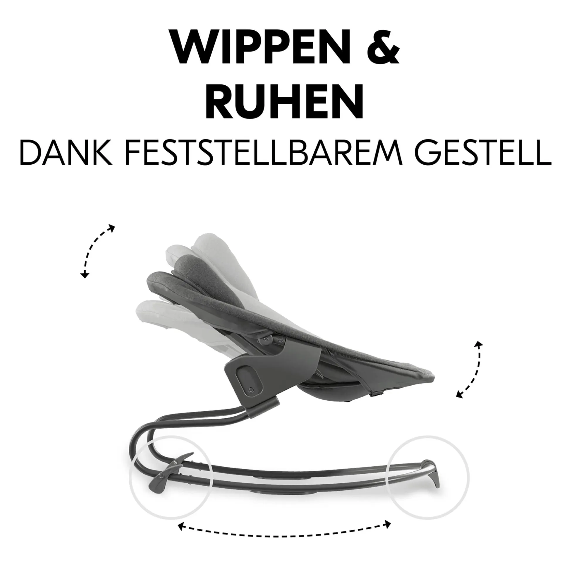 Durch die verstellbare Rückenlehne kannst du dein Kind etwas aufrichten, damit es alles genau sehen kann – zum Relaxen bringst du es einfach in eine flache Liegeposition. Dein Nachwuchs liebt Bewegung? Mit dem Wippgestell kannst du dein Baby an deiner Seite wippen lassen. Dank Klick-System ist der Aufsatz schnell vom Hochstuhl gelöst und auf das Gestell geklickt. Sanftes Wippen imitiert die Bewegungen im Mutterleib und entspannt dein Baby. Für extra Spielspaß klappst du die Füße der Wippe hoch, dann schaukelt sie vor und zurück.
