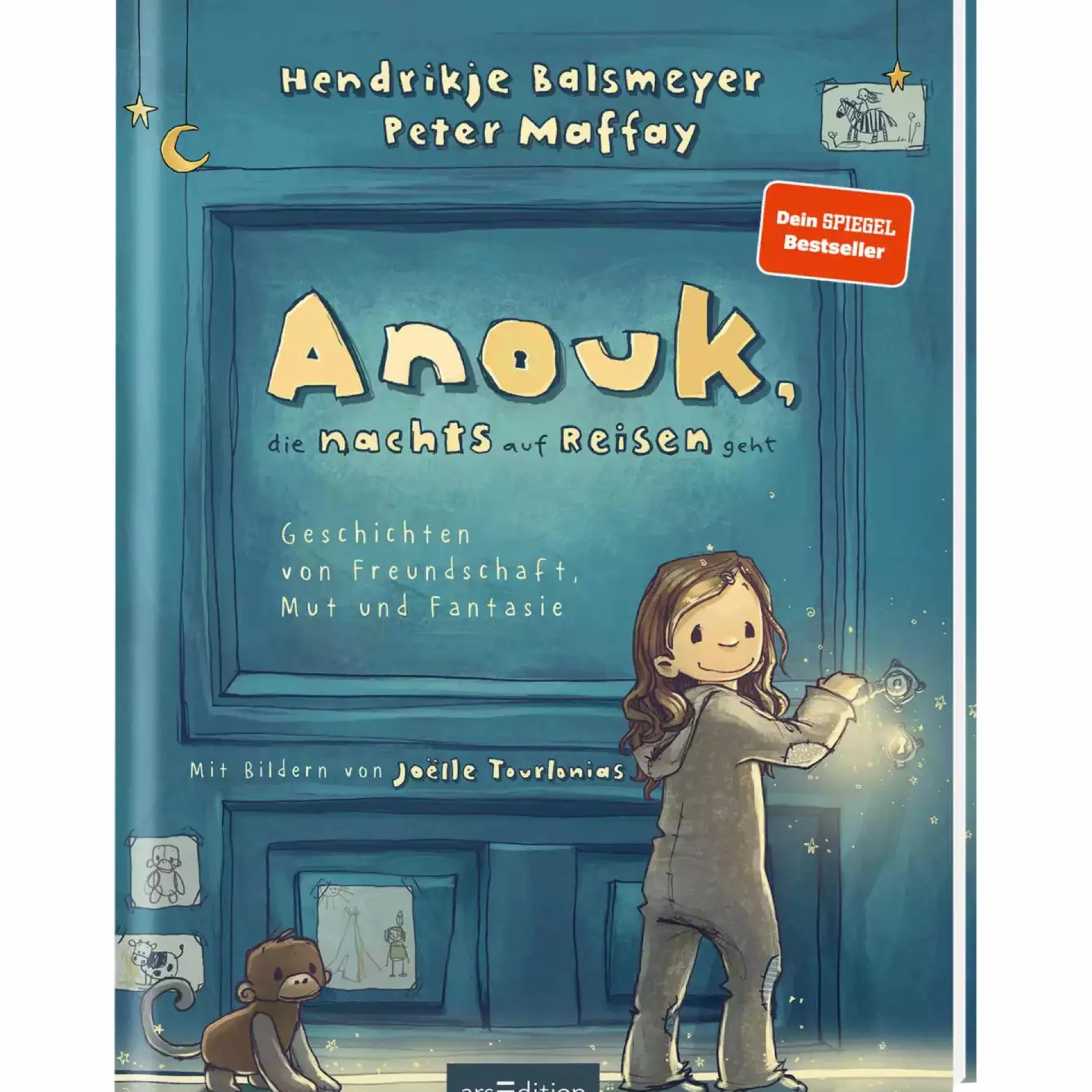 In dem Kinderbuch „Anouk, die nachts auf Reisen geht“ sind sieben spannende Gutenachtgeschichten enthalten. Anouk erlebt Nacht für Nacht neuerdings aufregende Abenteuer. Ob im Zirkus, bei den Piraten, auf dem Bauernhof oder auf der großen Bühne – überall findet Anouk neue Freunde.