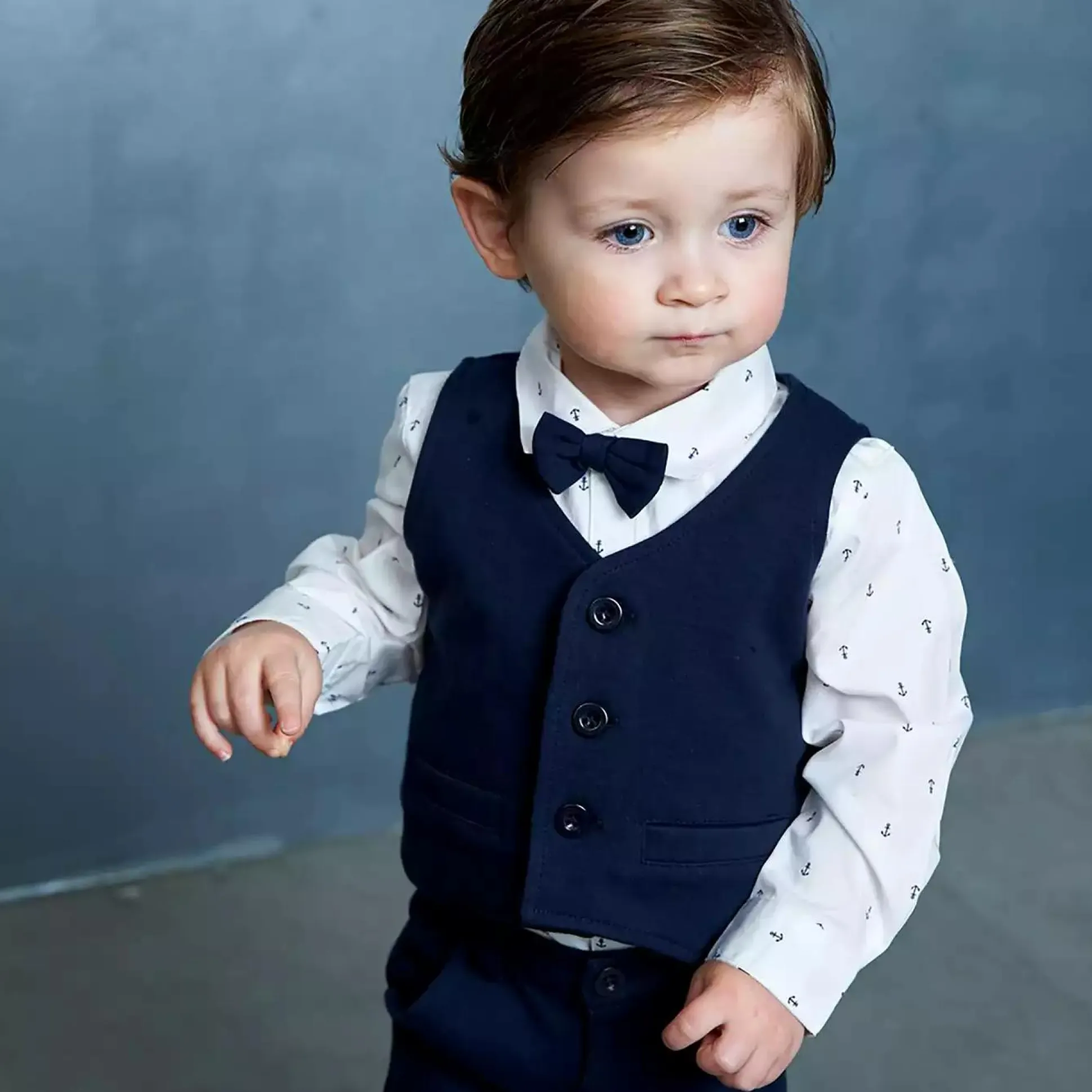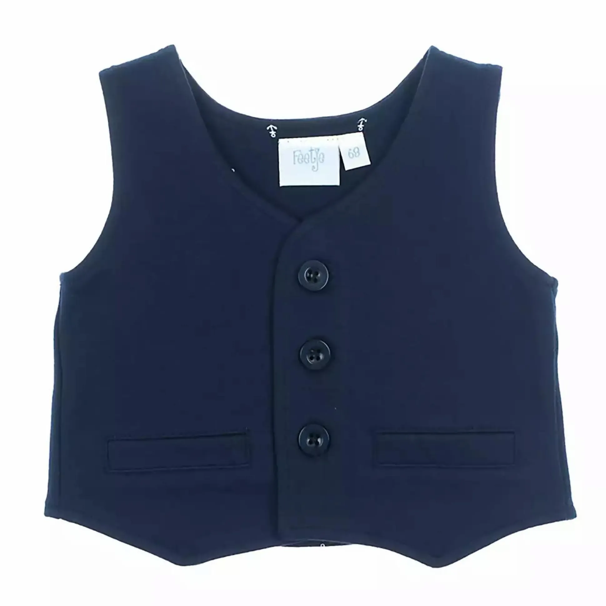 In dieser schönen Anzugweste von Feetje in einem schönen Marineton wird sich dein Kind rundum wohlfühlen. Die Weste hat drei Knöpfe und kann so leicht an- oder ausgezogen werden. Man kann sie lässig mit einem Shirt oder schick mit einem Hemd kombinieren. Somit ist die Weste für jeden Anlass optimal geeignet.