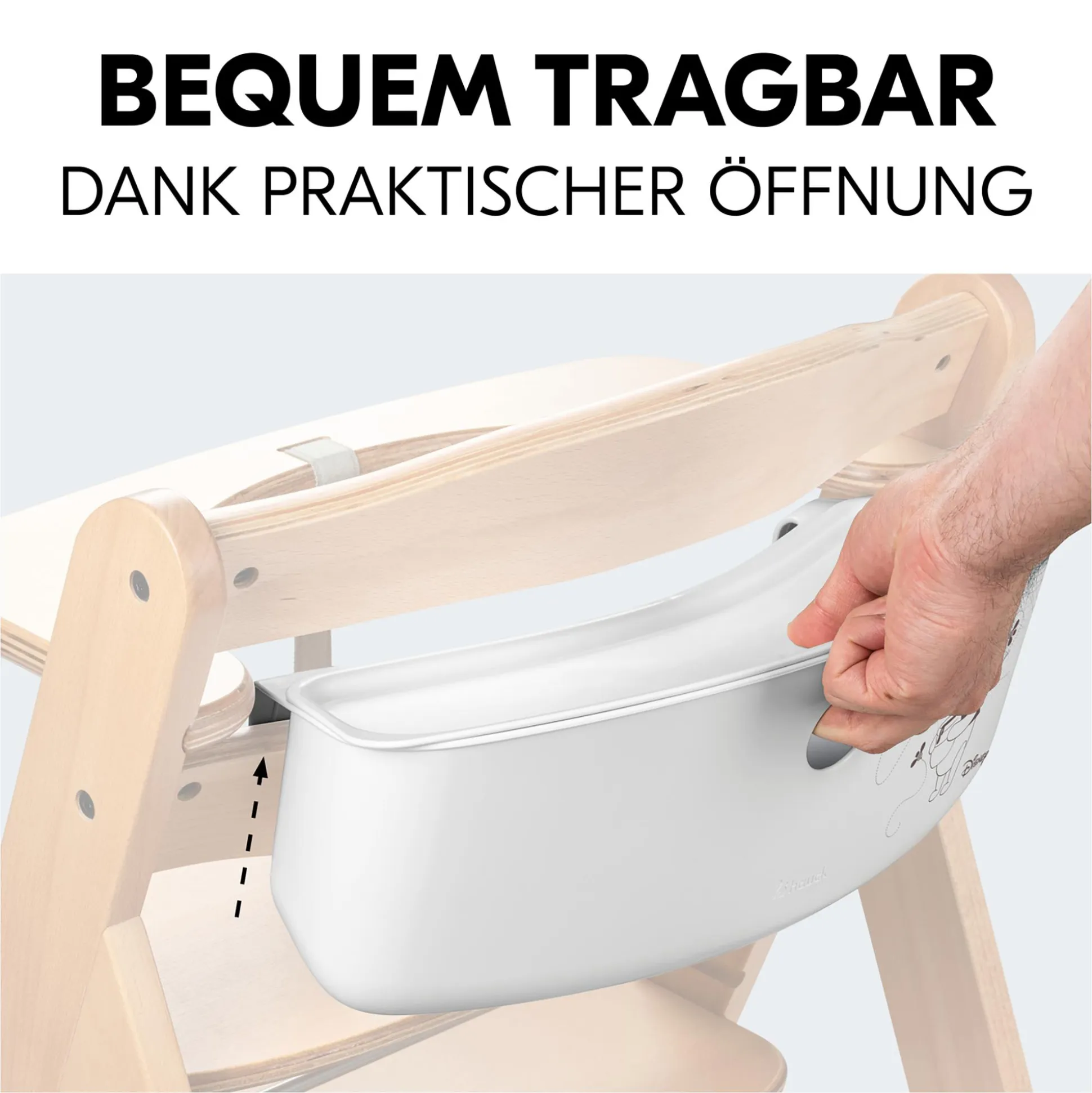 Du und dein Liebling müsst nicht mehr auf Schatzsuche nach all den wichtigsten Utensilien gehen – denn in der Aufbewahrungsbox Alpha Winnie Pooh von hauck hast du alle Schätze deines Kindes immer griffbereit direkt am Hochstuhl. So kannst du Lätzchen, Kinderbesteck oder Spielsachen ganz einfach verstauen.