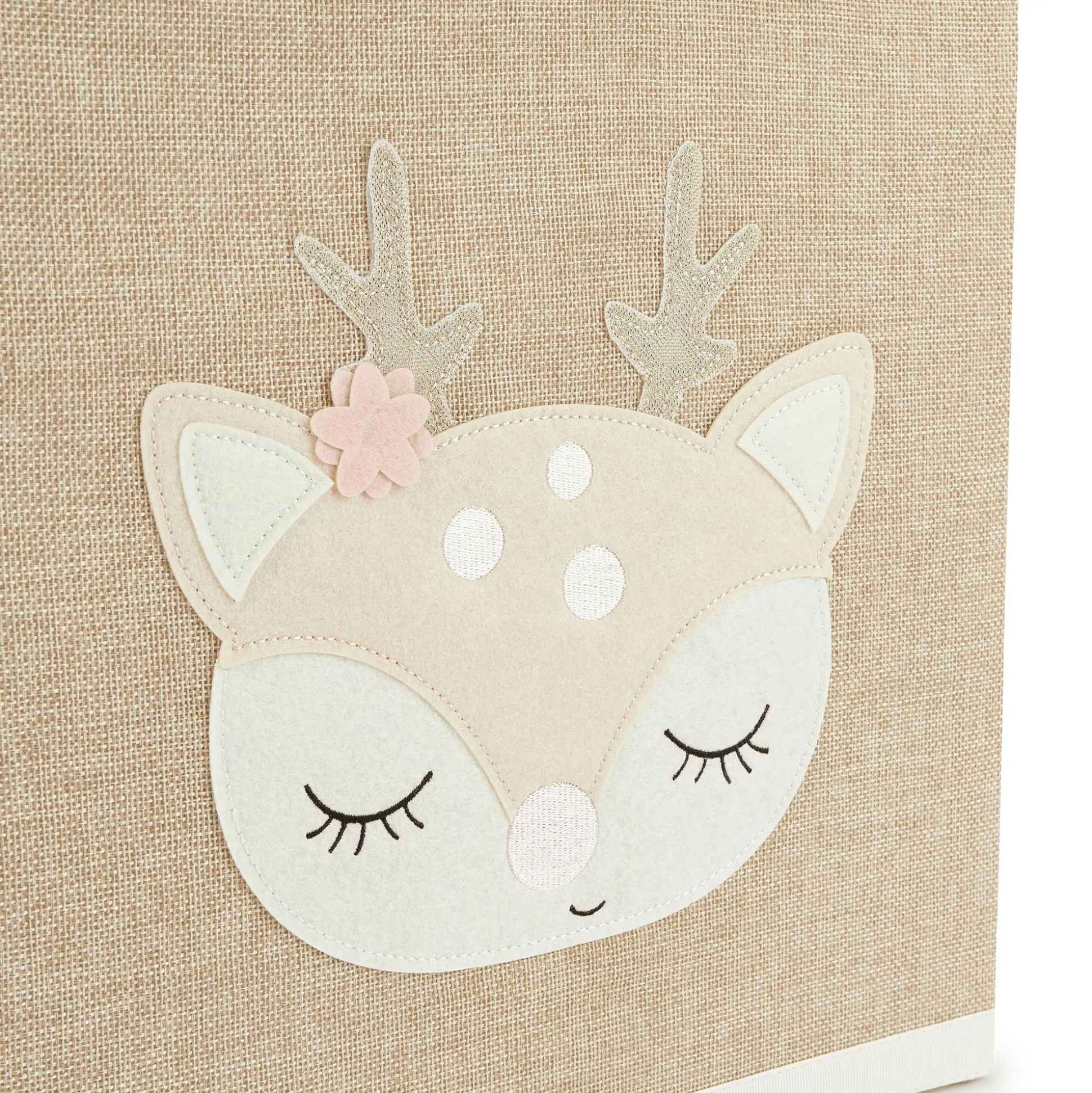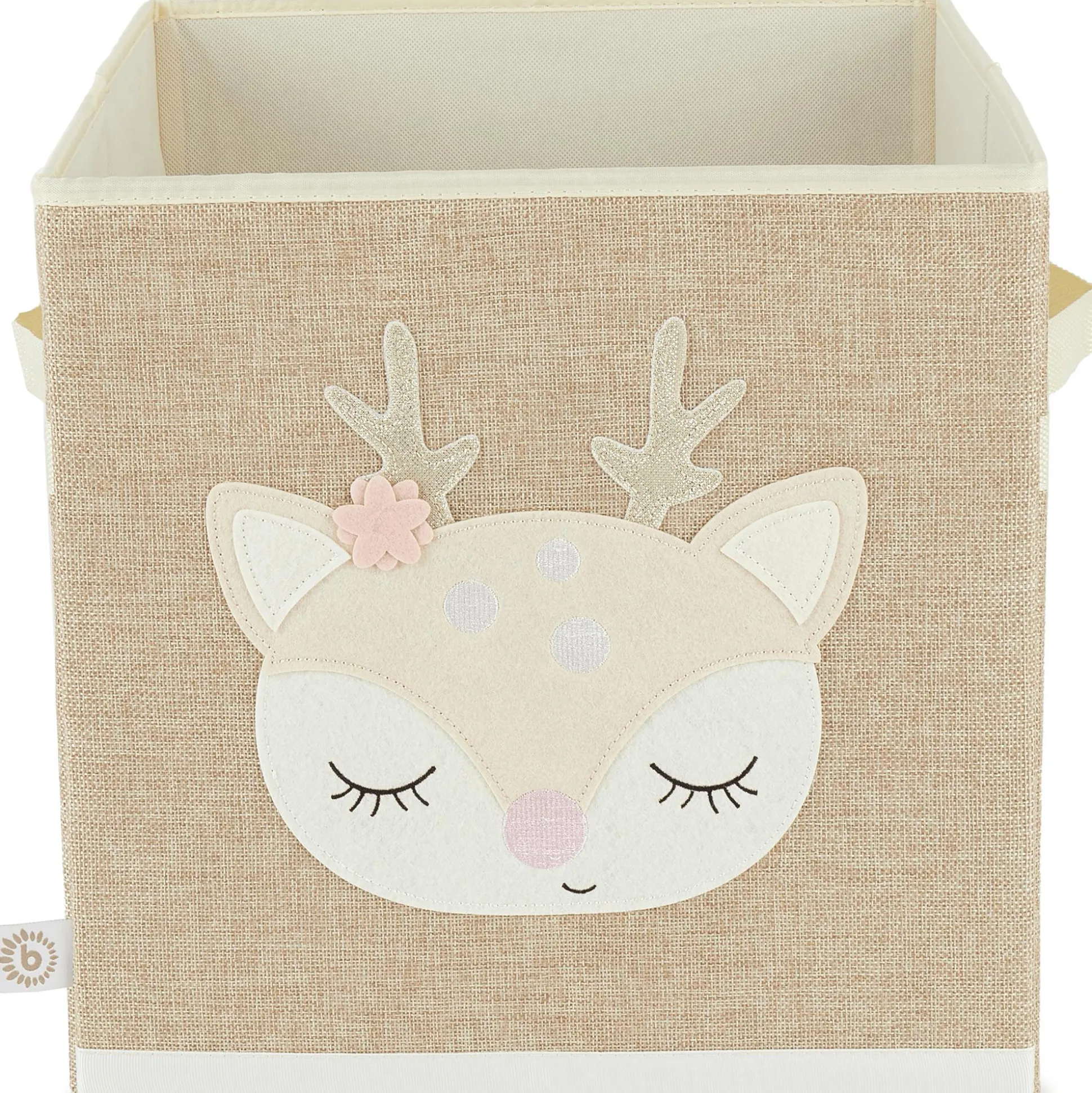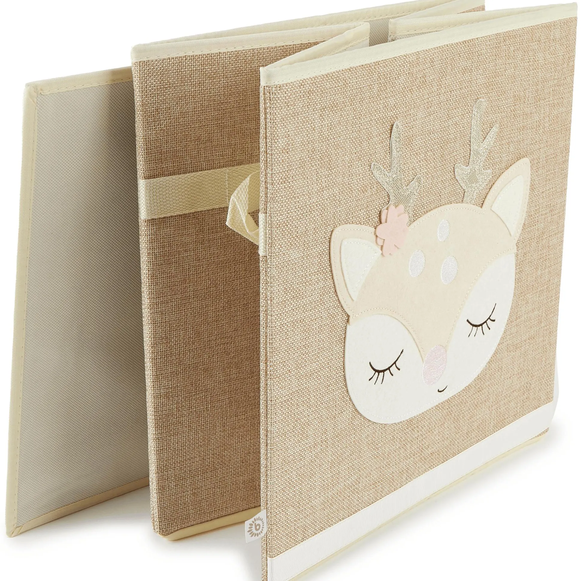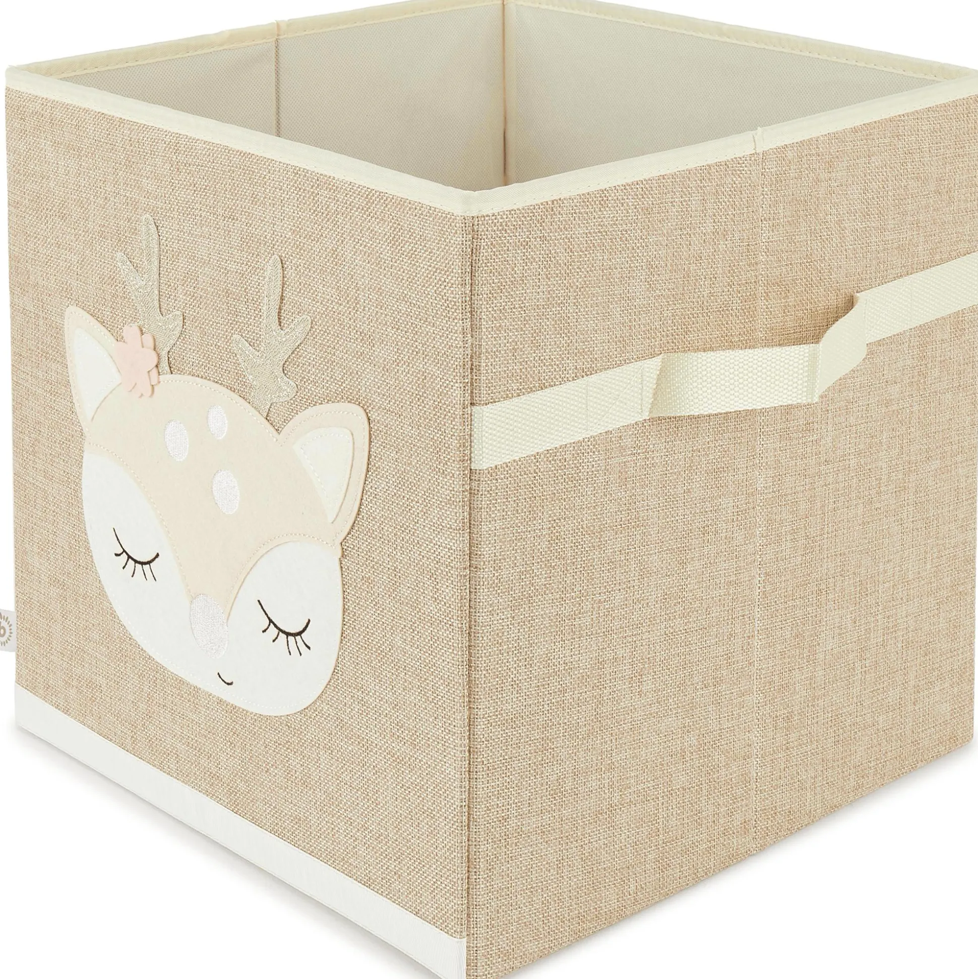 Diese schöne Kinder Aufbewahrungsbox von bieco bringt Ordnung ins Kinderzimmer. Die Dekorative Kiste ist quadratisch und lässt sich problemlos als Fach für das IKEA Kallax Regal verwenden. Wird die Aufbewahrungsbox einmal nicht benötigt, kann sie einfach zusammengefaltet werden und verschwindet platzsparend im Schrank. Dank der Tragegriffe an der Seite der Box lässt sie sich spielend einfach transportieren. Mit einem Fassungsvermögen von etwa 33 Litern bietet die schöne Box viel Platz für Lieblingsspielzeug, Kleidung und andere Dinge und aufräumen wird ganz einfach.