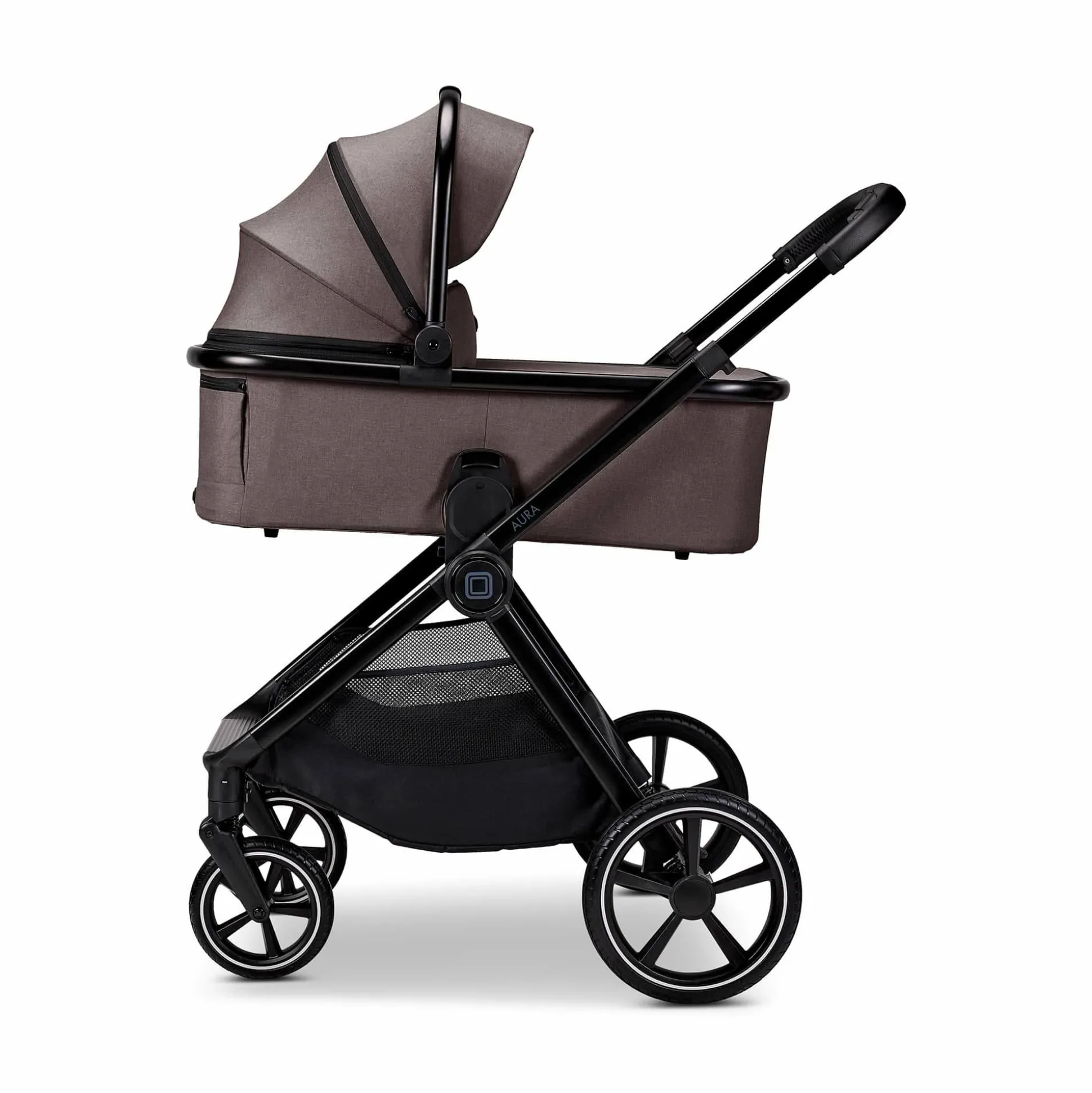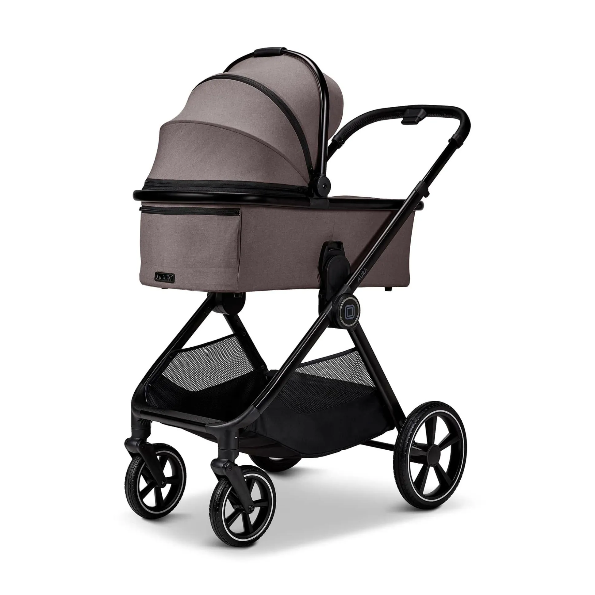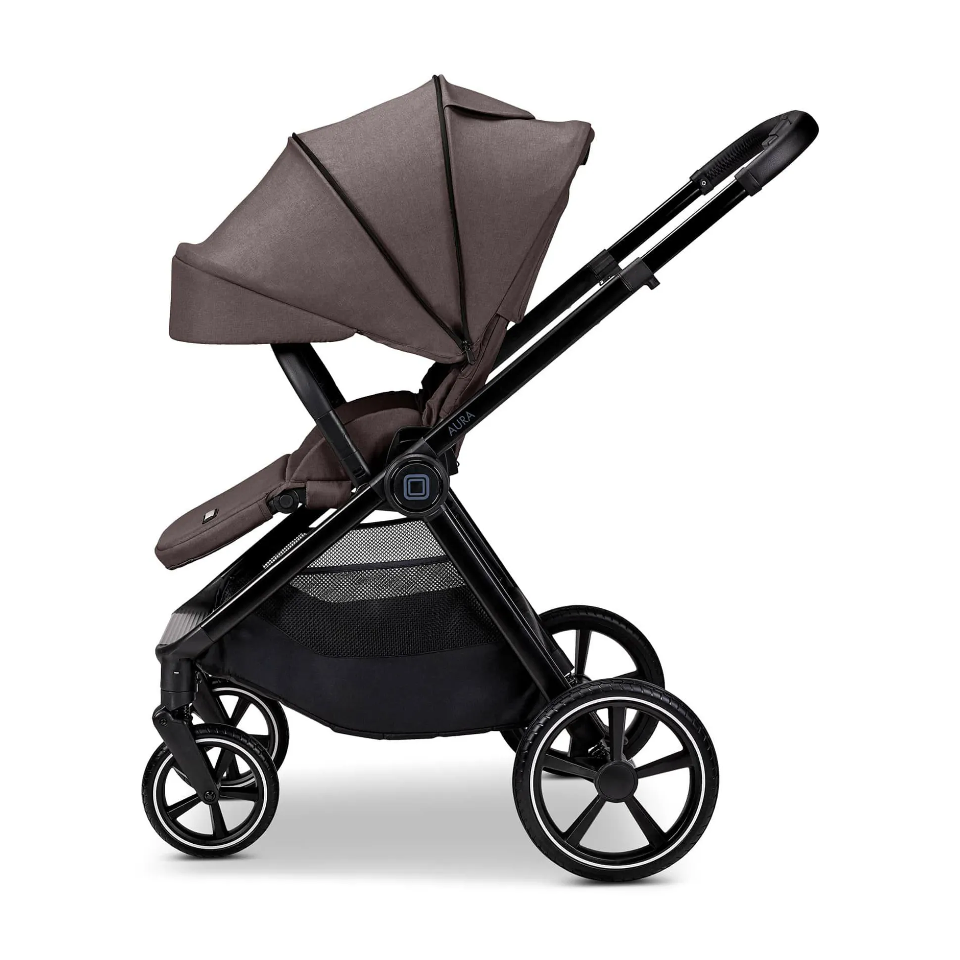 - Lieferumfang: AURA Gestell inkl. Einkaufskorb, Babywanne mit Matratze, Sportsitz (beidseitig faltbar), Wickeltasche (passend), Höhenadapter, Universal-Adapter für Babyschale, Regenverdeck für Wanne & Sitz, Reflektor-Sticker zur optionalen Montage