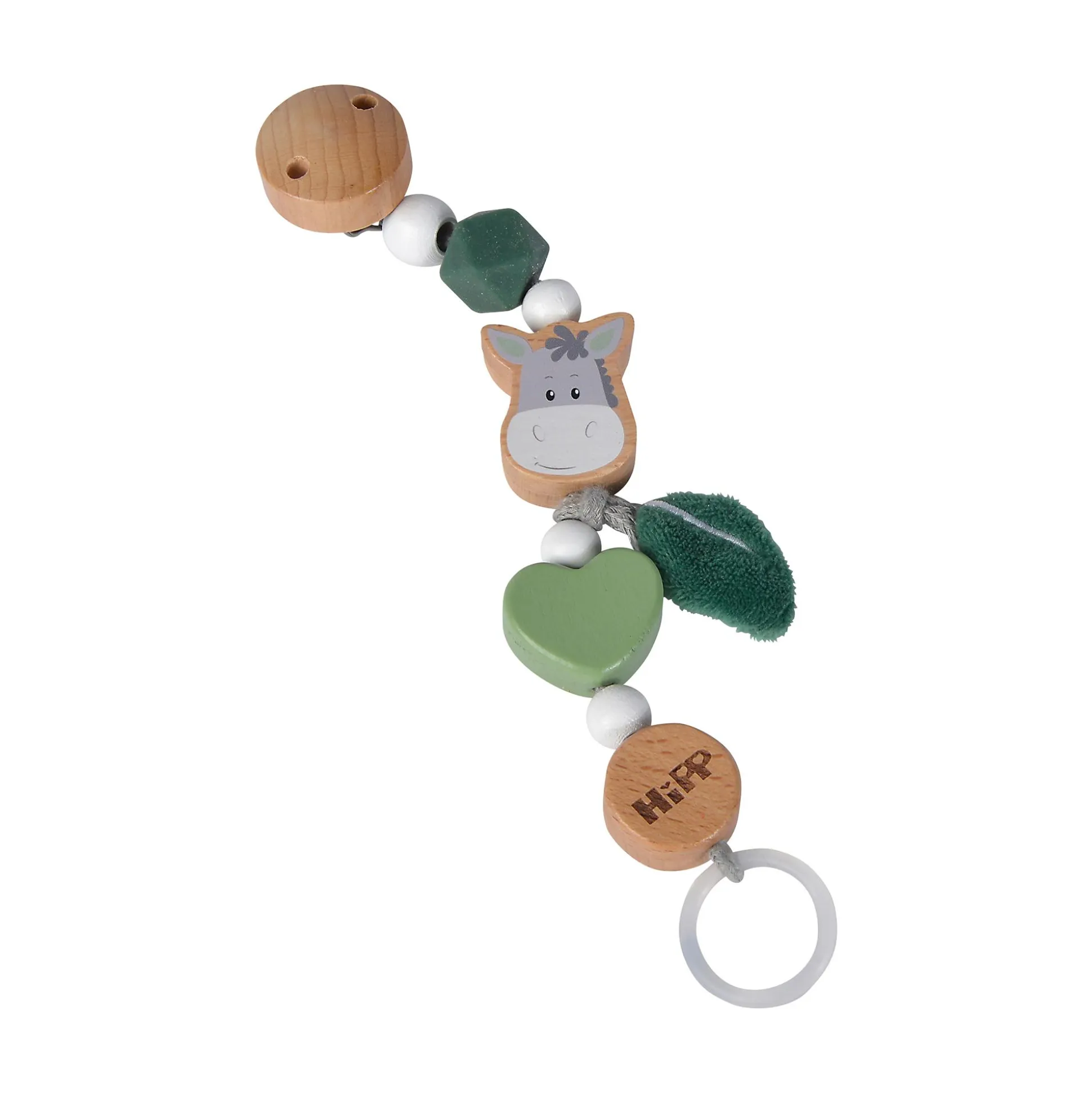 Die Baby HIPP Schnullerkette von Eichhorn ist ein liebevoll gestaltetes Accessoire für dein Kind ab den ersten Lebensmonaten. Sie besteht aus verschiedenen Formen und Fühlperlen aus FSC-zertifiziertem Buchenholz und Silikon.Ein niedliches Tiermotiv und ein kuscheliges Plüschelement laden zum Greifen, Tasten und Entdecken ein. Die Schnullerkette bietet ein vielseitiges Sinneserlebnis, fördert die Wahrnehmung von Farben und Formen und spricht durch ihre unterschiedlichen Materialien gezielt den Tastsinn an – ideal zur Unterstützung der frühkindlichen Entwicklung.