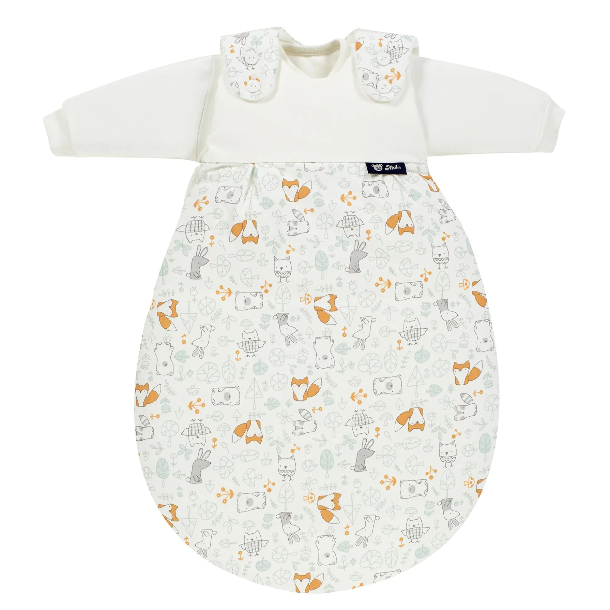 Den praktischen Ganzjahresschlafsack kannst du zweifach verwenden: Bei kühleren Temperaturen kann dein kleiner Schatz in einer Kombination aus Außen- und Innenschlafsack ruhen, während bei warmem Wetter nur der Innensack zum Einsatz kommt. Für hohen Komfort und Sicherheit deines kleinen Lieblings sorgen die optimale Wärmeregulierung durch hautfreundlichen Baumwoll-Jersey sowie der bequeme Rücken ohne störende Naht. Dank der geräumigen Birnenform hat dein Nachwuchs außerdem viel Platz zum Strampeln.