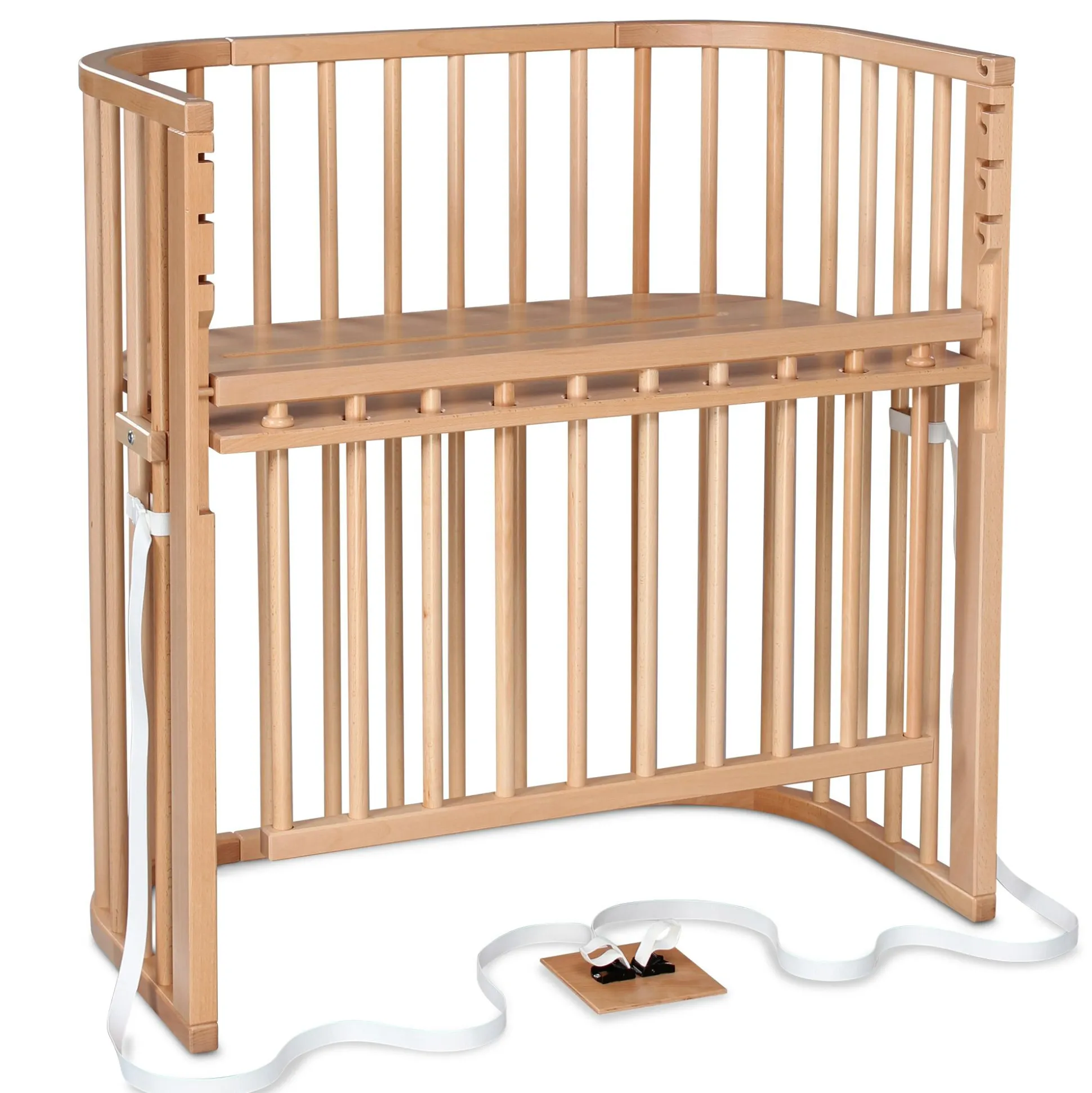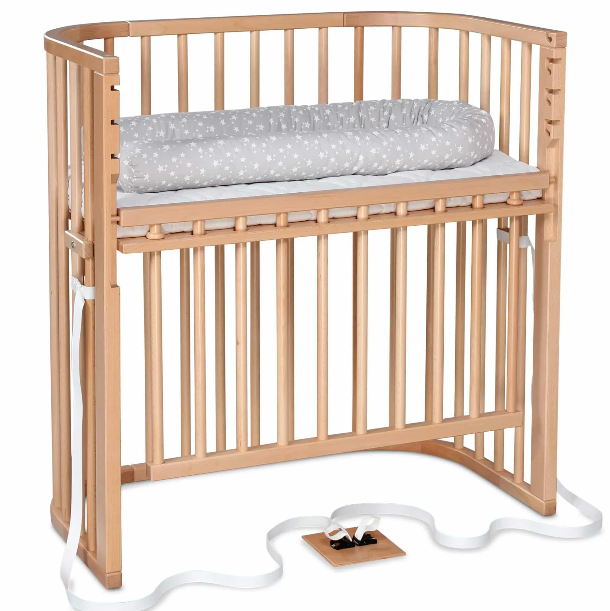 - durch die spezielle Gurtbefestigung lässt sich das Beistellbett einfach & schnell am Elternbett befestigen