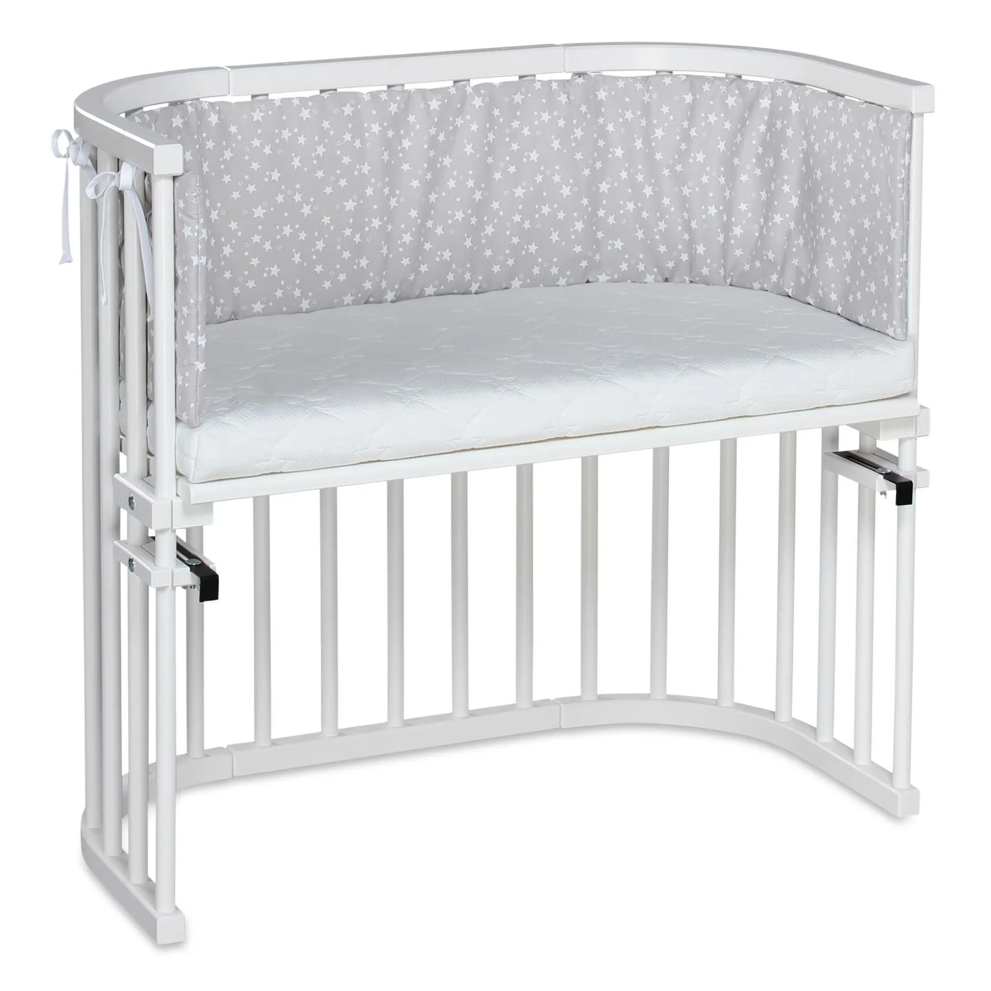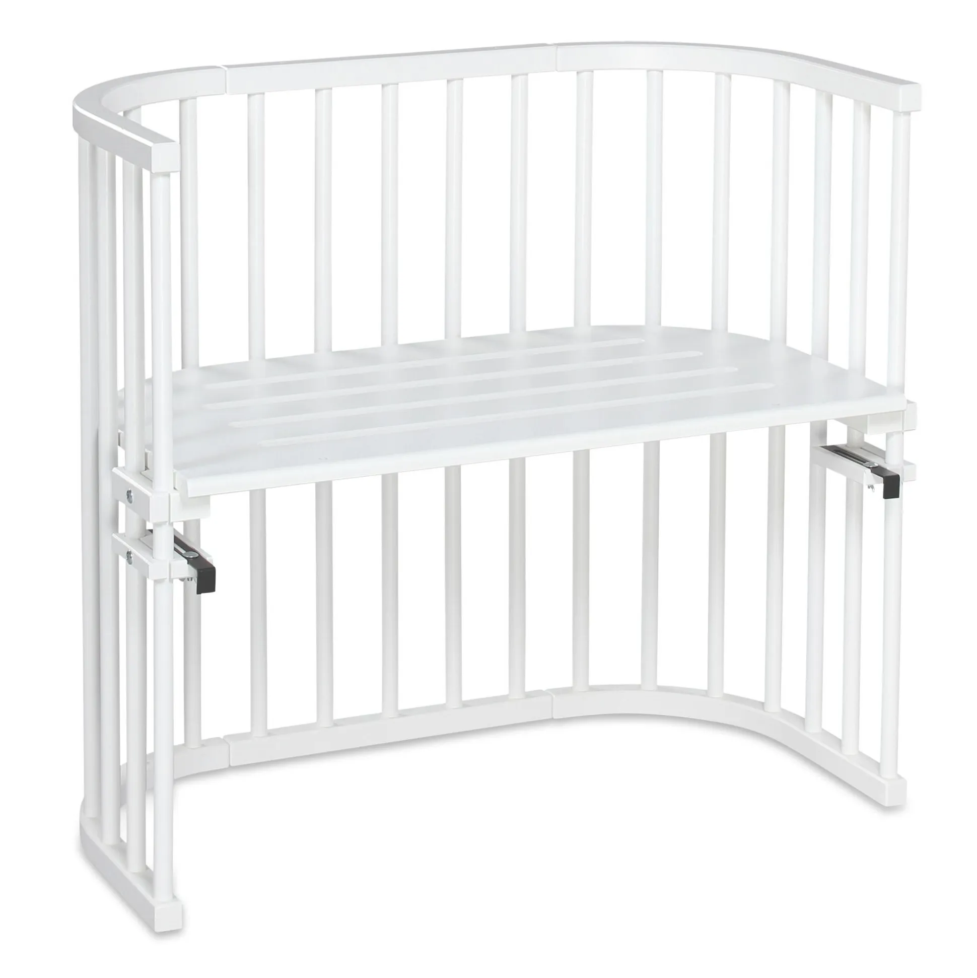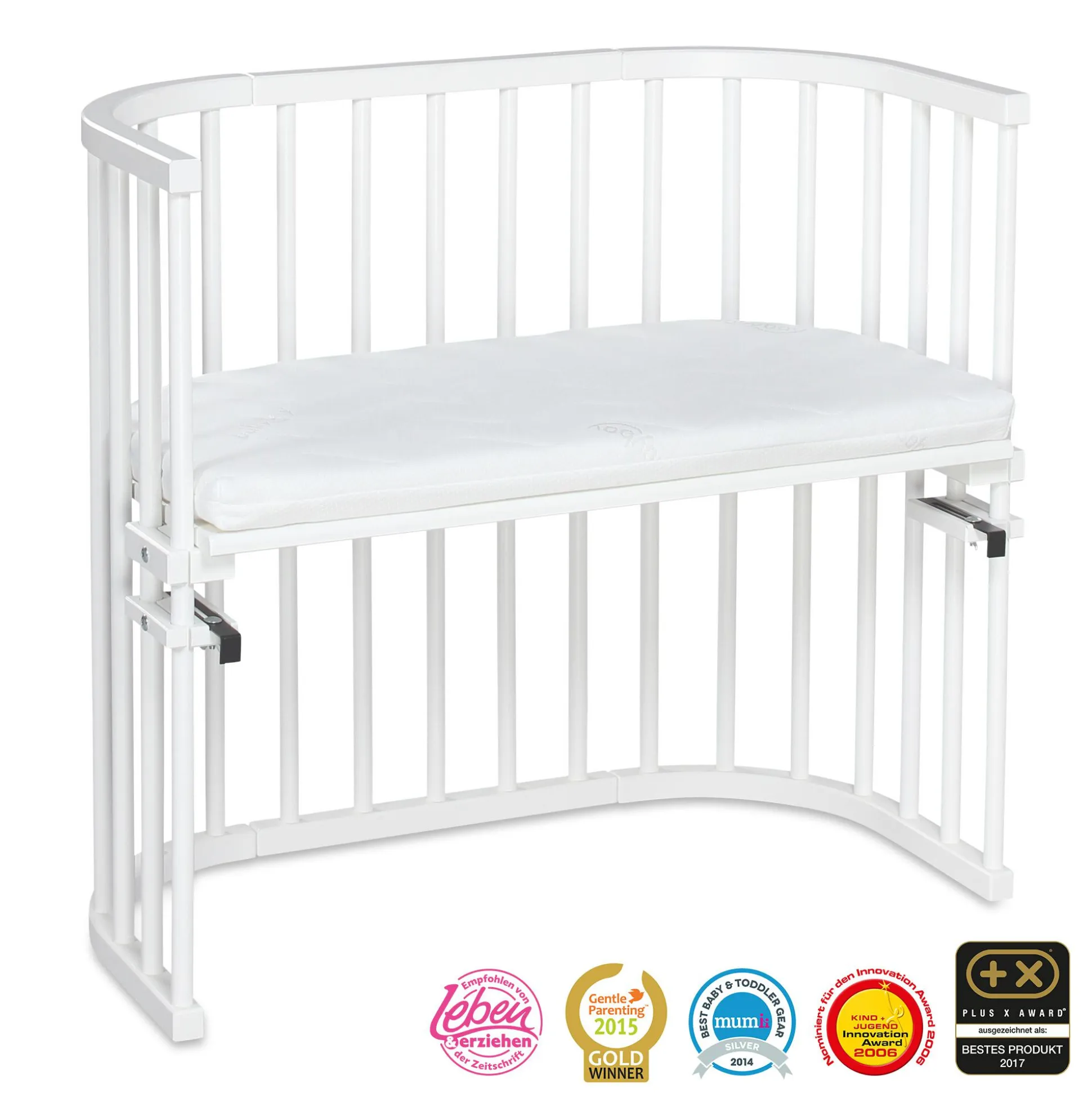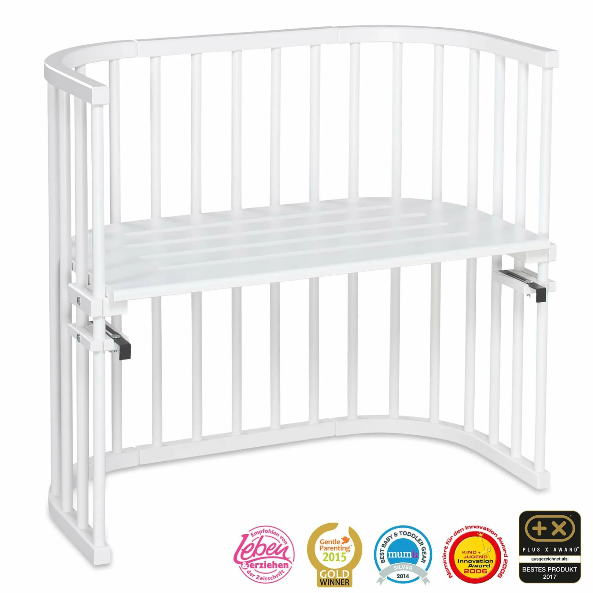 Das babybay Original ist ein echter Klassiker unter den Beistellbetten. Die kompakte Bauform passt perfekt in deinen Raum, während die patentierte stufenlose Höhenverstellbarkeit sicherstellt, dass es immer in der idealen Position ist – ganz ohne Stufe oder Spalt. Mit den zwei Metallhaltern wird das babybay Original mühelos am Elternbett eingehängt und schon ist dein kleiner Schatz nah bei dir – sicher und geborgen.Die stabile Konstruktion aus Buchenvollholz ist nicht nur pflegeleicht, sondern auch kinderleicht ohne Werkzeug zu montieren. Die verschiedenen Lackierungen geben dir die Freiheit, das Beistellbett nach dem Stil deines Zimmers auszusuchen. Alle Lacke sind schadstoff- sowie lösungsmittelfrei und speichelfest- somit unbedenklich für deinen Nachwuchs.Das gut belüftete Bett mit abgerundeten Ecken ist zudem ein wandelbares Multitalent, denn es wächst mit deinem Kind mit: Später kannst du es leicht zum Spieltisch oder einer Sitzbank umbauen. Optional erhältliches Zubehör bietet dir außerdem die Möglichkeit, es zu einem Stubenwagen, Kinderstuhl, Laufstall oder sogar einem großen Kinderbett zu verwandeln.