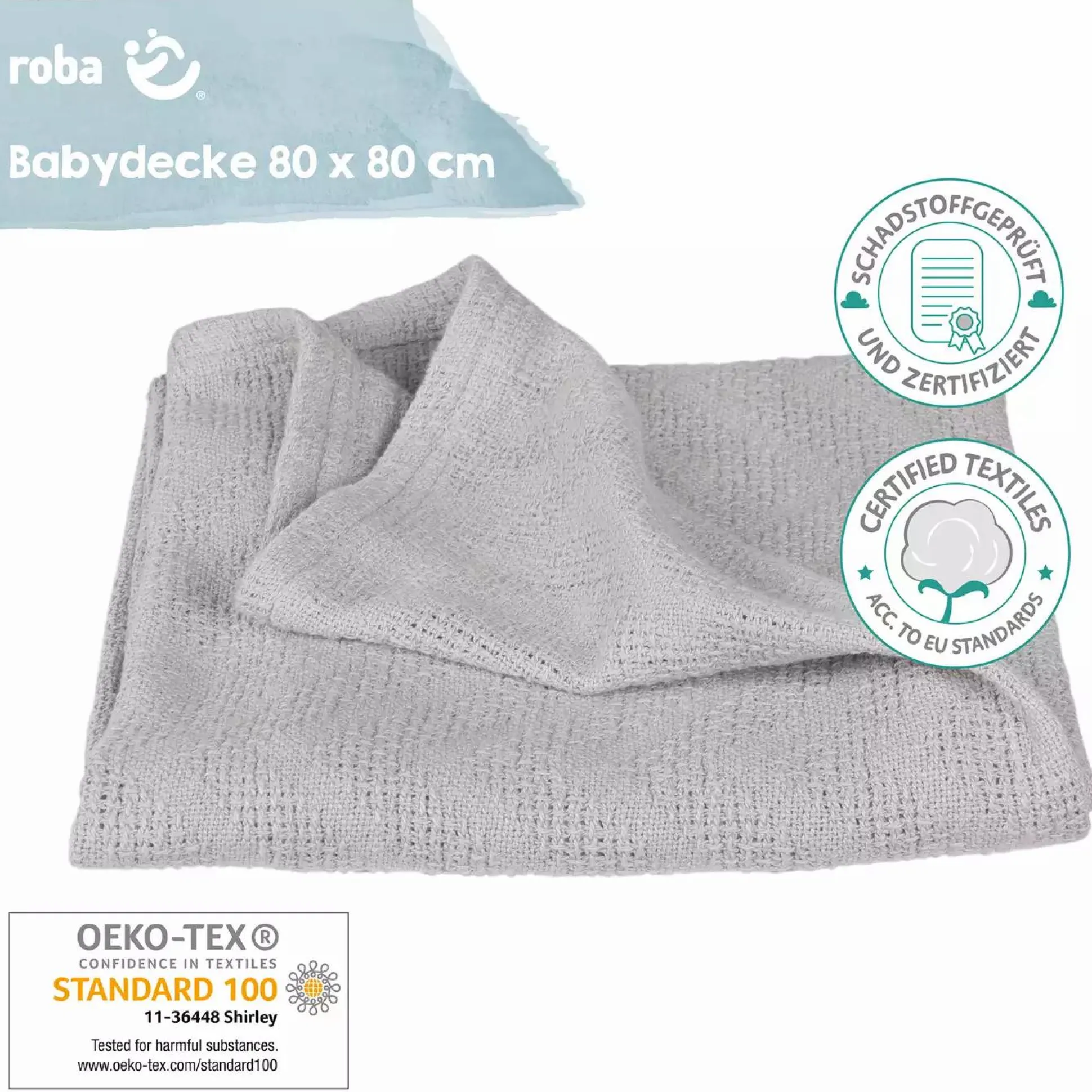 Auch nach vielen umweltfreundlichen Wäschen bei 40°C behält die roba Babydecke in der trendigen Farbe silbergrau ihre Form und ihre superweiche Haptik – dank spezieller Oberflächenbehandlung und Vorwäsche bleibt sie superweich. Die Babydecke wird nachhaltig nach dem Global Organic Textile Standard GOTS und unter fairen und sozialen Bedingungen der Business Social Compliance Initiative (BSCI) hergestellt.