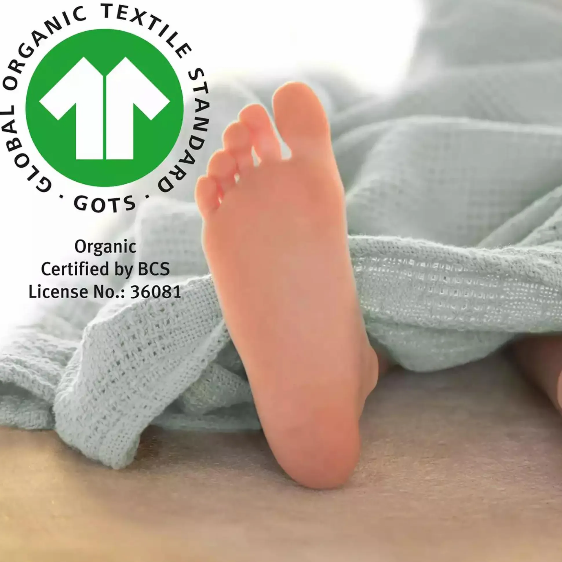 Auch nach vielen umweltfreundlichen Wäschen bei 40°C behält die Roba Babydecke in der trendigen Farbe Frosty Green ihre Form und ihre superweiche Haptik – dank spezieller Oberflächenbehandlung und Vorwäsche bleibt sie superweich. Die Babydecke wird nachhaltig nach dem Global Organic Textile Standard GOTS und unter fairen und sozialen Bedingungen der Business Social Compliance Initiative (BSCI) hergestellt.