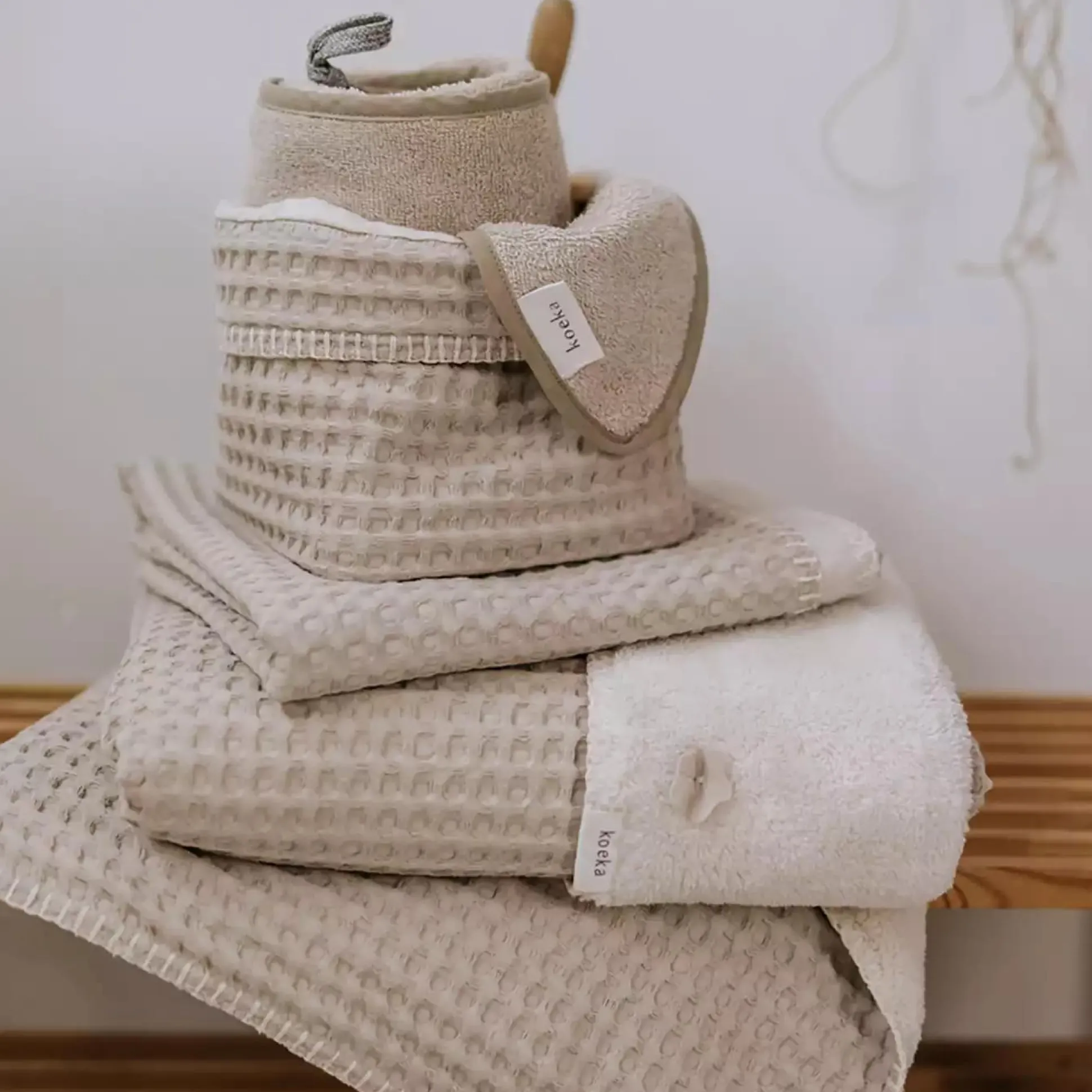 Waffelstoff von Koeka – wer kennt ihn nicht? Der waffelgeprägte Baumwollstoff ist eine coole Version der old school Retro-Waffeldecken aus den Siebzigern. Koeka’s Waffelprodukte sind absolute Bestseller. Wusstest du, dass sich die Namen von Waffelprodukten auf das verwendete Futter beziehen? Oslo ist Waffel mit Teddy.