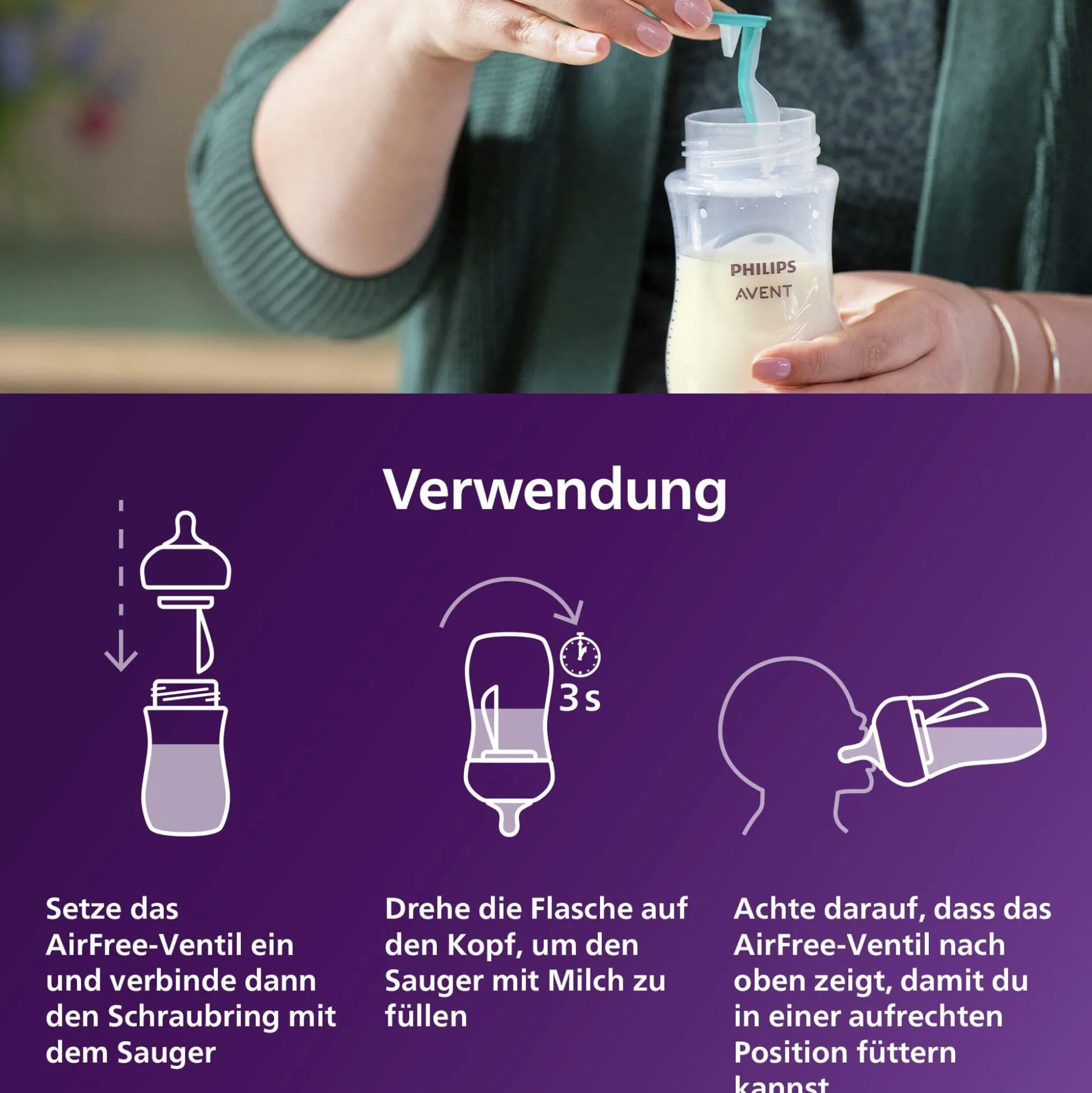 Die Philips Avent Natural Response Babyflasche mit AirFree Ventil SCY670/01 ermöglicht ein ruhiges und bequemes Füttern.