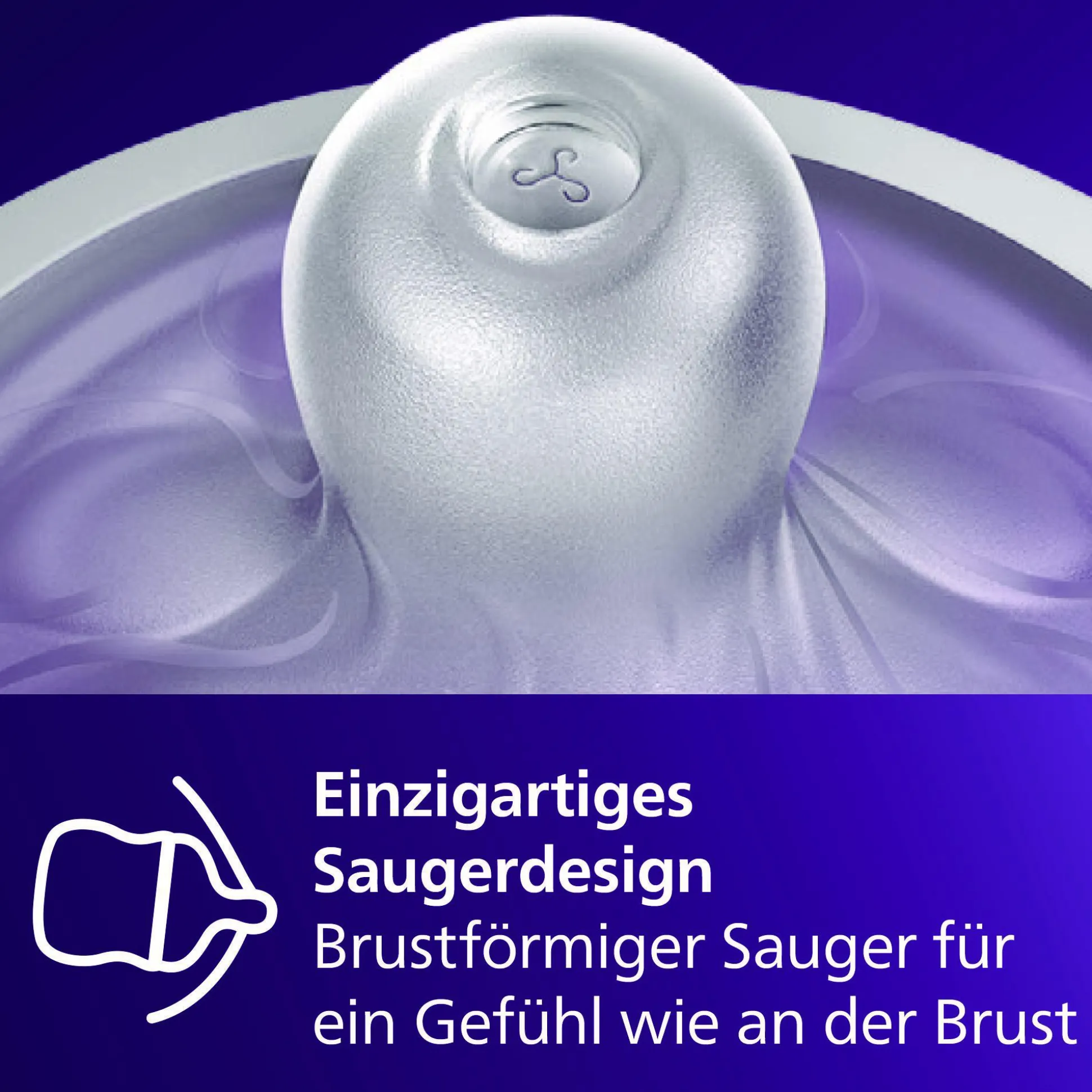- breite, weiche und flexible Form des Saugers