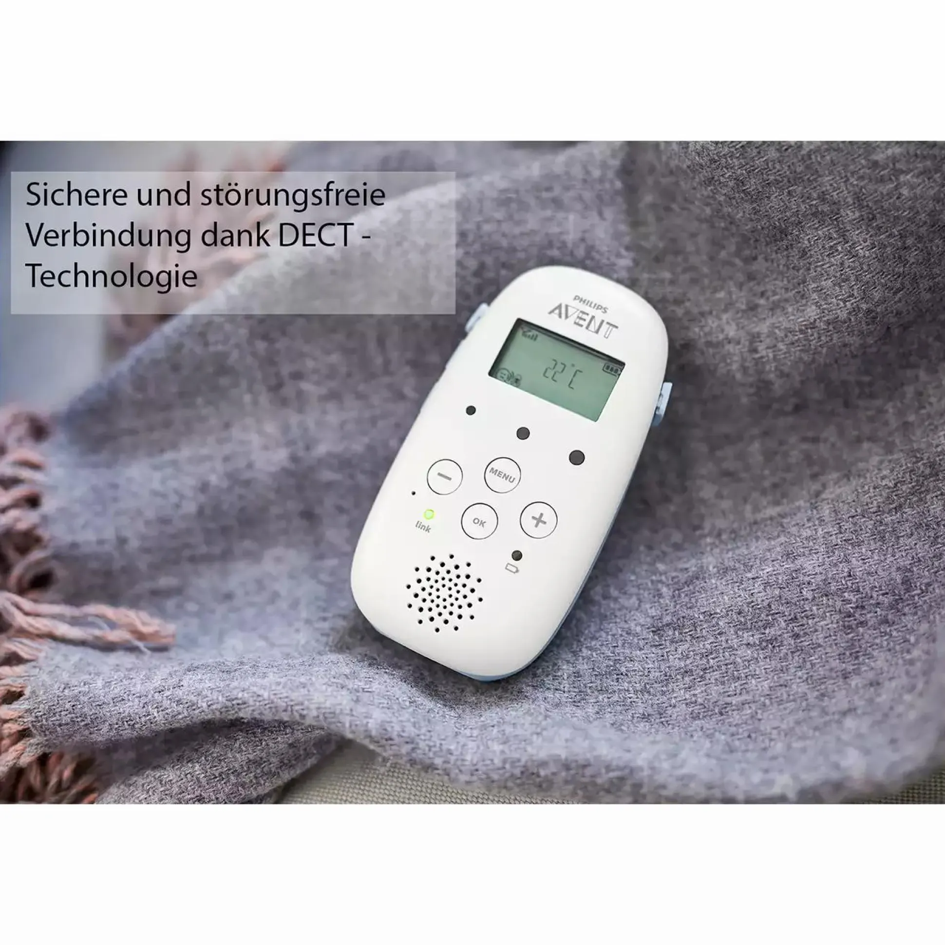 Mit dem Philips Avent Babyphone DECT SCD715/26 stehen gemütlichen Abenden auf der Couch nichts mehr im Wege. Während ihr Baby im Bettchen liegt und schläft, verschafft ihnen das Babyphone eine sichere Verbindung zu ihrem Kleinen. Die DECT-Technologie sorgt für einen kristallklaren und störungsfreien Klang und informiert sie über jede Bewegung ihres Babys – auch dank der Geräuschpegelanzeigen, wenn das DECT SCD715 Babyphone auf stumm gestellt wird.