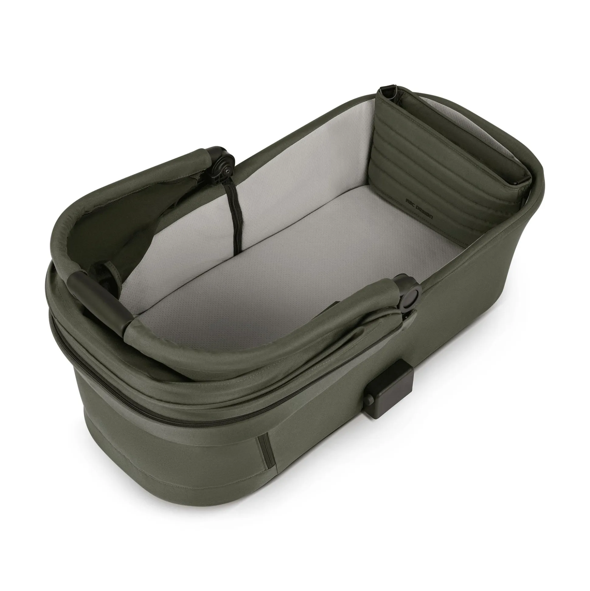Kombiniert wird die Wanne entweder mit dem Samba 2, Salsa 5 Run oder dem Geschwisterwagen Zoom 2 von ABC Design. Dabei musst du einfach nur die Wanne auf das Kinderwagen-Gestell einklicken. Doch für eine entspannte Zeit sorgt vor allem das Design: In der überdurchschnittlich großen Liegefläche hat deine kleine Schlafmütze immer ausreichend Platz – das ist auch perfekt für agilere Babys. Auf der hochwertigen CozyCloud® Kinderwagen-Matratze wird dein Kleines in einen erholsamen Schlaf finden. Denn die atmungsaktive Kaltschaum-Matratze mit angepasstem Härtegrad und integrierten Luftkanälen schafft optimale Stützung und Belüftung. So liegt dein Baby besonders bequem. Das keilförmige und von außen höhenverstellbare Kopfende sorgt zudem für eine gesunde Schlafposition. Vor allem für Neugeborene mit einer Reflux-Symptomatik ist eine Hochlagerung des Kopfes hilfreich. Der Bezug der CozyCloud® Matratze ist feuchtigkeitsregulierend, atmungsaktiv und besonders allergikerfreundlich. Zusätzlich hat sie einen extraweichen und erhöhten Schutzrand, damit die empfindliche Kopfhaut deines Schatzes nicht direkt am unteren Belüftungsfenster der Tragewanne anliegt.