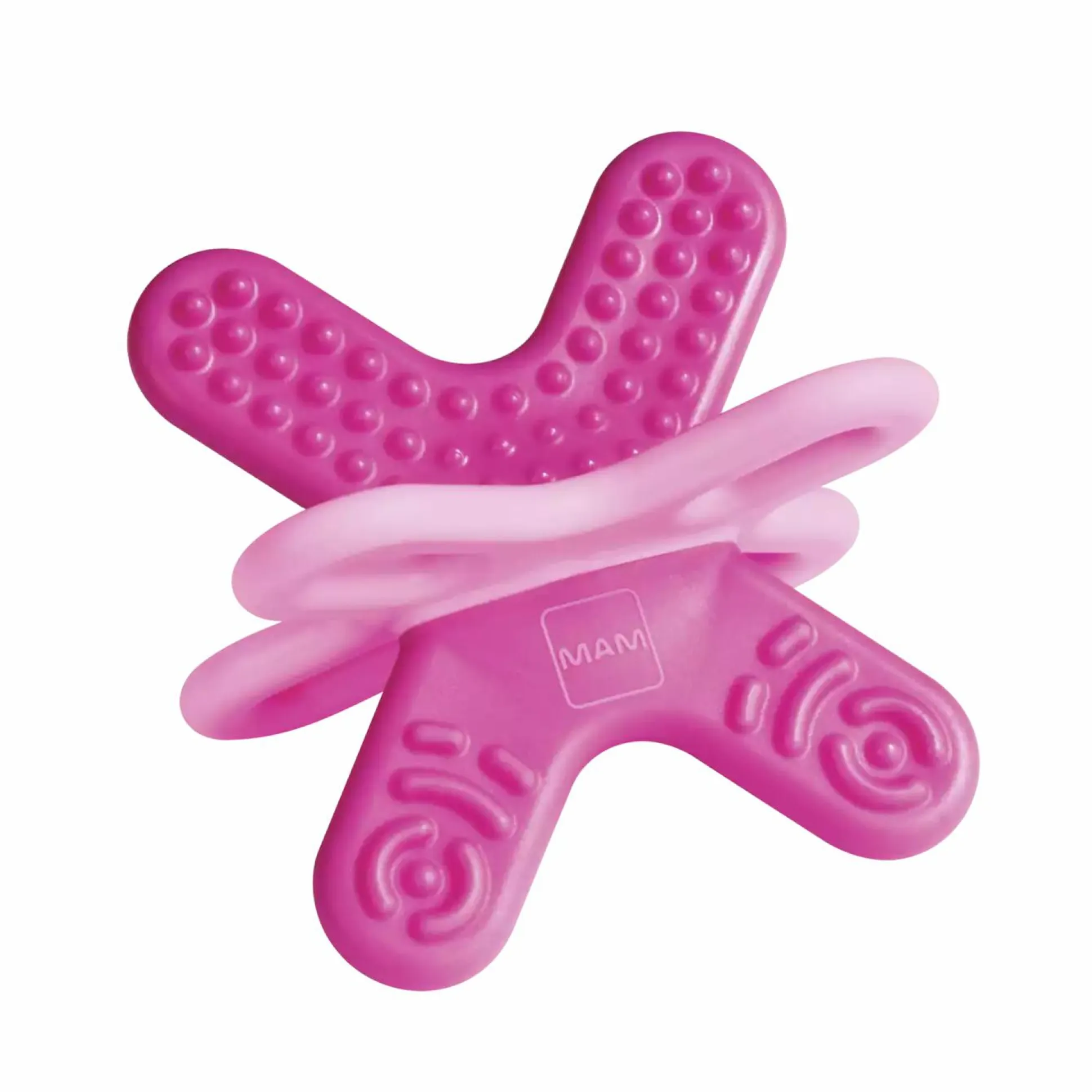 - 4 verschiedene Oberflächenstrukturen und 2 unterschiedliche Materialien massieren sanft das Zahnfleisch und sorgen für viel Abwechslung beim Beißen