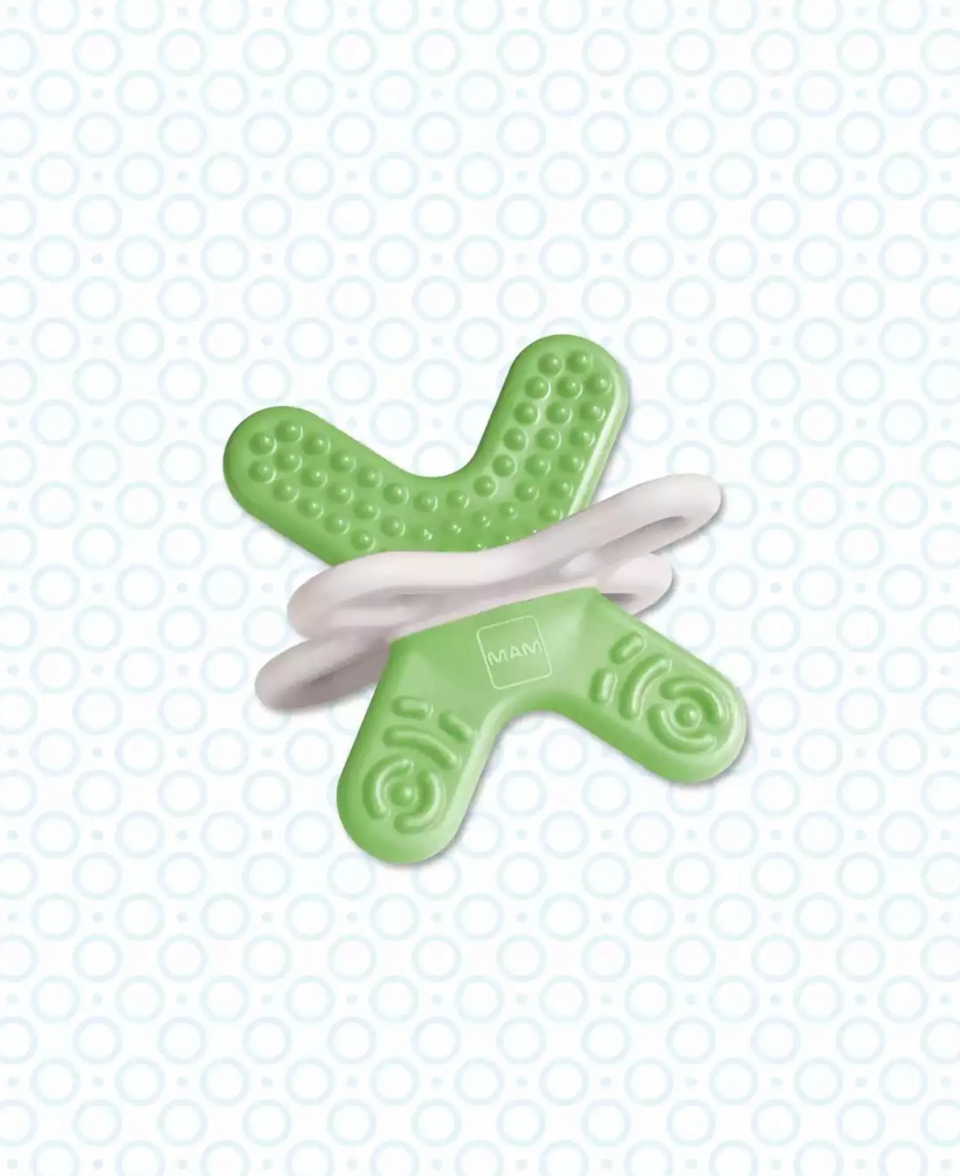- 4 verschiedene Oberflächenstrukturen und 2 unterschiedliche Materialien massieren sanft das Zahnfleisch und sorgen für viel Abwechslung beim Beißen