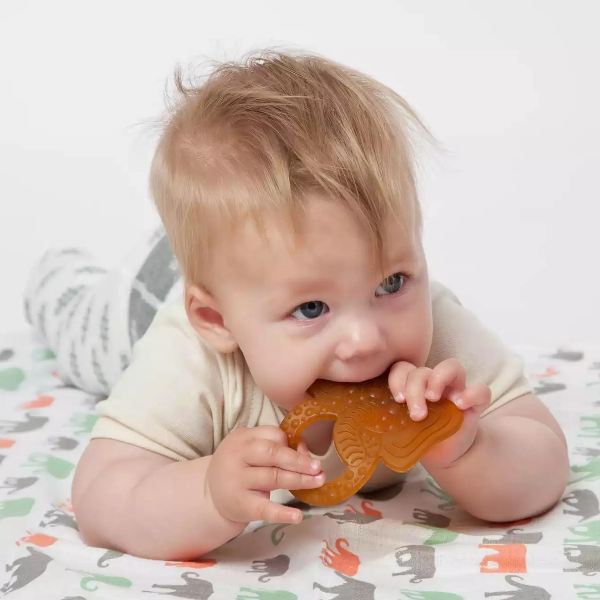 Dieser Bio-Beißring aus Naturkautschuk hat nicht nur ein niedliches Elefanten-Design, sondern auch eine strukturierte Oberfläche zur Zahnfleischmassage. Der Ring ist weich und einfach zu greifen und fördert somit schon früh die Feinmotorik und Tastsinn deines kleinen Schatzes. Selbstverständlich ist dieser Ring BPA-frei und ohne Phthalate hergestellt und wurde in Werkstätten für Menschen mit Behinderung verpackt.