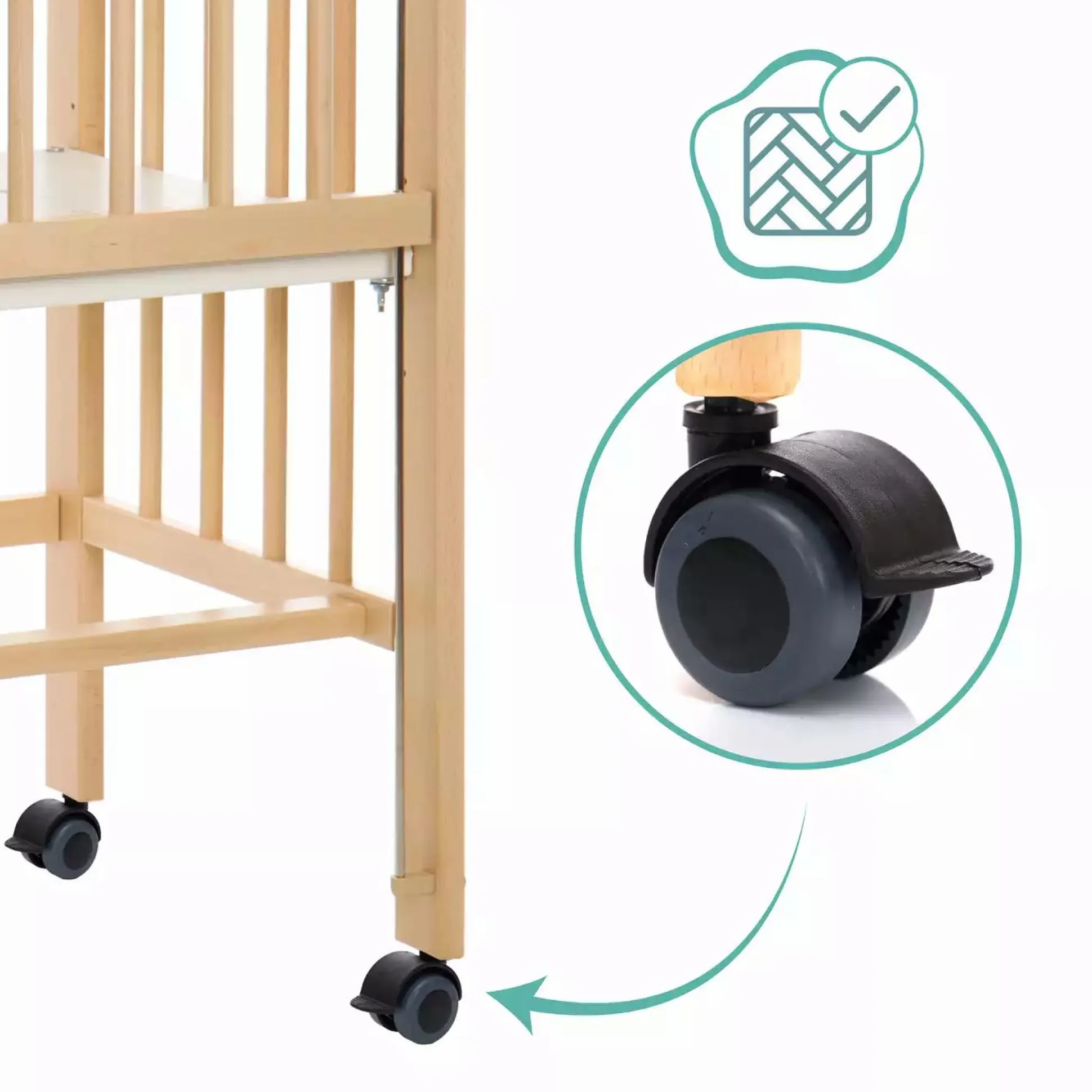 - feststellbare Rollen sorgen für zusätzliche Sicherheit