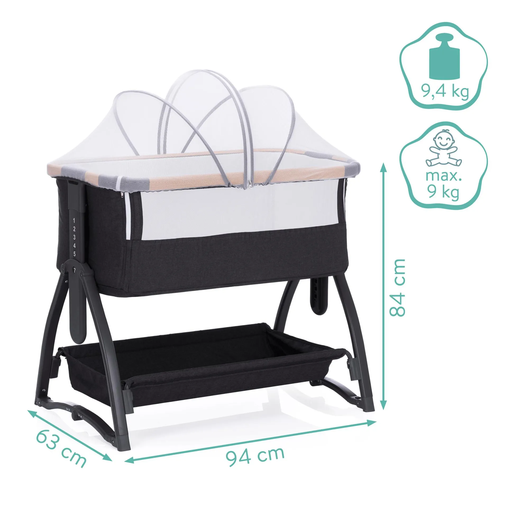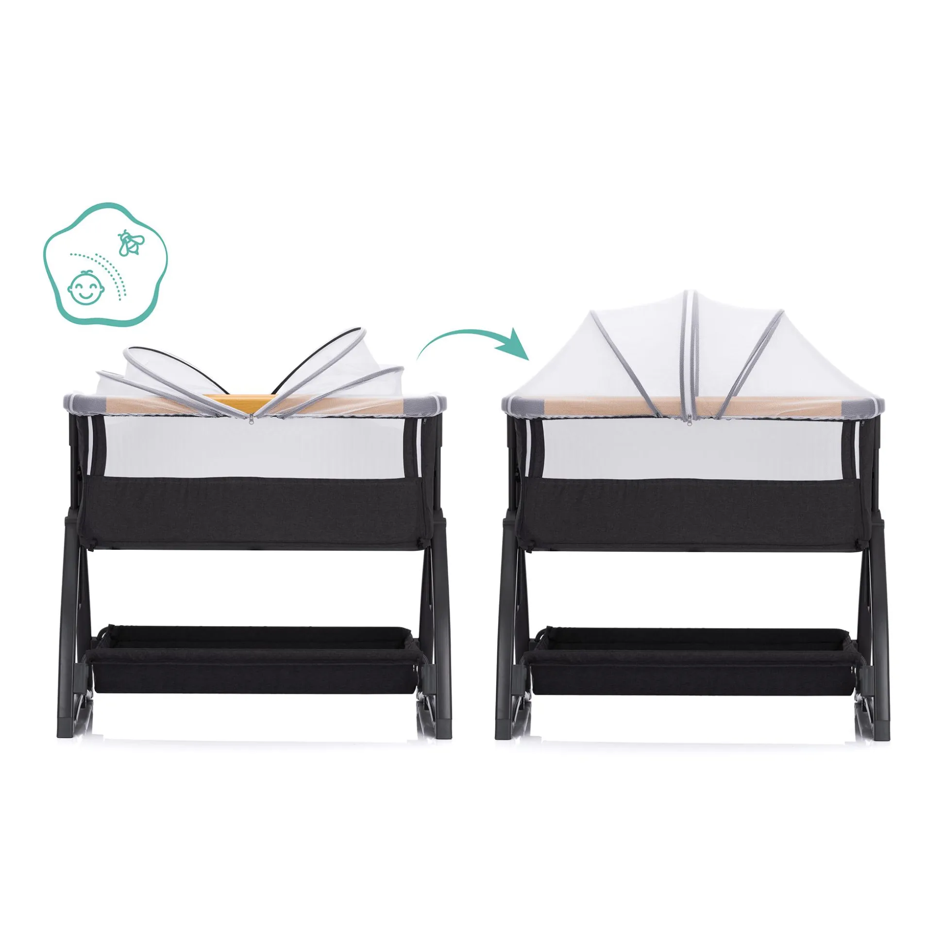 So kann die sanfte Wippfunktion dein Baby in den Schlaf wiegen. Auf der weichen Matratze und dem hochwertig gesteppten Innenbezug kann es sich dein Baby zusätzlich gemütlich machen. Im Sommer kann ein Mückennetz Schutz vor unerwünschten Insekten bieten und fördert damit einen ungestörten Schlaf. Doch nicht nur dein Baby soll es möglichst bequem haben. Um Nachts nicht aufstehen zu müssen, kann das Beistellbett von Fillikid durch ein 5-stufig verstellbares Seitenteil einfach an euer Elternbett geschoben werden.