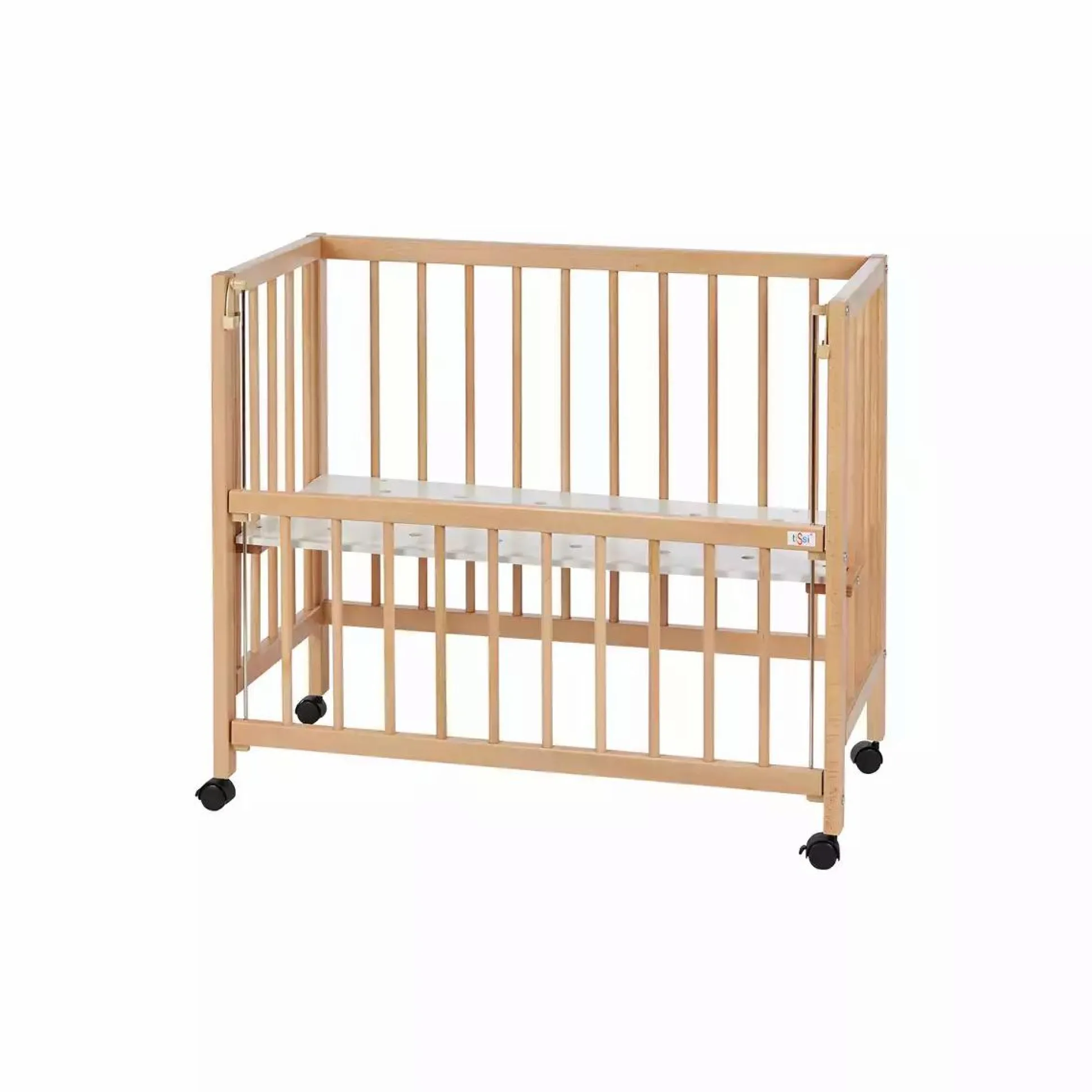 Aus massiven Buchenholz gefertigt ist das tiSsi® Beistellbett Sophie besonders stabil. Durch das mitgelieferte Verschlussgitter kann es in wenigen Handgriffen zum Stubenwagen umgebaut werden. Rollen mit Festellbremse machen das Beistellbett mobil und kann so bequem in jedem Zimmer genutzt werden.