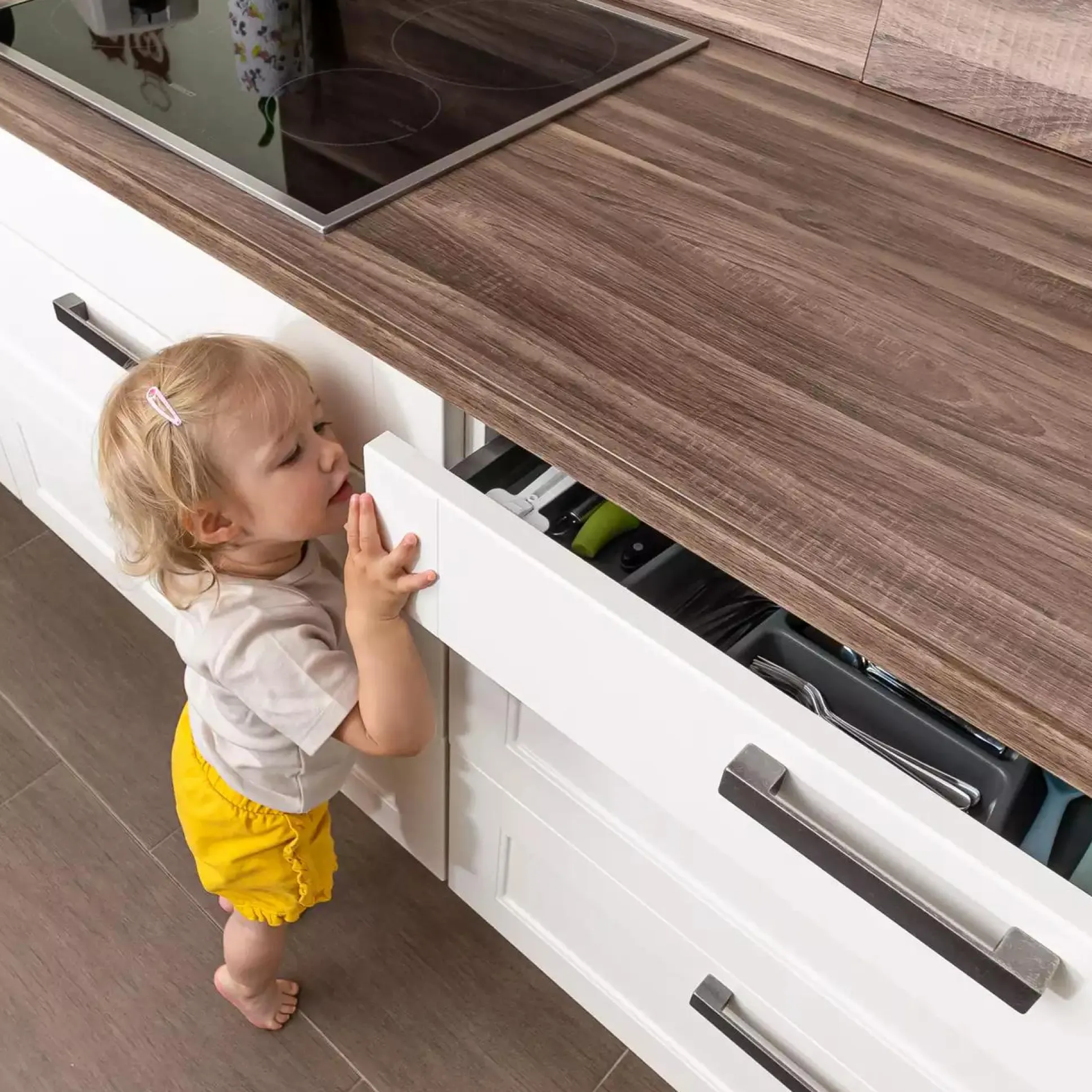 Dadurch kann dein Kind zum einen nicht an den Schubladeninhalt gelangen und zum anderen schützt diese Sicherungsposition vor schmerzhaftem Fingerklemmen. Die mitgelieferte Montagehilfe trägt zu einer schnellen und unkomplizierten Anbringung bei. Auch, wenn die Schublade vor Kinderhänden geschützt ist, können Erwachsene diese dennoch mit nur einer Hand öffnen. Zudem ist das ganze System unsichtbar, da die Sicherung im Inneren der Schublade montiert wird.