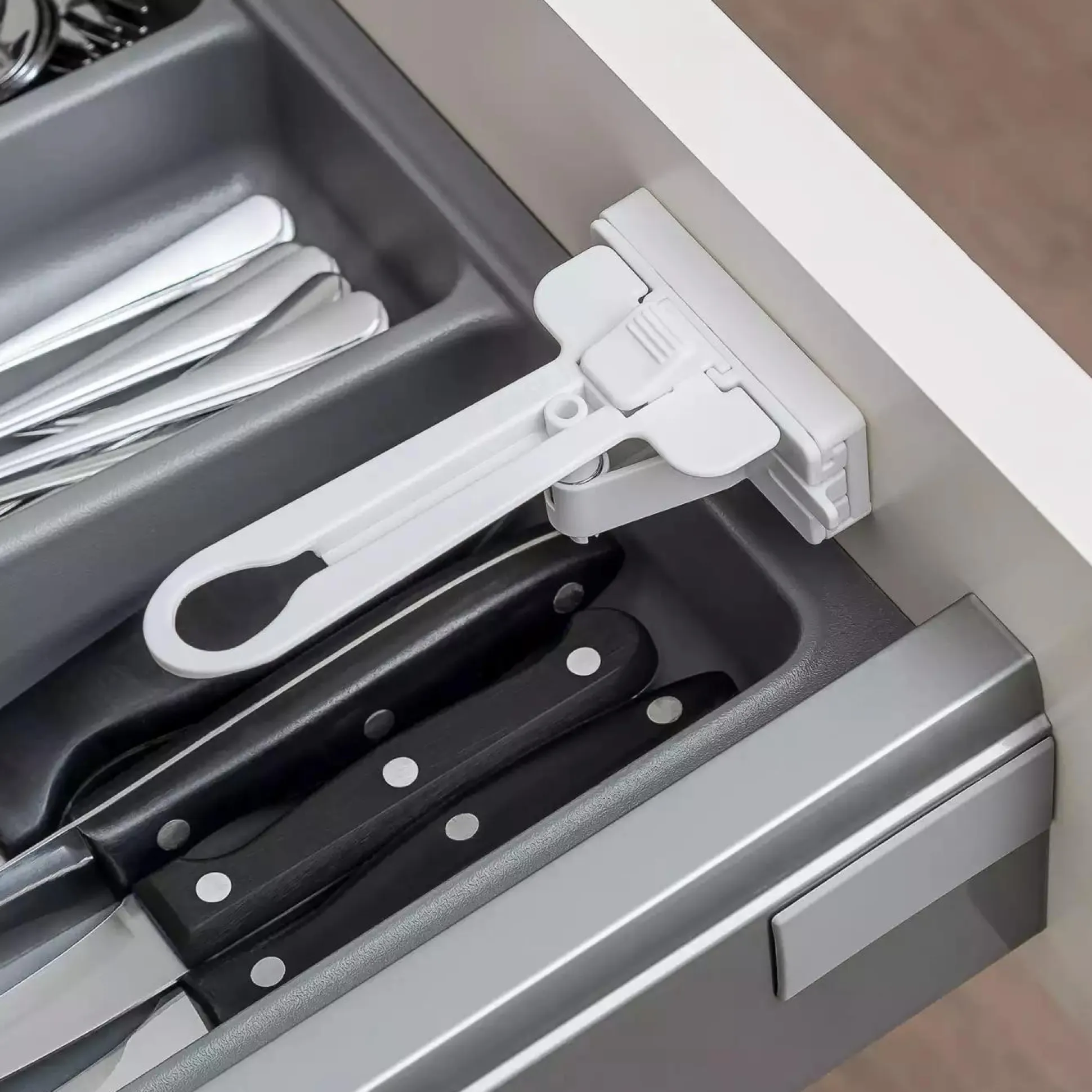 - verschließt Schubladen kindersicher, verhindert eingeklemmte Finger