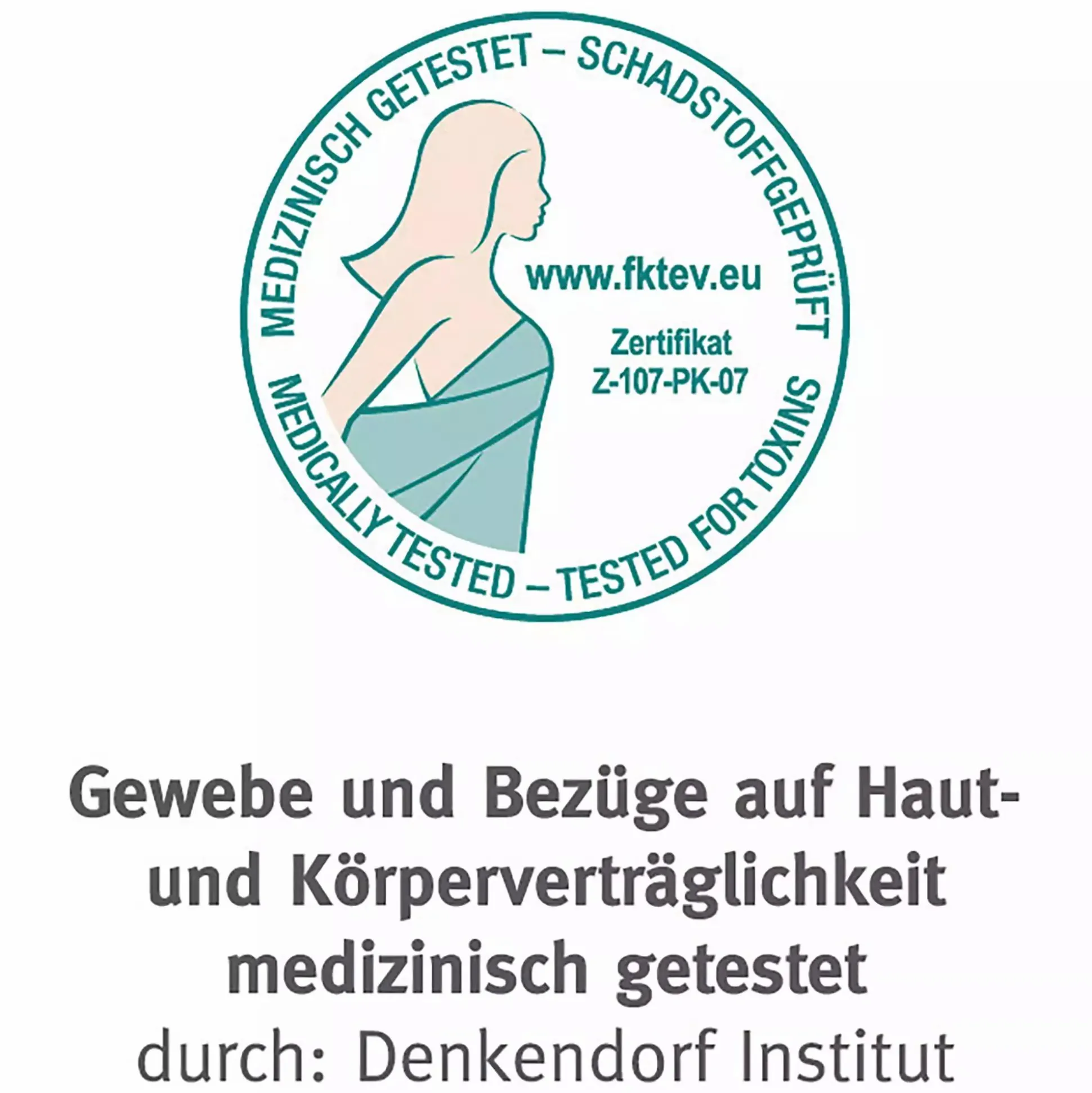 Apropos gesund: Die Gewebe und Bezüge sind frei von optischen Aufhellern, garantiert schadstofffrei und medizinisch getestet auf Haut- und Körperverträglichkeit. Außerdem sind Gewebe und Füllmaterial perfekt aufeinander abgestimmt, um eine optimale Luftdurchlässigkeit zu ermöglichen. Die beste Voraussetzung also für ein optimales Feuchtigkeits- und Wärmemanagement – und ein entsprechend angenehmes Schlafklima. Einfach paradiesisch!