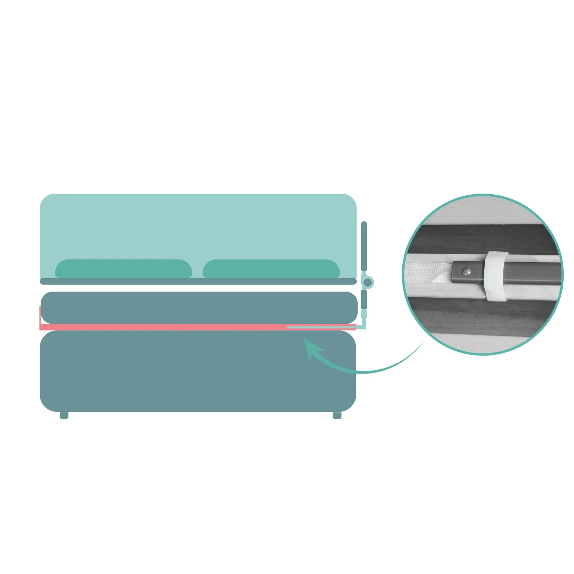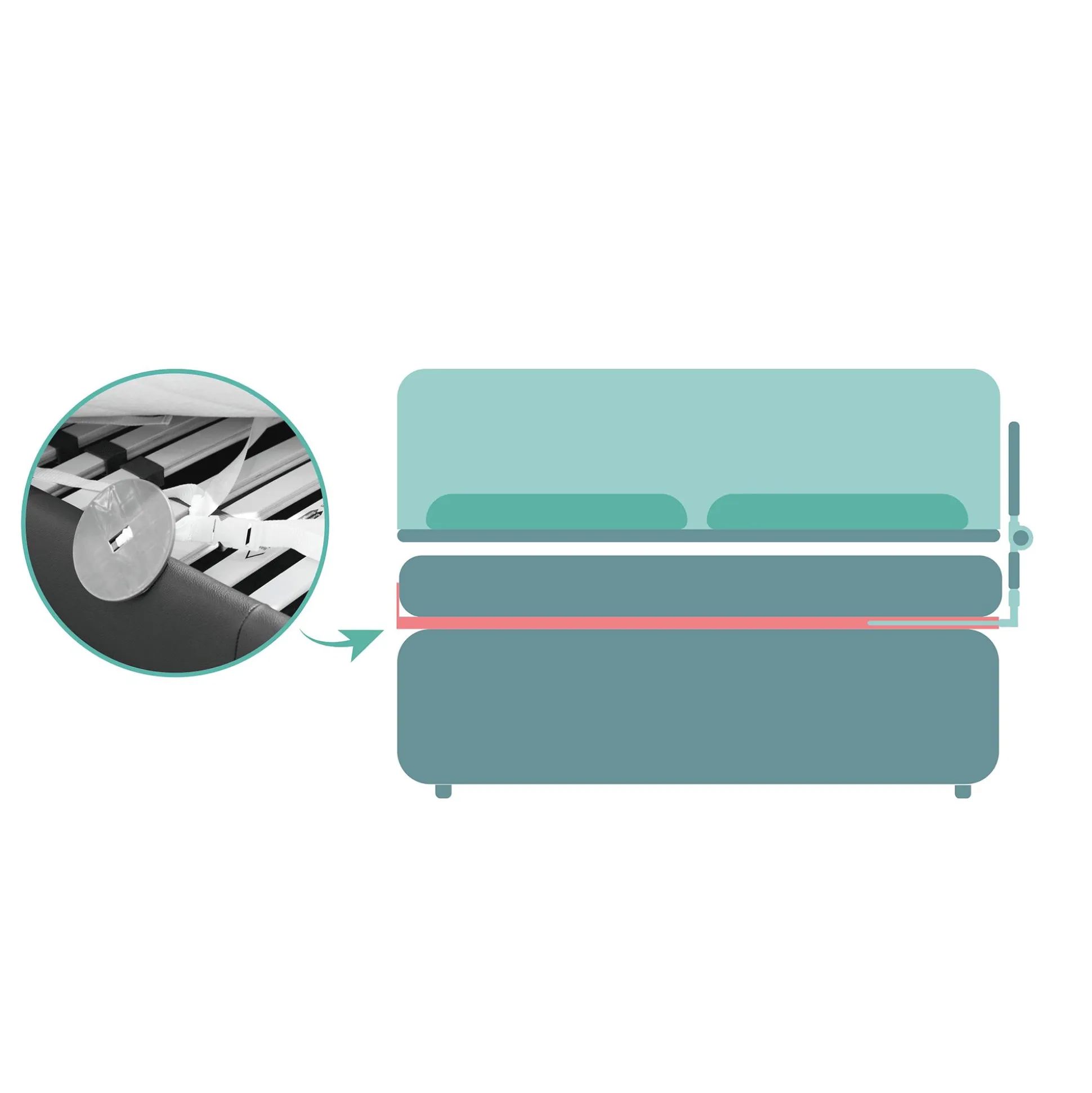 Für die Montage muss das Bettgitter Lara von Fillikid lediglich auf den Lattenrost platziert werden, der Sicherheitsgurt gespannt und die Matratze wieder daraufgelegt werden. Schnell aufgebaut, leicht und unkompliziert transportierbar ist es auch auf Reisen ein idealer Begleiter.