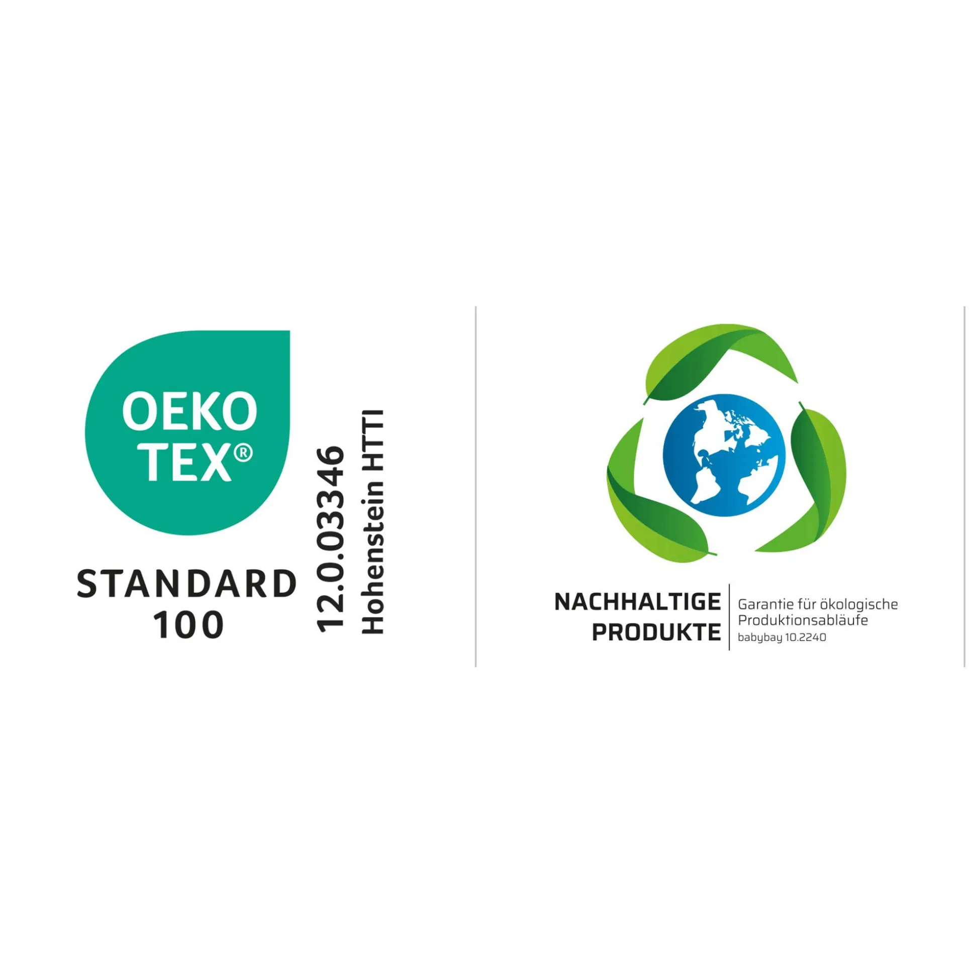 - alle verwendeten Materialien sind schadstoffgeprüft und ausgezeichnet mit dem Zertifikat „Textiles Vertrauen“ nach Ökotex-Standard 100 Klasse 1 für Babys (12.0.03346)