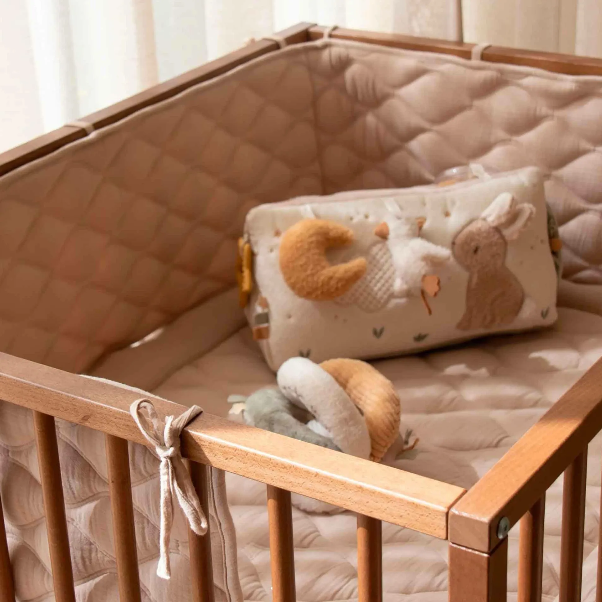 Die Bettumrandung Pure Soft Beige von LITTLE DUTCH ist die perfekte Ergänzung für das Babybett und sorgt von Geburt an für ein behagliches und sicheres Schlafumfeld. Mit ihrem sanften Beige-Ton bringt sie eine warme und beruhigende Atmosphäre in das Kinderzimmer und schafft so eine Wohlfühloase für deinen kleinen Schatz.