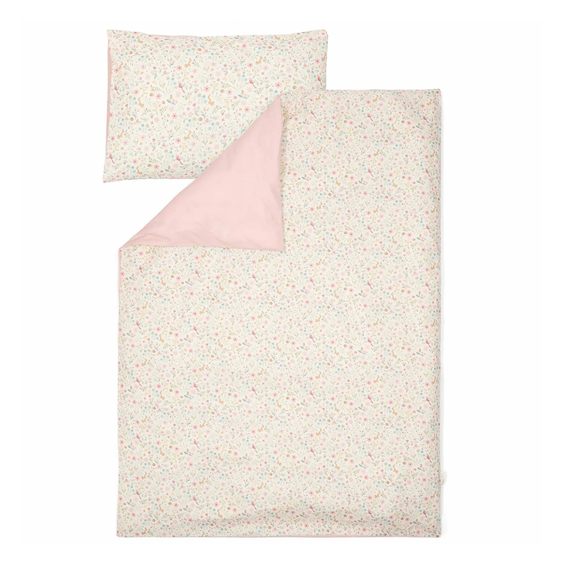 Die Bettwäsche Fairy Wonders von Little Dutch verwandelt das Kinderbett deines kleinen Lieblings in einen zauberhaften Märchengarten.Die kuschelweiche Wendebettwäsche besteht aus einem Bett- und Kissenbezug, die durch zwei verspielte Designs überzeugen.Eine Seite wird von einem liebevollen, floralen Print in zarten Rosatönen und niedlichen Tieren wie Eichhörnchen, Igeln und Vögeln geschmückt, während die andere Seite in der hübschen Farbe Blossom einen reizenden Charme verleiht.Dank 100% Bio-Baumwolle ist die Bettwäsche kuschelweich, besonders atmungsaktiv und super bequem. Sie lädt deinen Schatz zum Träumen ein und sorgt für ein magisches Schlafgefühl.