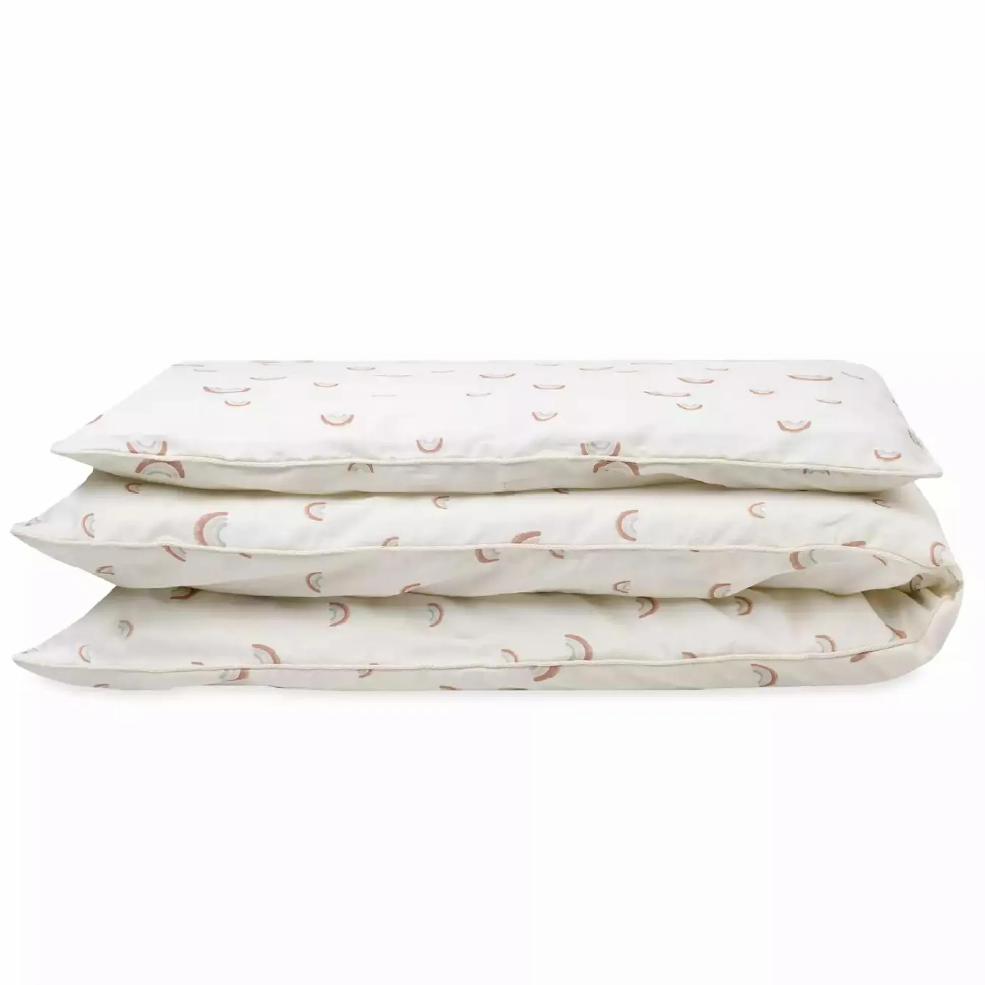 Die weiche Kinderbettwäsche von Zöllner kommt in diesem süßen Rainbow Design. Sie besteht zu 100% aus GOTS zertifizierter Baumwolle und ist angenehm auf der Haut deines Babys, sodass es wunderbar einschlummern kann.