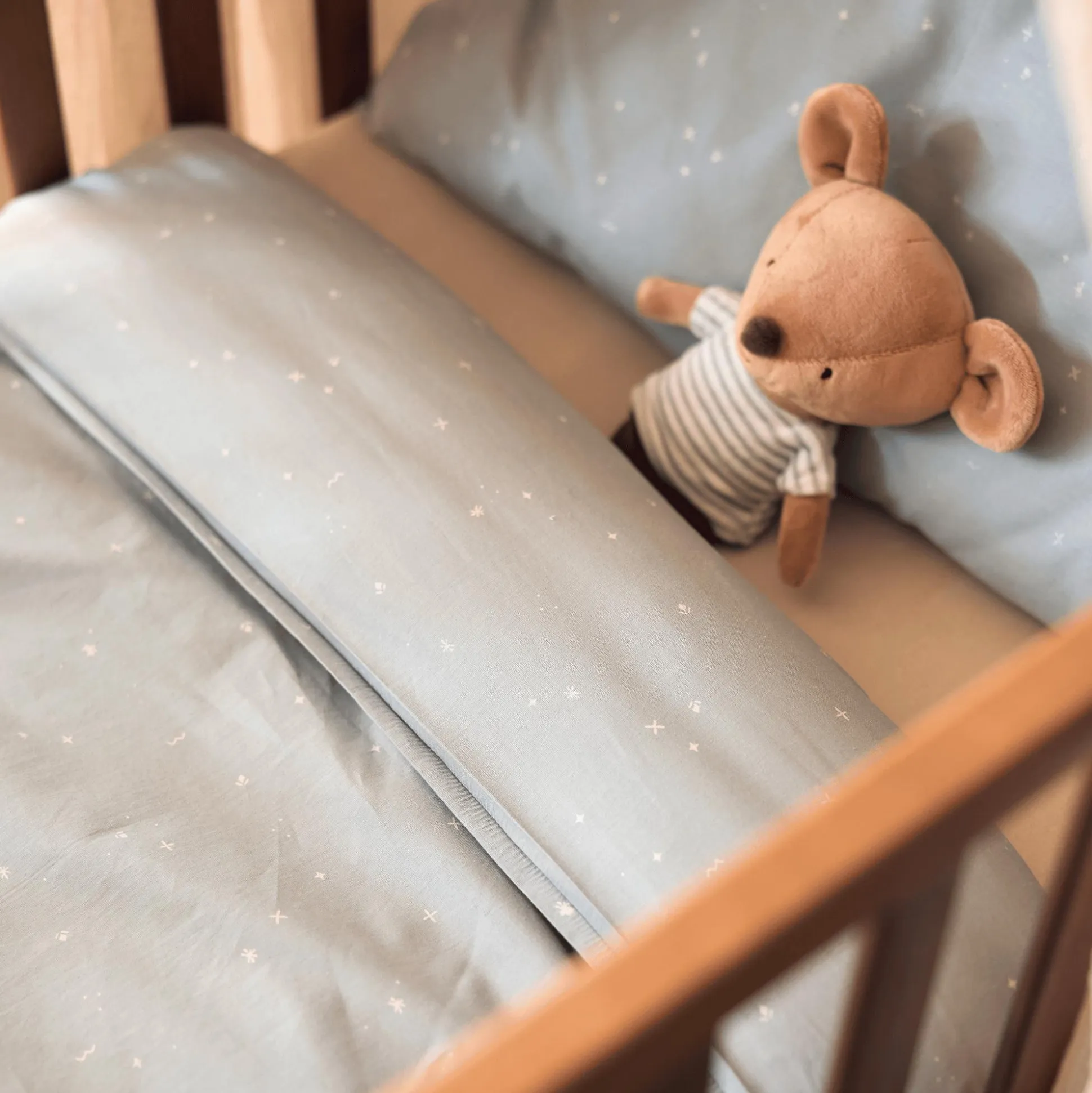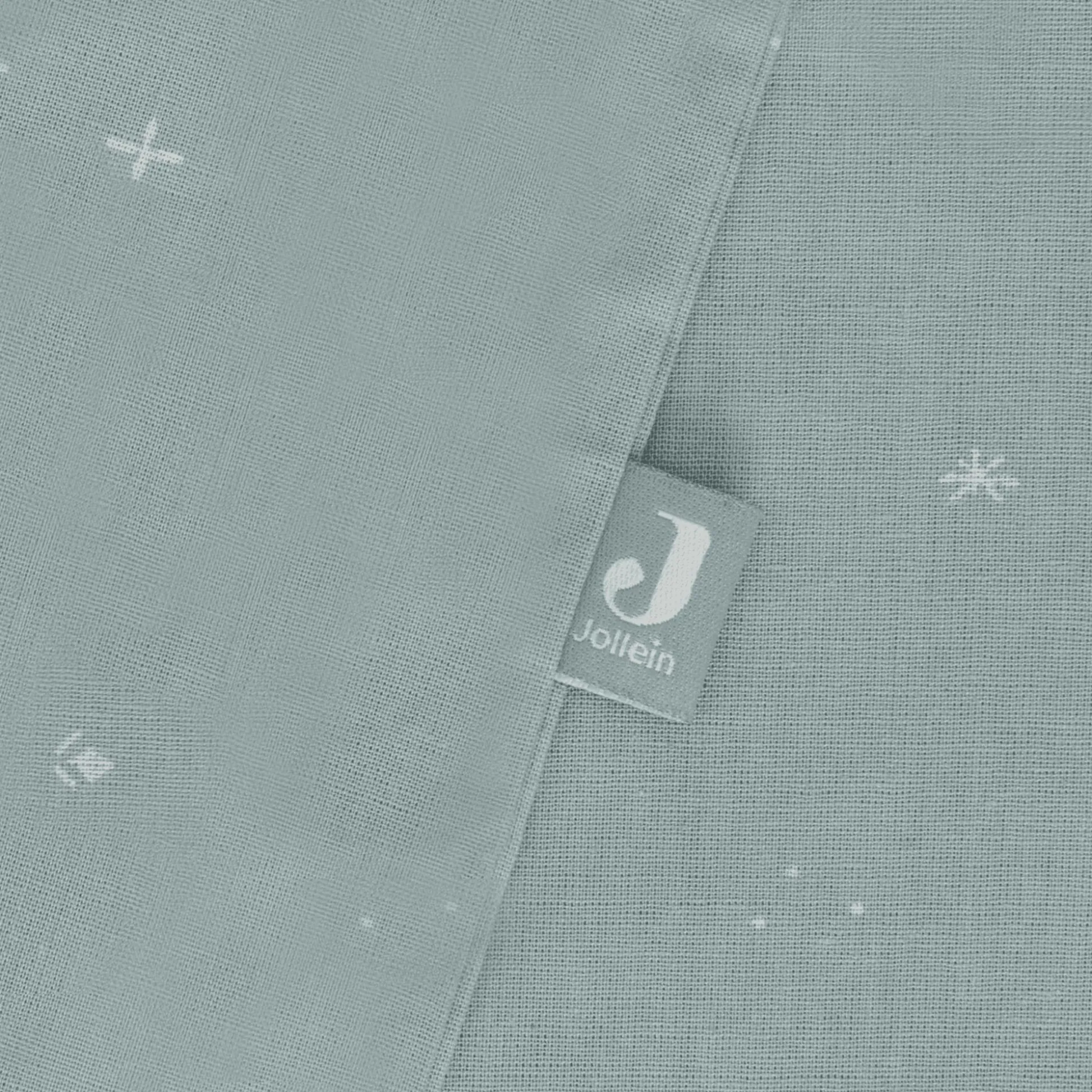 Die Bettwäsche Twinkling „Sea Green“ von Jollein lässt deinen kleinen Nachwuchs sanft unter dem nächtlichen Sternenhimmel träumen.
