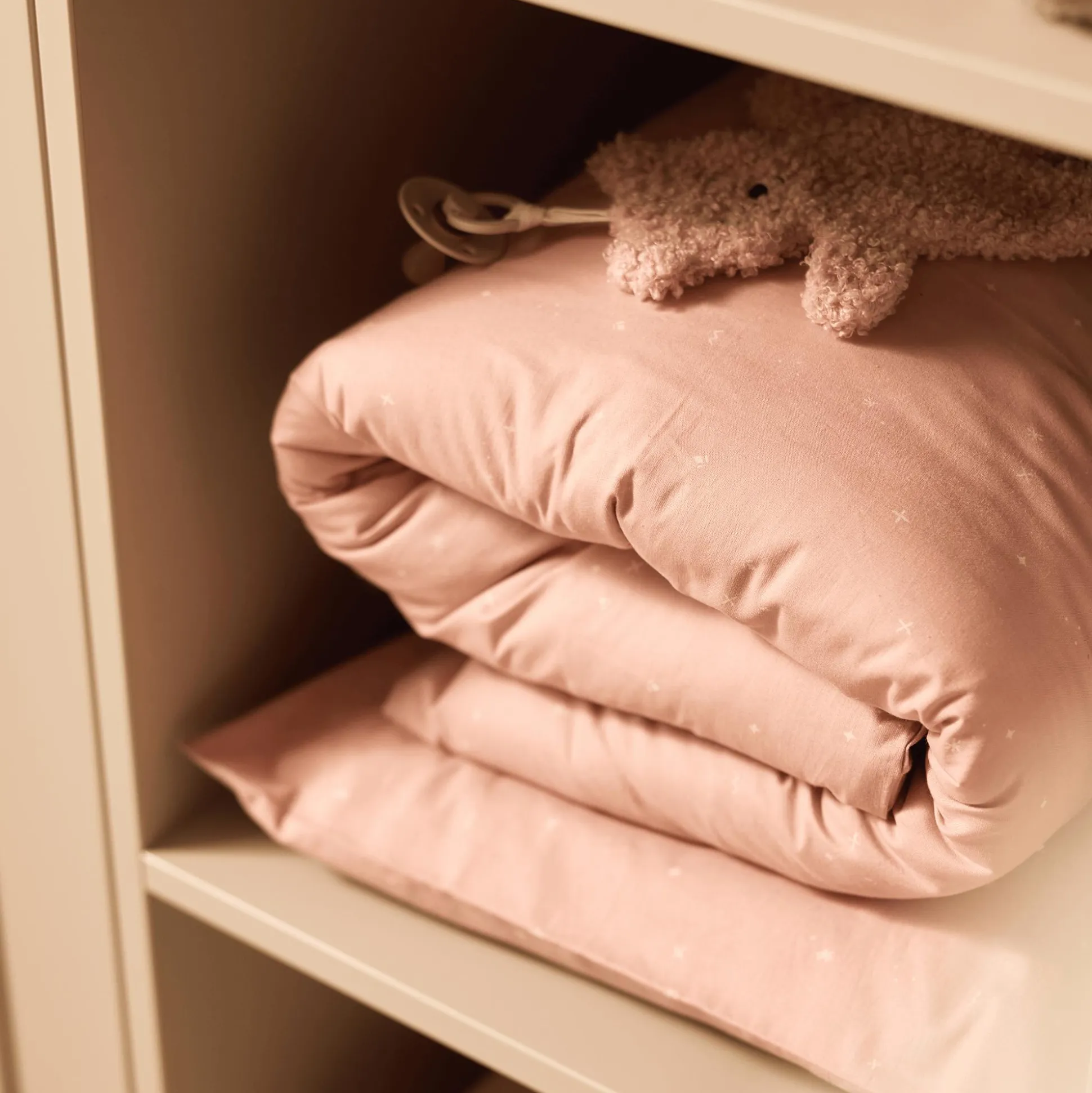 Die kuschelige Bettwäsche im schlichten Design Twinkling Wildrose von Jollein besteht aus 100% Baumwolle. Die Bettwäsche bietet deinem Baby höchsten Schlafkomfort. Der Bettbezug hat eine praktische Öffnung an der Unterseite, durch die du die Bettdecke leicht einschieben kannst.