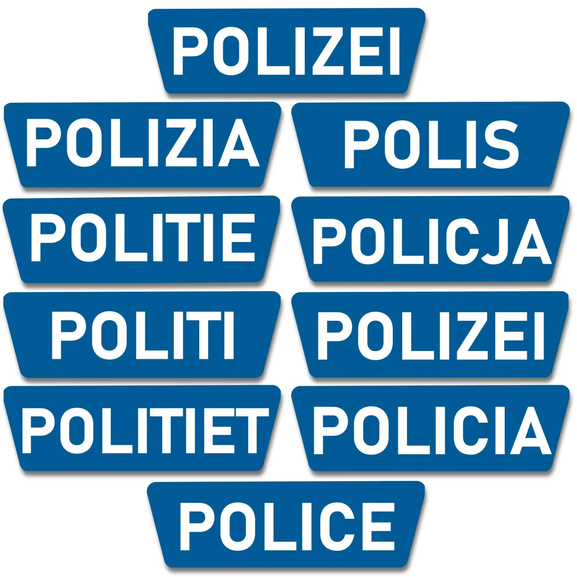 - inkl. austauschbare Polizei-Schriftzug-Sticker in internationalen Bezeichnungen für die Länder DE, DK, PL, CH, SE, NO, IT, GB, FR, BE, IT, ES