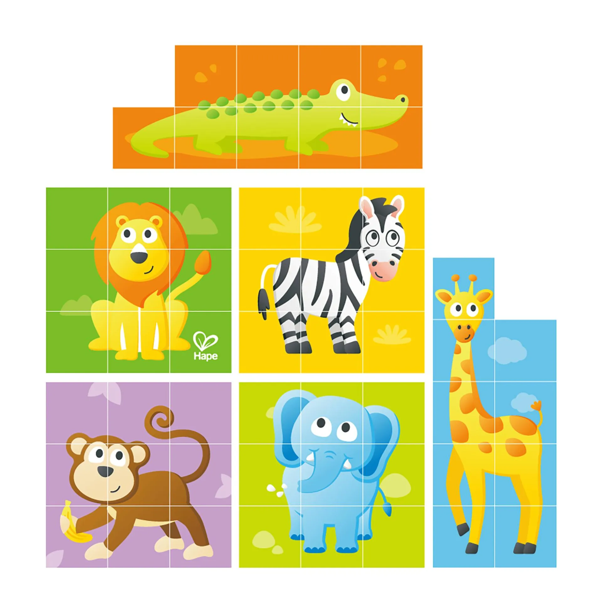 Mit dem Blockpuzzle Dschungel von Hape wird das Entdecken der Dschungeltiere zu einem spannenden Lernabenteuer! Dieses liebevoll gestaltete Blockpuzzle enthält neun Teile, die sich zu sechs verschiedenen Tierbildern zusammensetzen lassen. Dein Kind kann den Löwen, Elefanten, Giraffen, Zebra, Krokodil und den neugierigen Affen entdecken und dabei spielerisch die motorischen Fähigkeiten entwickeln.Das Puzzle fördert nicht nur die Hand-Auge-Koordination, sondern auch das Problemlösungs- und logische Denken deines Kindes. Die Blöcke können außerdem für kreatives Stapeln verwendet werden, um Türme oder fantasievolle Formen zu kreieren. Hergestellt aus hochwertigem Holz und mit kinderfreundlichen Designs ist das Blockpuzzle für Kinder ab ca. 24 Monaten geeignet und wird sicherlich viel Spaß und Freude bereiten.